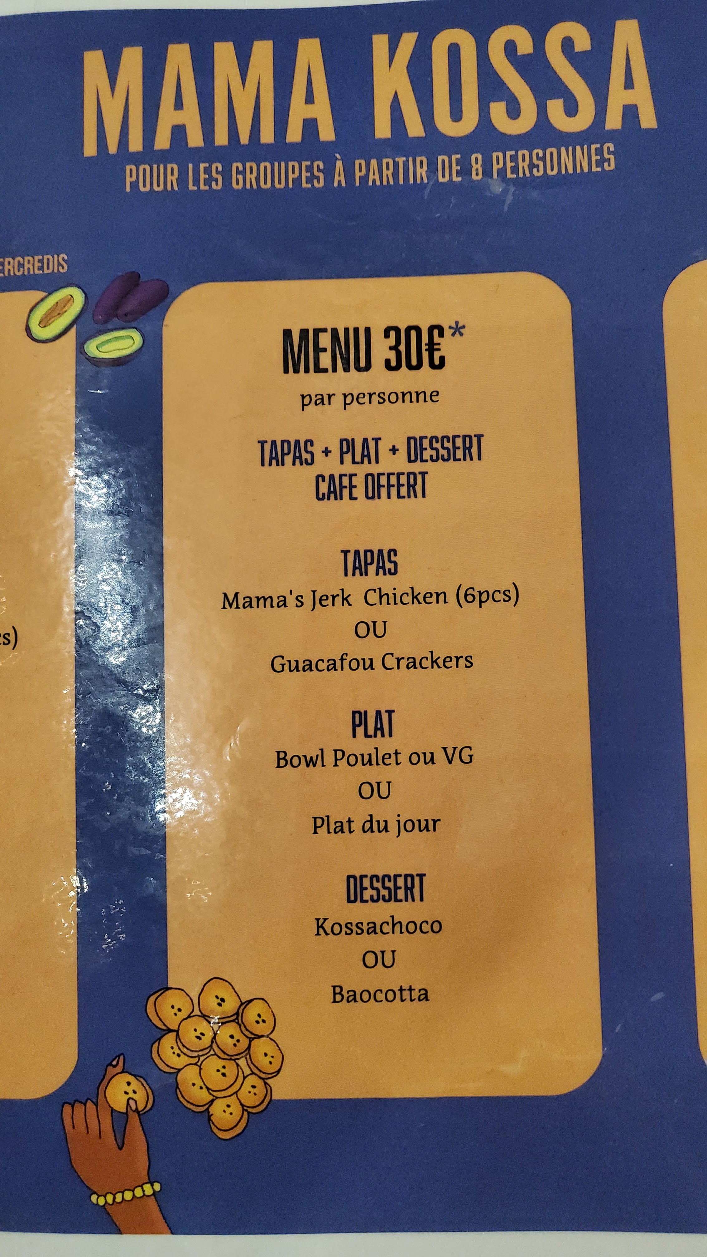 Ce Mama Kossa est une jolie découverte. Niche au cœur du quartier La Goutte d'or, les plats à la carte invitent au voyage nos papilles. Ne vous attendez pas à déguster les plats traditionnels africains comme le yassa ou mafe, mais des plats très bien assaisonnés accompagnés de produits exotiques Notre choix : burger, frites, allons et riz au lait Le jeune femme au service fut de bons conseils. Le cadre et la musique, juste ce qu'il faut Nous reviendrons goûter le risotto d'ignames😉