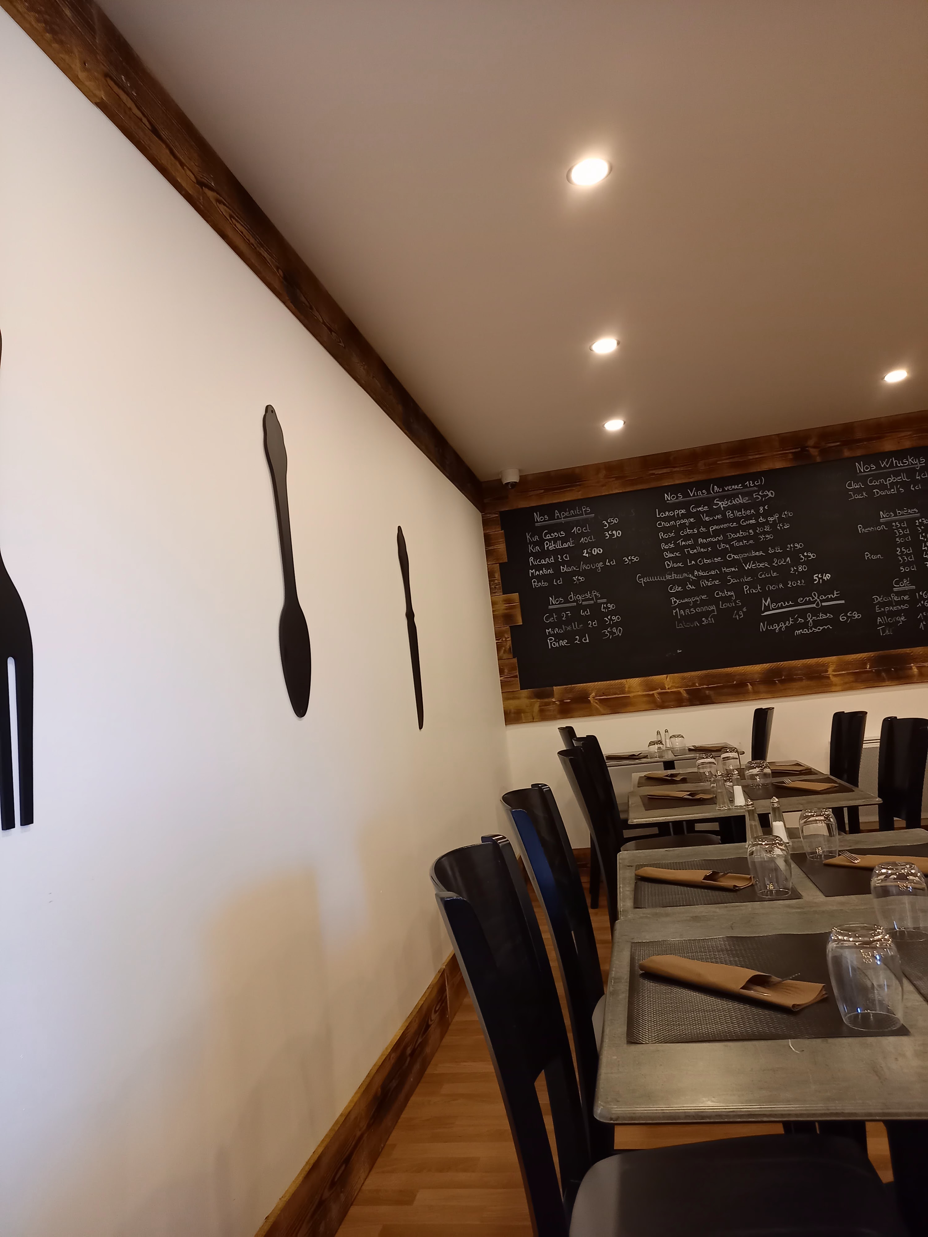 Restaurant à la décoration moderne. Suffisamment de choix au menu.