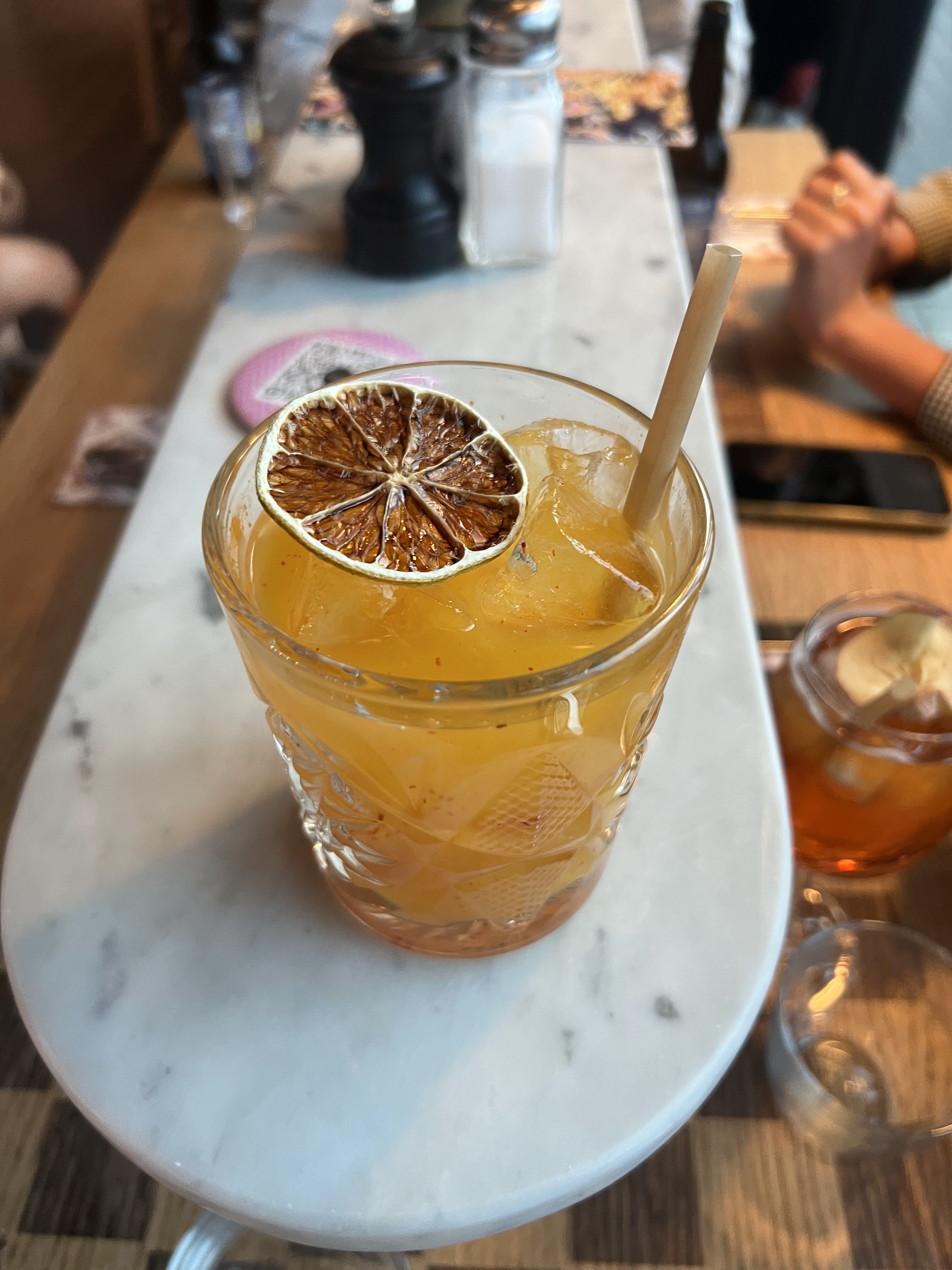 Déjà ma deuxième venue dans ce lieu, car oui ce n'est pas qu'un restaurant en fait ! Cette fois ci arrivés en avance nous avons profités du bar dans la cour avec d'autres cocktails création que ceux du restaurant et des petits snacks pour se mettre en appétit. Restaurant toujours au top avec la poitrine de cochon miam miam et le Big cookie qui vaut son pesant de noix de pécan. J'aime beaucoup le concept à bientôt