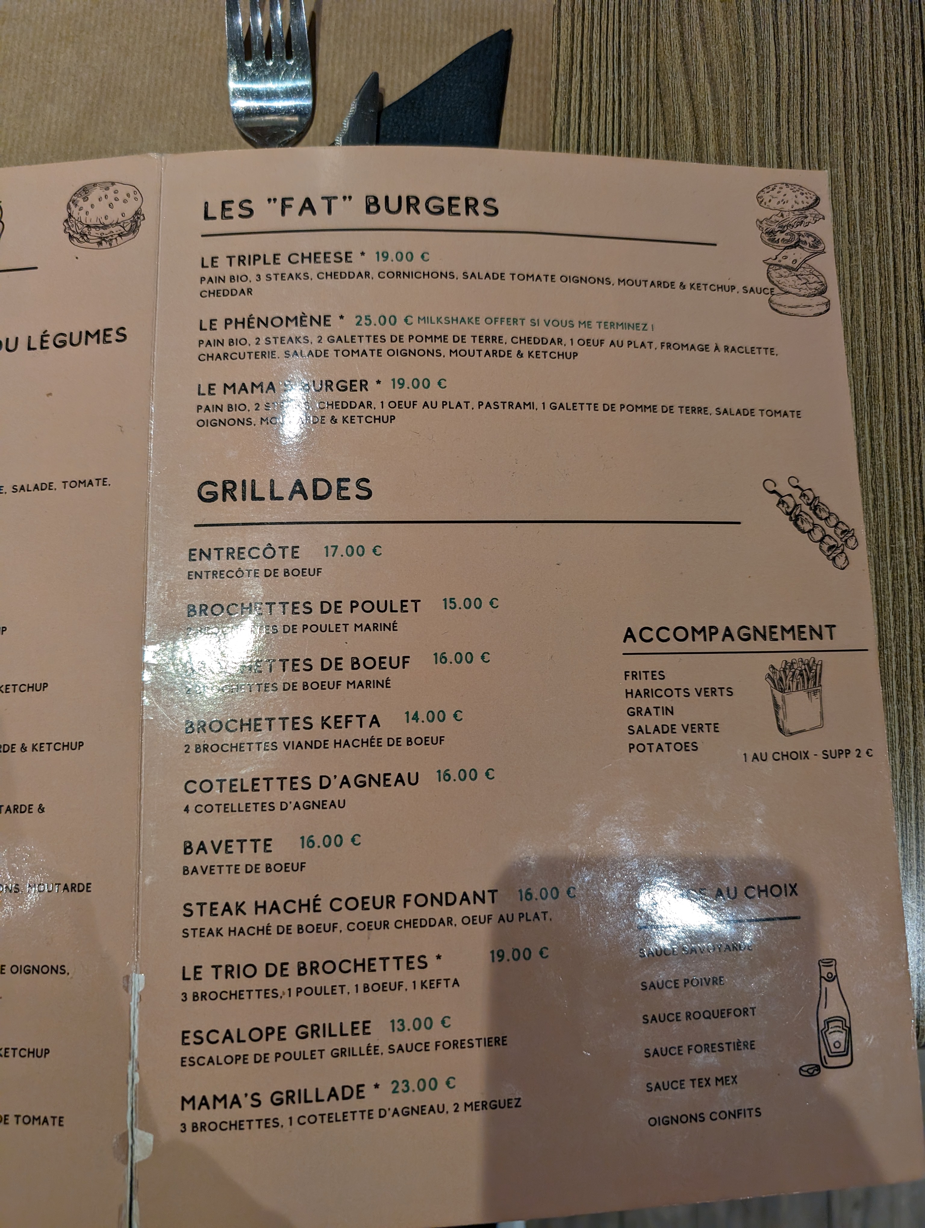 Grosse déception de voir que le propriétaire ( ainsi que le chef ) ont changé. Ce n’est plus le même accueil, ni le même service. Sans parler de la carte…. Adieu mamasteak, je ne ferai plus partie de la clientèle désormais. C’est bien dommage puisque c’est le seul resto qu’on avait sur la région. C’est étrange car sur fb vous précisez bien que le chef a changé… malgré tout c’était une belle aventure merci pour votre retour.