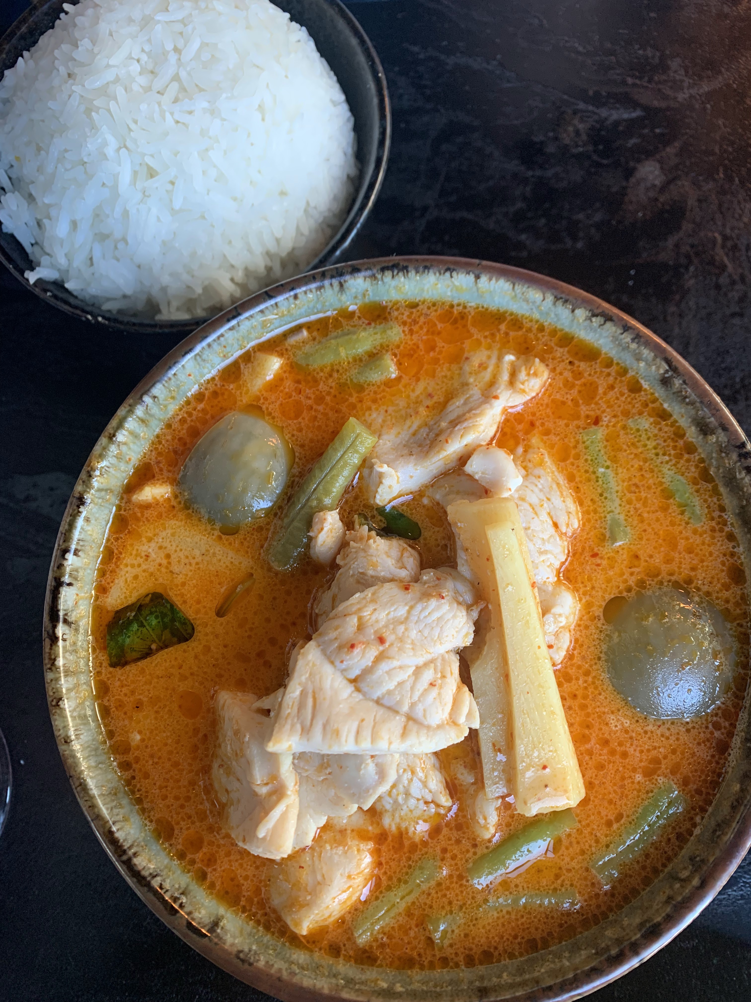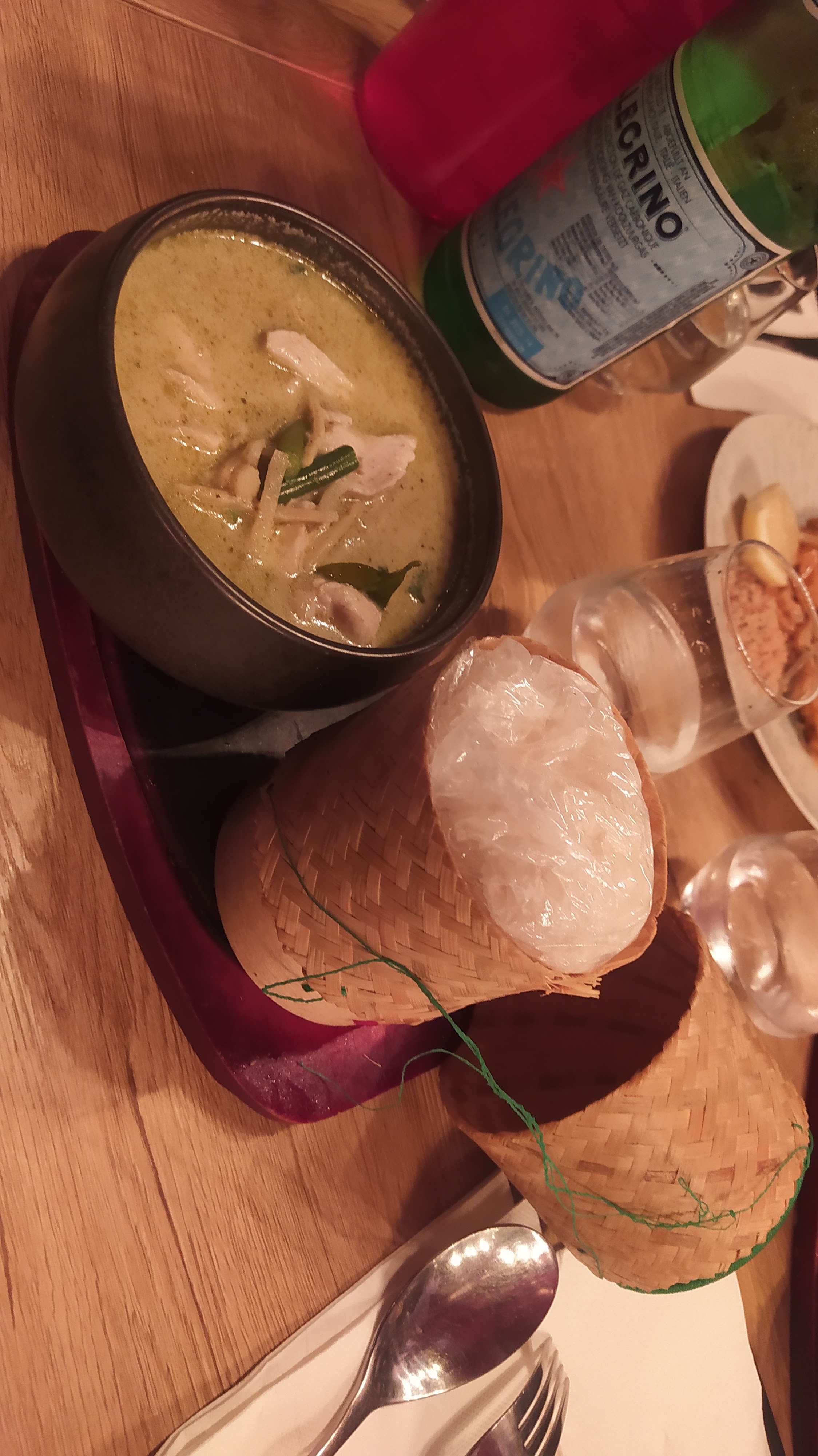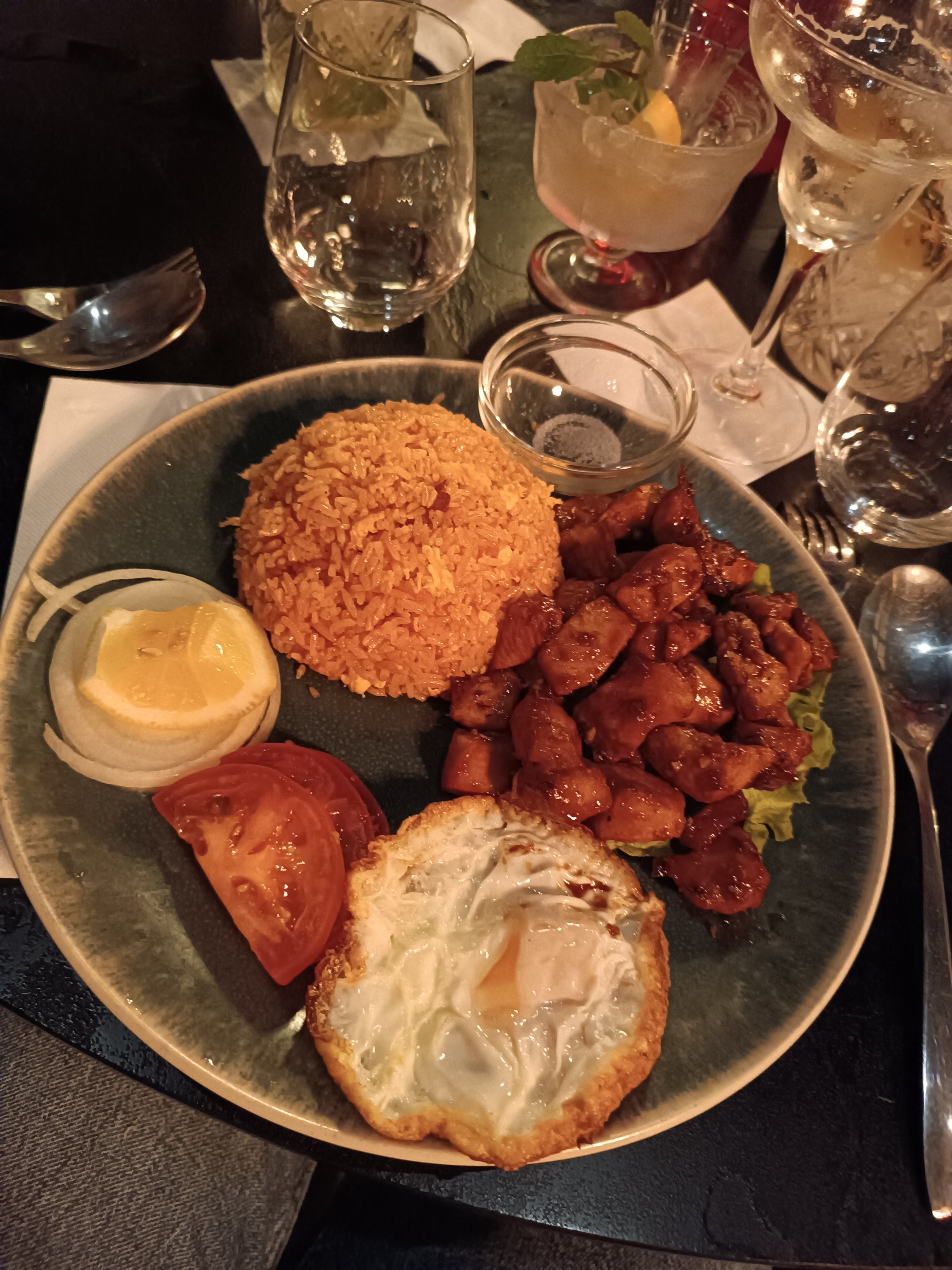 Le lieu est sympa, superbe déco, l’accueil très bien, les serveurs/gérant etc rien à dire! Je n’ai personnellement pas été transportée par les plats, j’avais pris le poulet grillé façon mama thai, j’ai trouvé que ça manquait de saveur/caractère, un peu sec aussi. Nous avons pris du vin rouge (en carafe), il était bouchonné, et une fois remplacé toujours pas bon… Les perles de tapioca en dessert très bonnes en revanche!