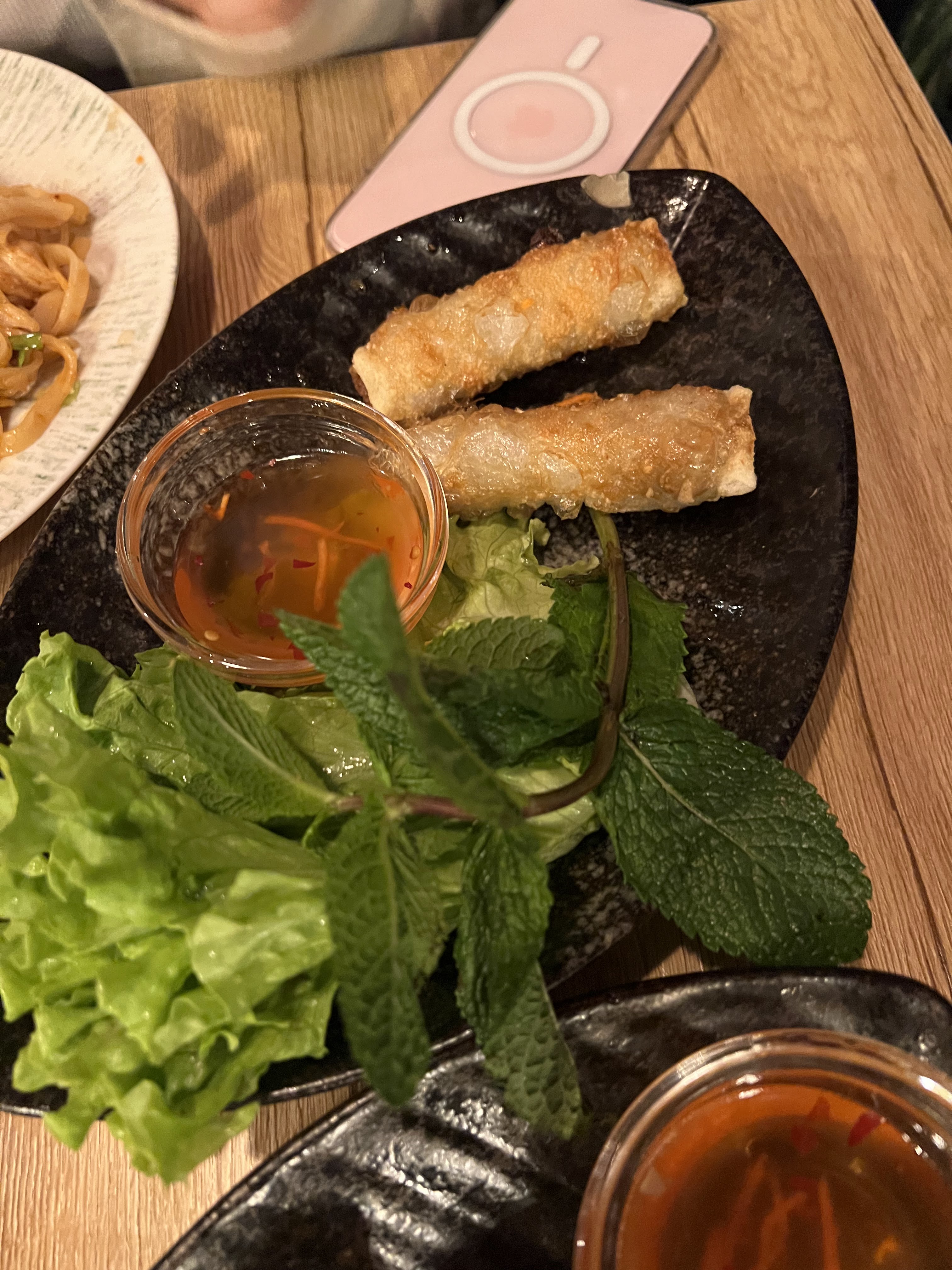 L'entrée (salade d'ananas et crevettes) était délicieuse. Le repas principal était des nouilles de riz, elles étaient bonnes, mais ce serait parfait épicé. Ce soir, il y avait beaucoup de monde, donc le service était lent, mais pas trop. Le personnel était vraiment chaleureux. Après tout, une bonne expérience.