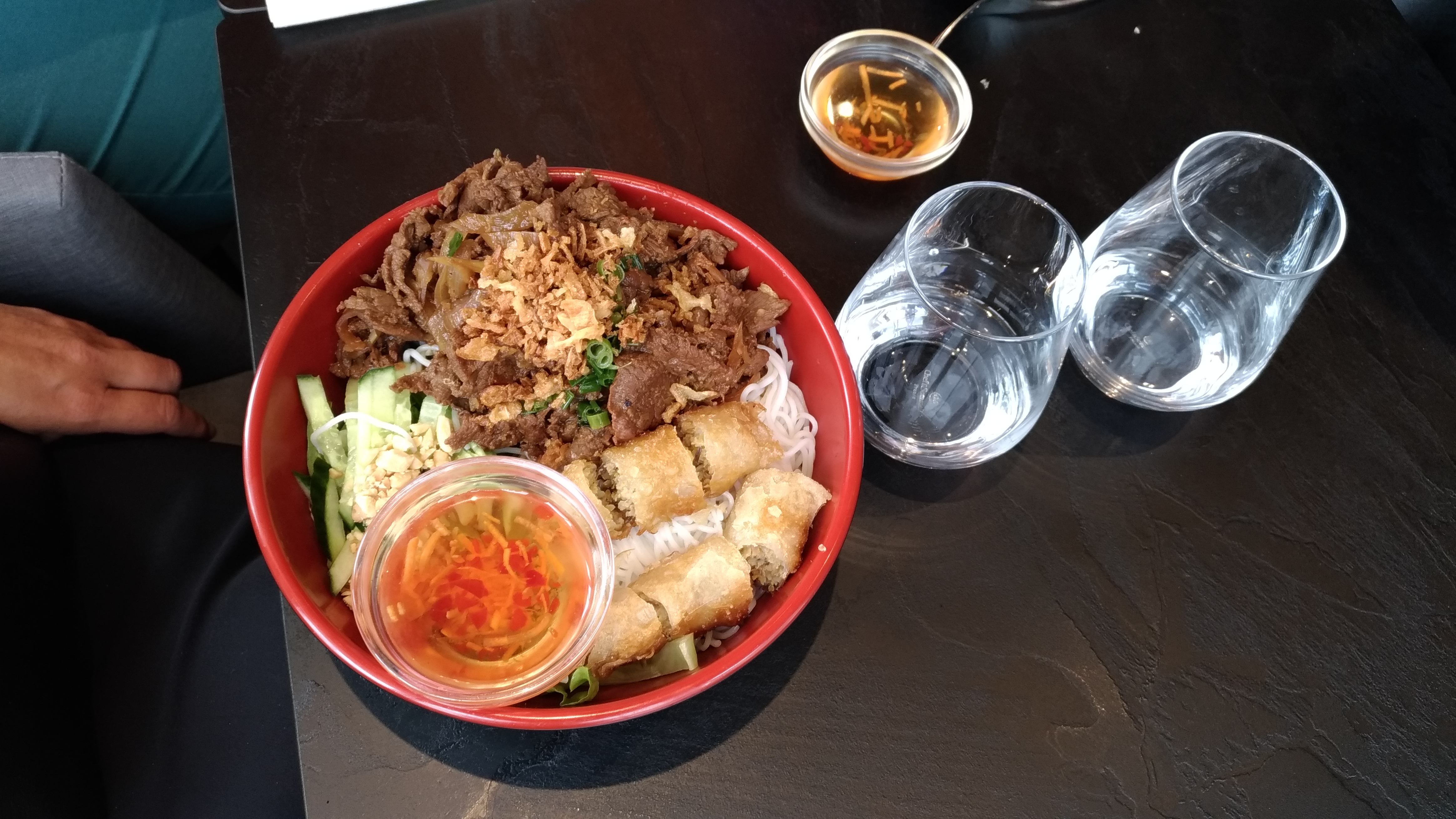 Très bonne adresse ! Les plats sont servis globalement rapidement. On s'attend à de la nourriture asiatique, comme des nems, pad Thai et Lok Lak. Et bien, c'est ce que nous avons ! Chaque élément est bien fait. J'ai pour ma part pris un assortiment frit, un pad Thai poulet et perle coco au Nutella. Je vais être bref: - Assortiment frit: bon, cohérent et croustillant. - Pad Thai: bon. Ils font le choix de séparer les pousses de soja et cacahuètes du reste. C'est dommage pour les pousses de soja car cela devient un peu trop fade, malgré le mélange à la main. Je reste surpris par le citron jaune, je pensais que c'était du citron vert traditionnellement. J'accepte la diversité. - Perle coco Nutella: bonne texture, gourmand. Bon pour les enfants, simple pour les adultes et insuffisant pour les gourmets ! J'aurai adoré une recette un peu plus originale, mais on ne vient pas forcément pour la spécialité des desserts. Je garde est très bon souvenir du restaurant, et je n'hésiterai pas à revenir pour goûter d'autres plats ! Bravo pour tenir ce niveau de nourriture avec ce nombre de clients !