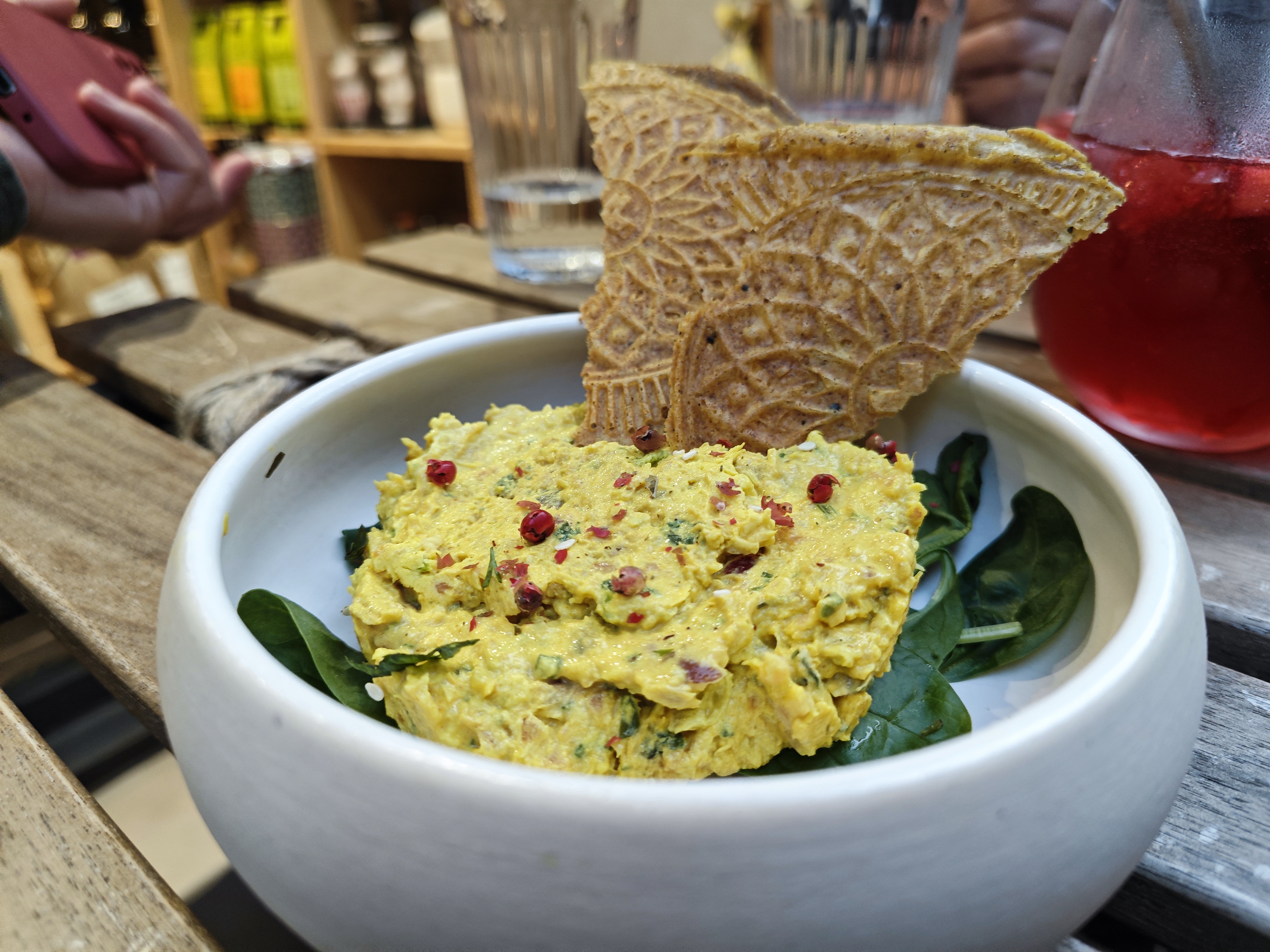 Belle découverte ! Nous y sommes allés un midi puis nous y sommes retournés le soir! Seul restaurant qui s'est mis au diapason avec les horaires de concert.. ainsi nous avons pu manger rapidement et sainement avant d'aller à notre concert. Nous avons beaucoup aimé la carte du midi, colorée et savoureuse où l'on ressent tout l'engagement de la cheffe ! Le soir, la meringue vegane était excellente et la pastilla très savoureuse