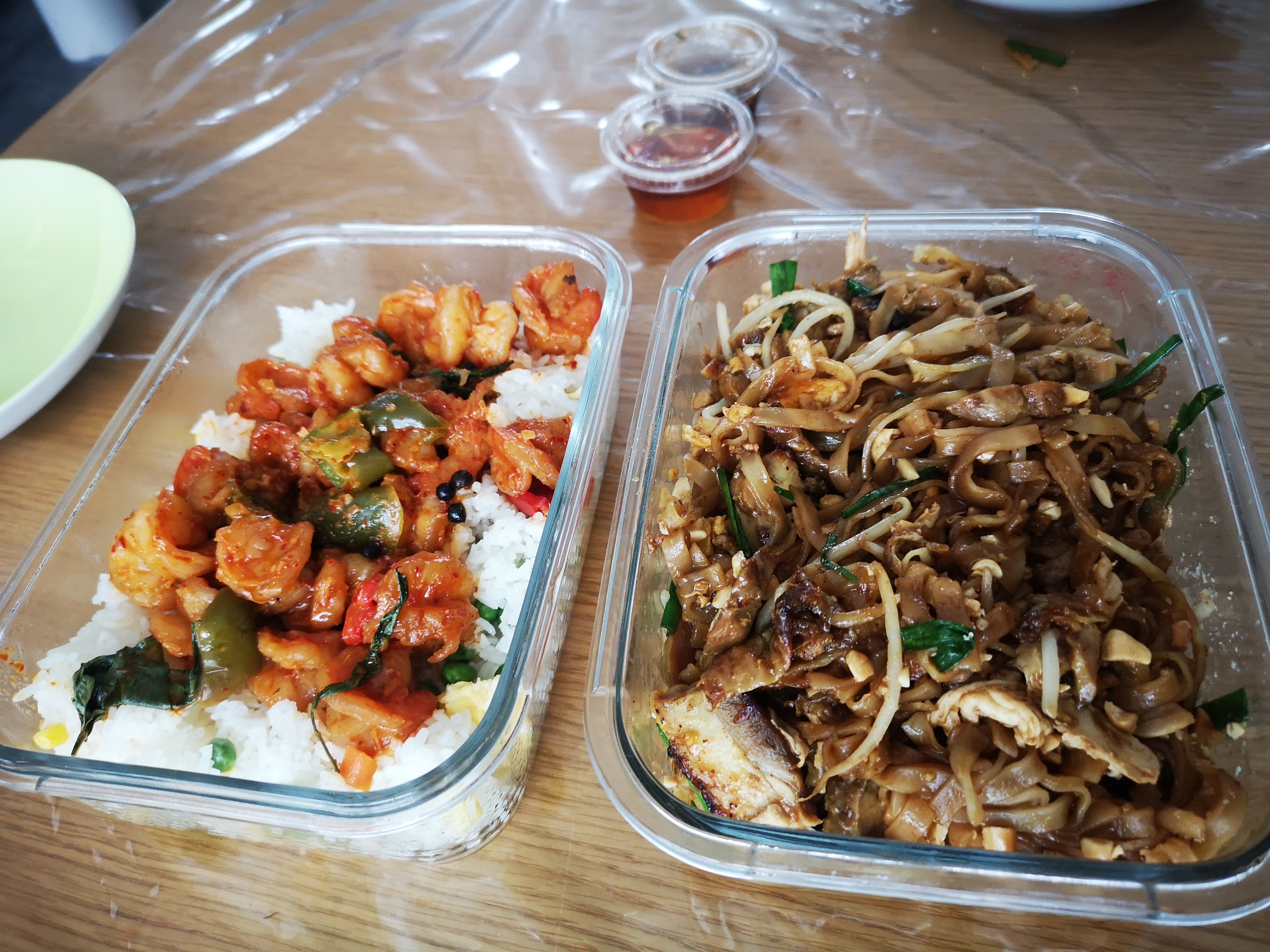 Bonnes pâtes Thai et plat de crevettes. Mais ce qui me fait venir ce sont les desserts mochi mangue (j'aime moins la fraise et thé vert bien que fan du thé vert, et le Ferrero n'avait pas d'intérêt ) . La dame nous a fait goûté un thé avec des extraits de passion qui était délicieux. En plus, pour l'écologie, on peut ramener ses Tupper ware 👍