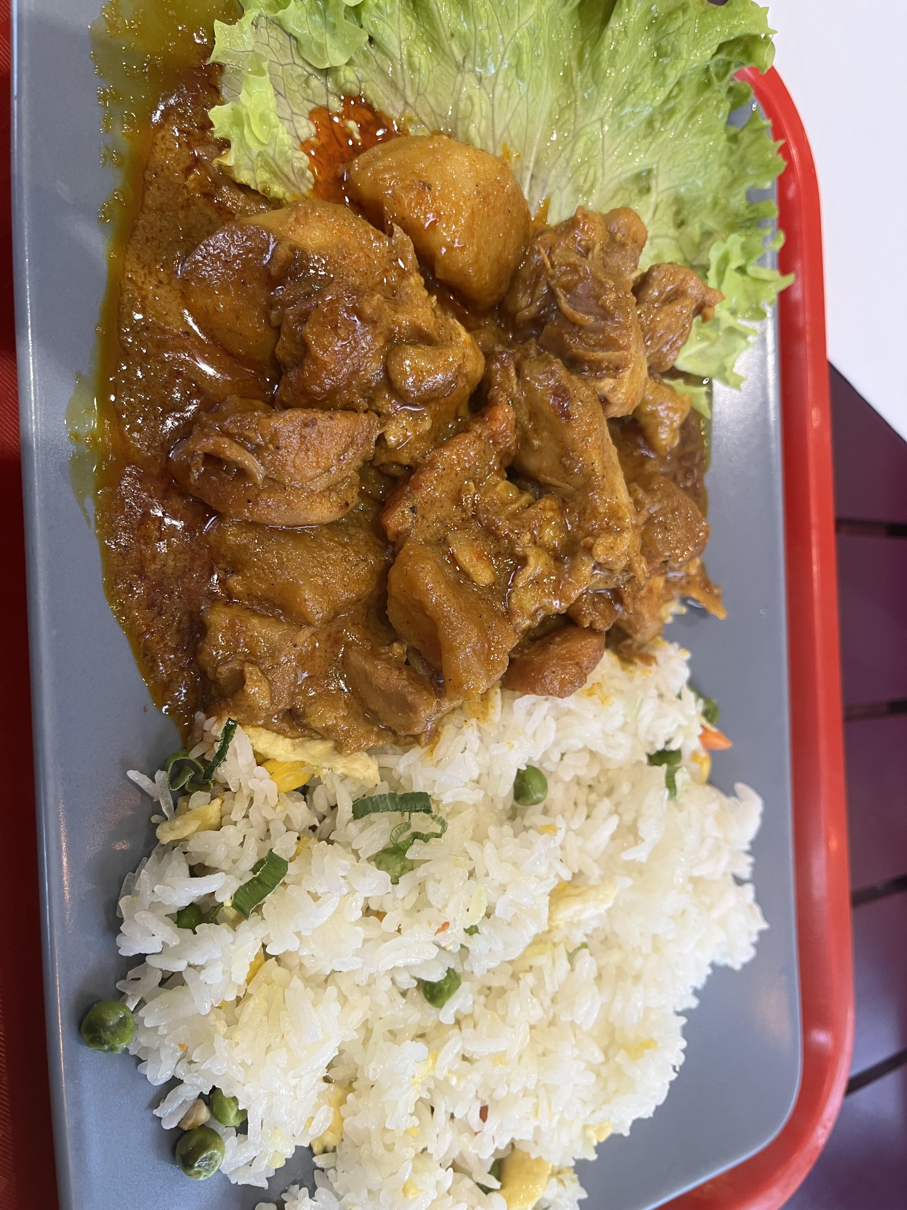 J’ai pris trois plats .poulet au curry beaucoup trop sucré avec du riz Raviolis au bambou à la vapeur Pas bien réchauffé micro-ondes Pâté chaud réchauffer au four micro-ondesC’est pas très bons Le personnel est sympa mais le patron trop antipathique et grincheux Il n’est pas du tout commercial Ni un bonjour ni Un au revoir pourtant il a besoin des clients pour vivre