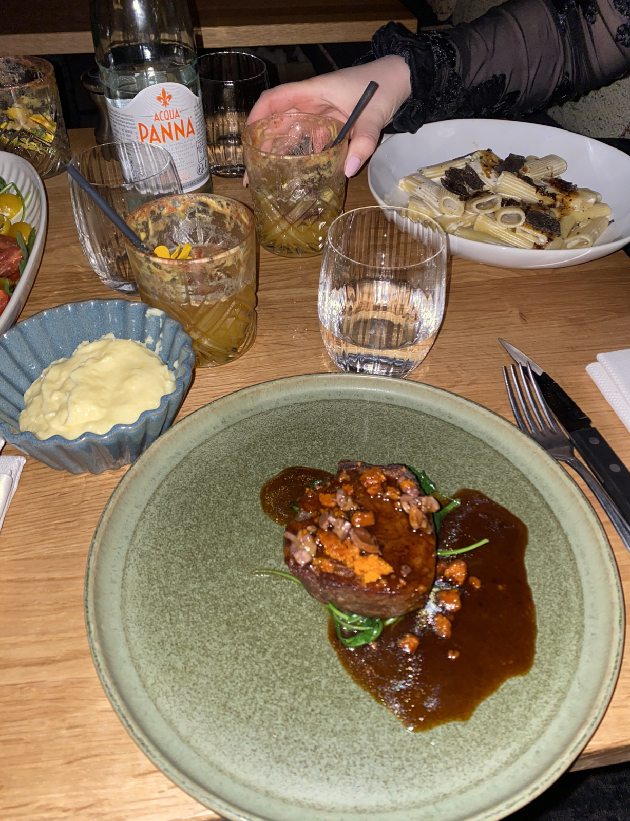 Très jolie décoration et service aux petits soins. La nourriture était délicieuse (je recommande la straciatella et les rigatoni à la truffe) tout comme les cocktails. Les prix sont peut-être toutefois un peu abusés parfois… Coté ambiance, il y a eu un super chanteur/guitariste durant tout le dîner mais ça n’a pas vraiment décolé ensuite car restaurant peu rempli, sûrement dû au fait que c’était un mercredi soir. Donc mieux vaut y aller dès le jeudi et le week-end pour vraiment profiter de l’expérience !