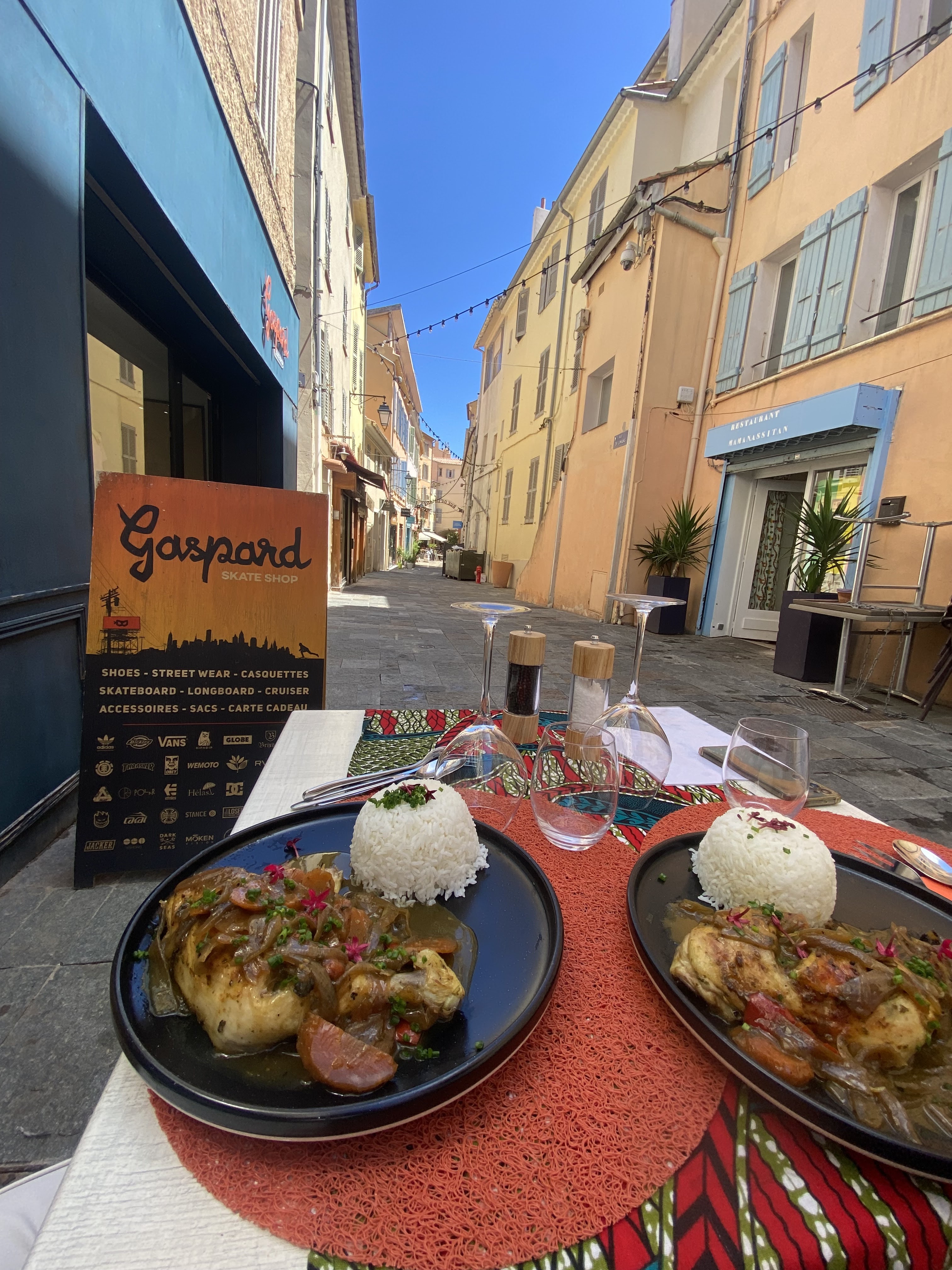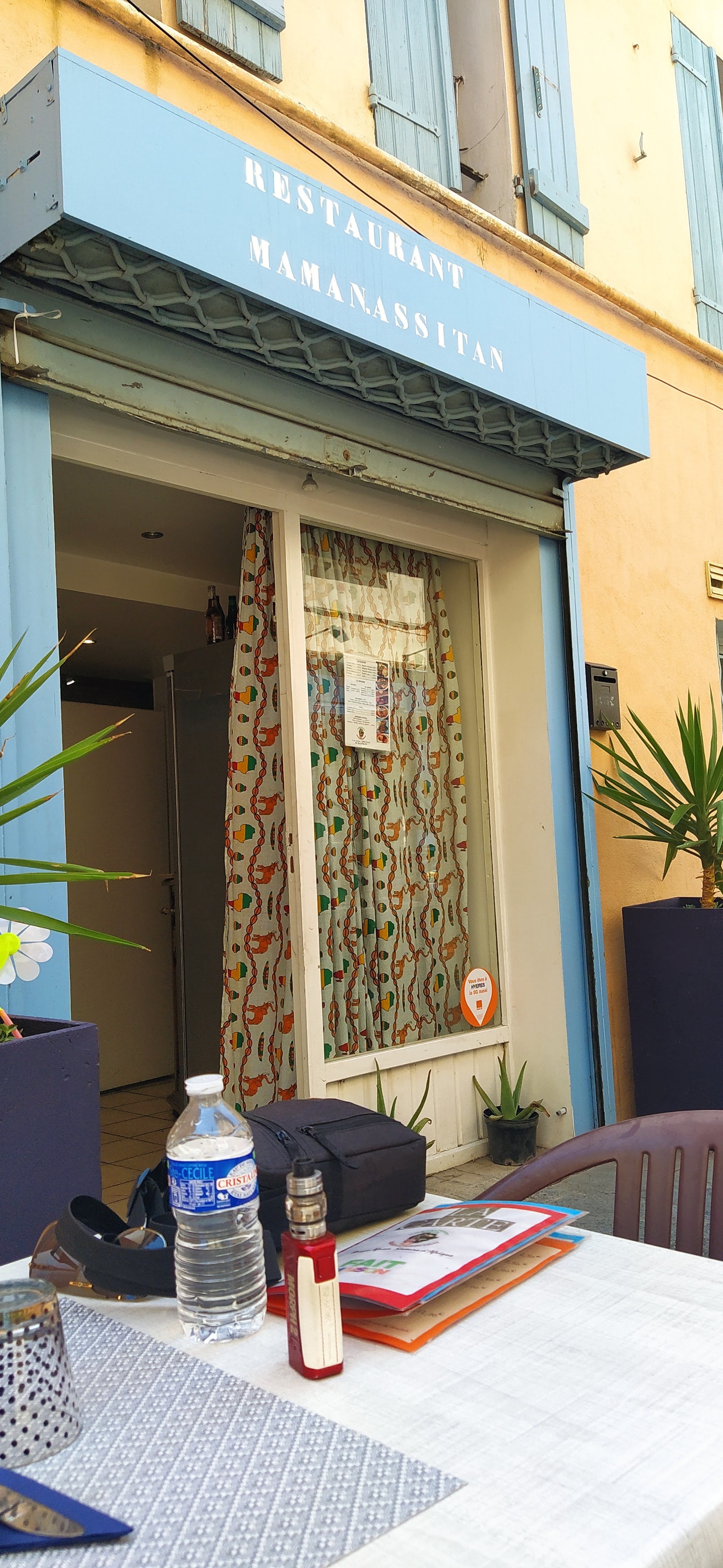 Petit restaurant charmant, J'ai mangé un très bon poulet Yassa, à prix vraiment canon. Bravo! Accueil vraiment chaleureux Table en terrasse, dans une rue piétonne en centre ville de Hyères.