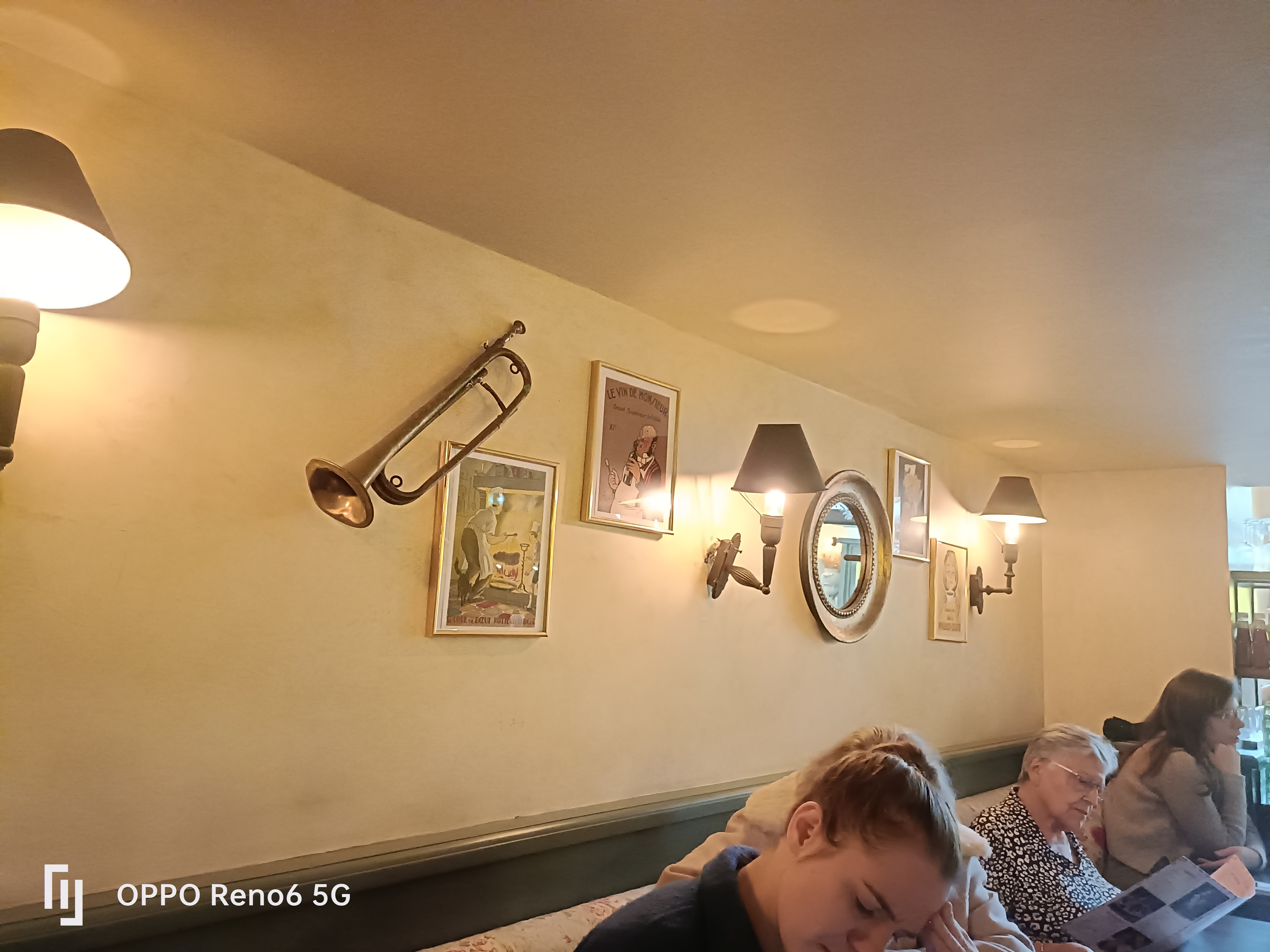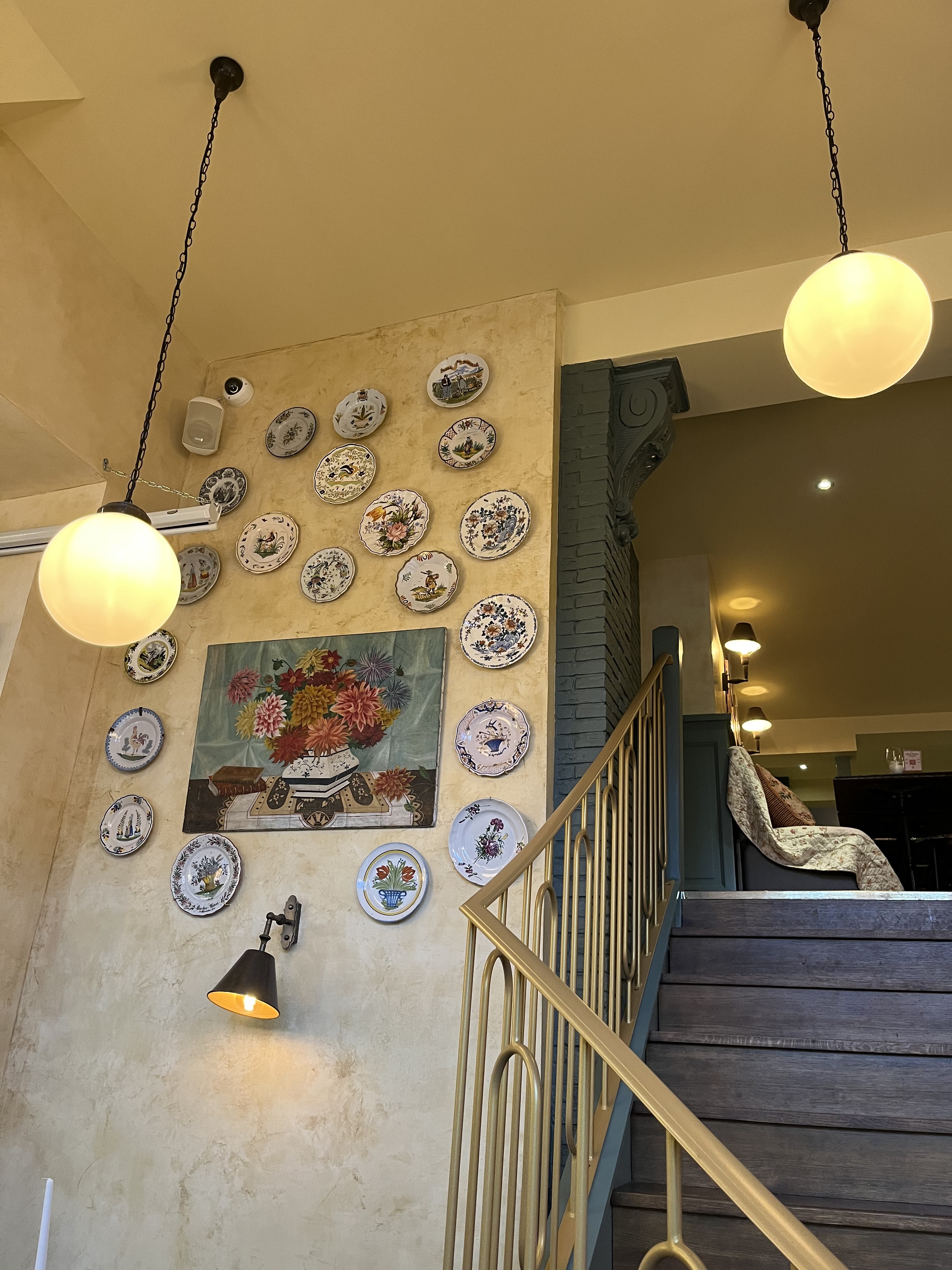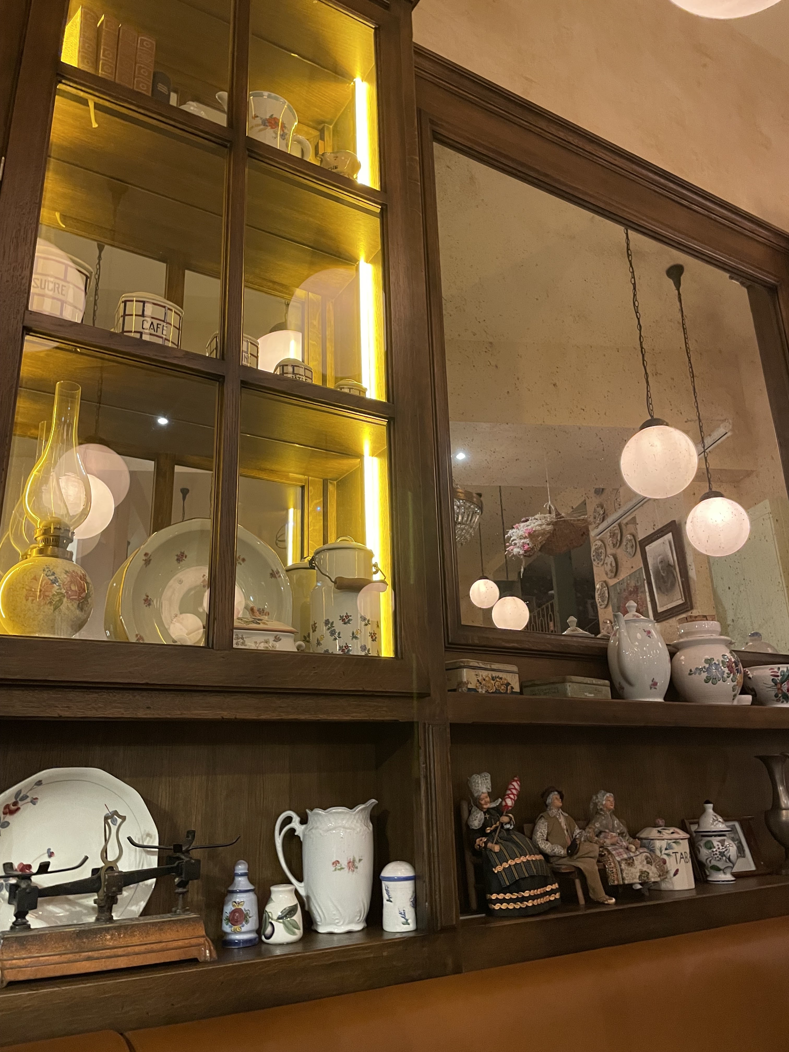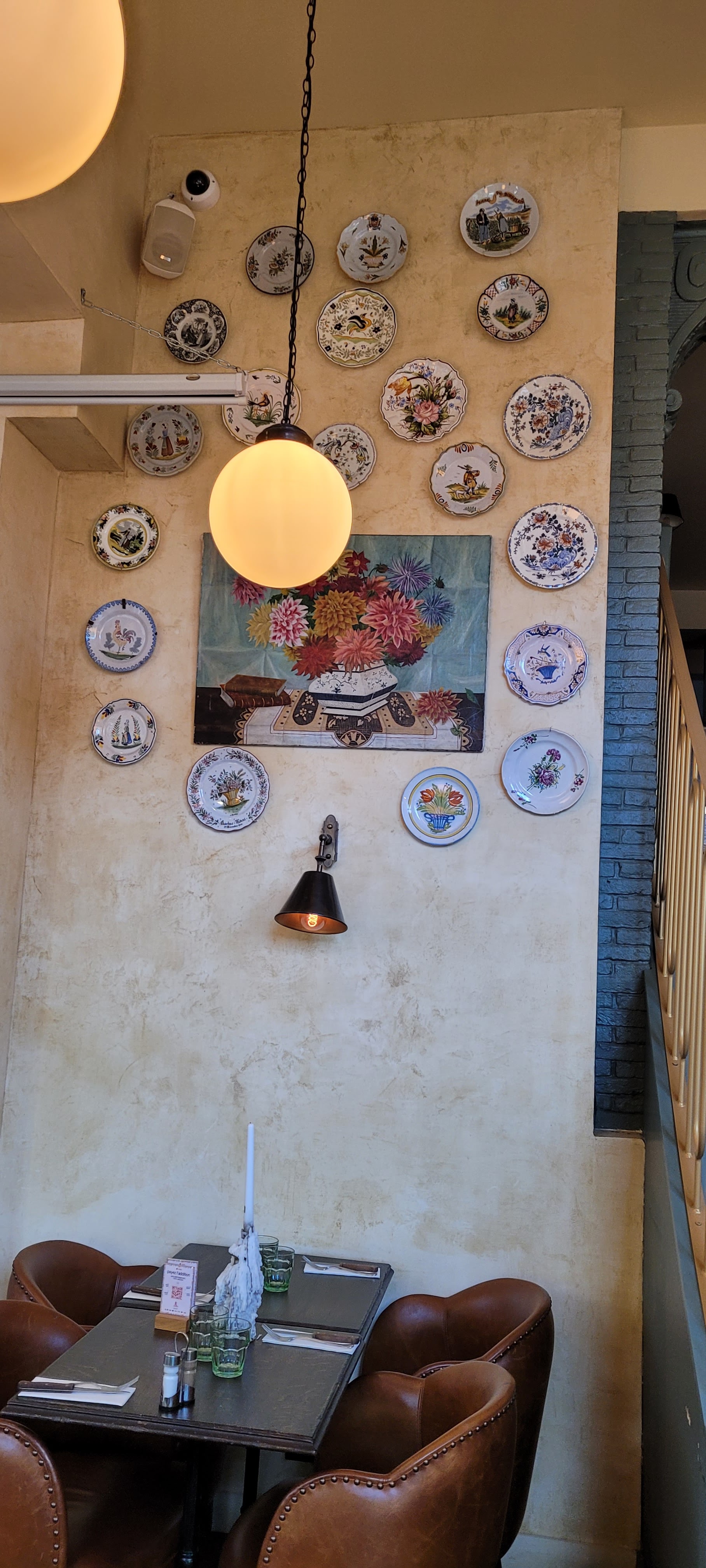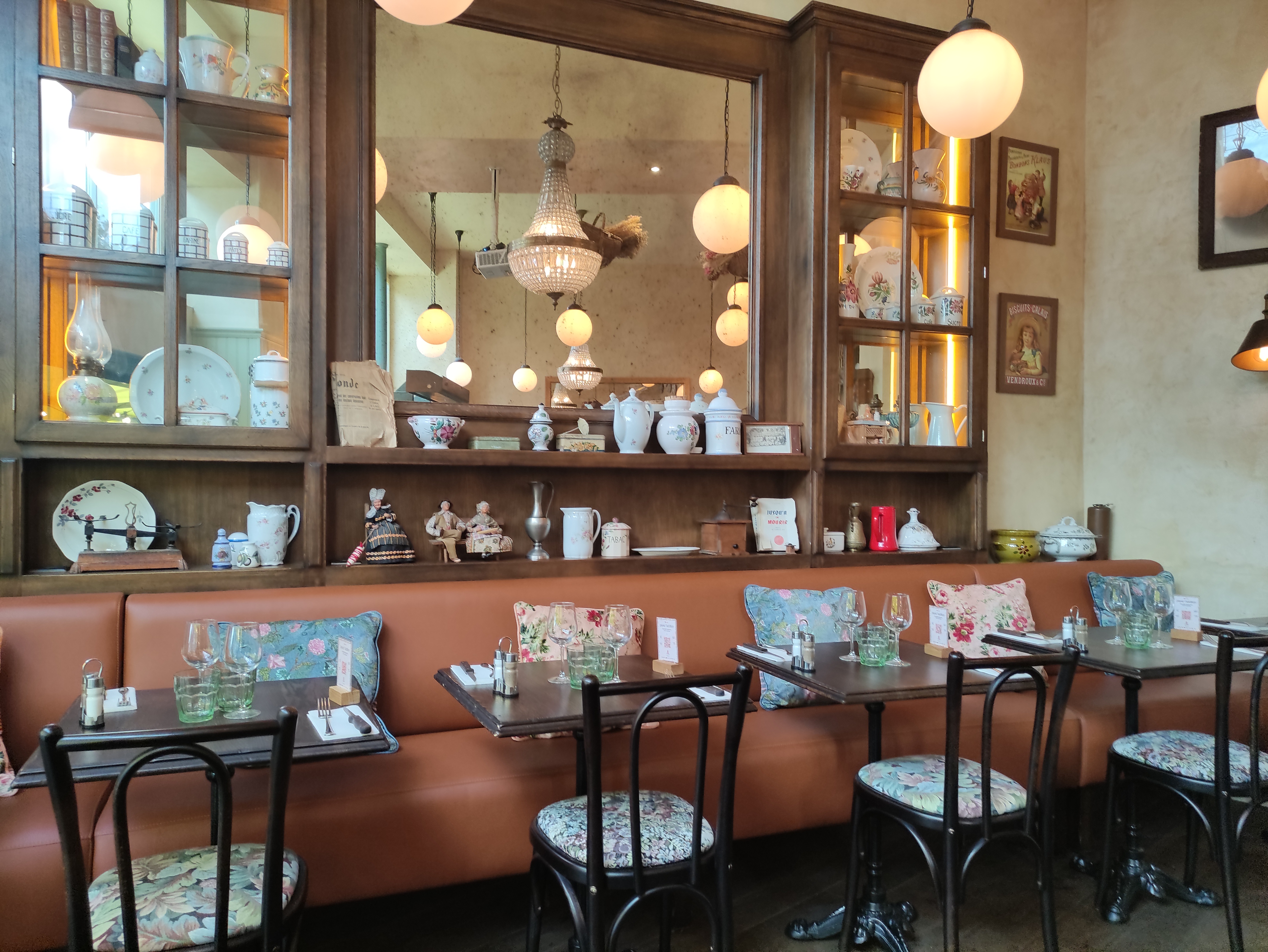 Lieu sympa avec sa déco comme chez mamie surtout les assiettes au mur j'adore !! Les plats sont bons mais petit bémol pour le croque madame servi sur une planche en bois pas top au niveau hygiène.
