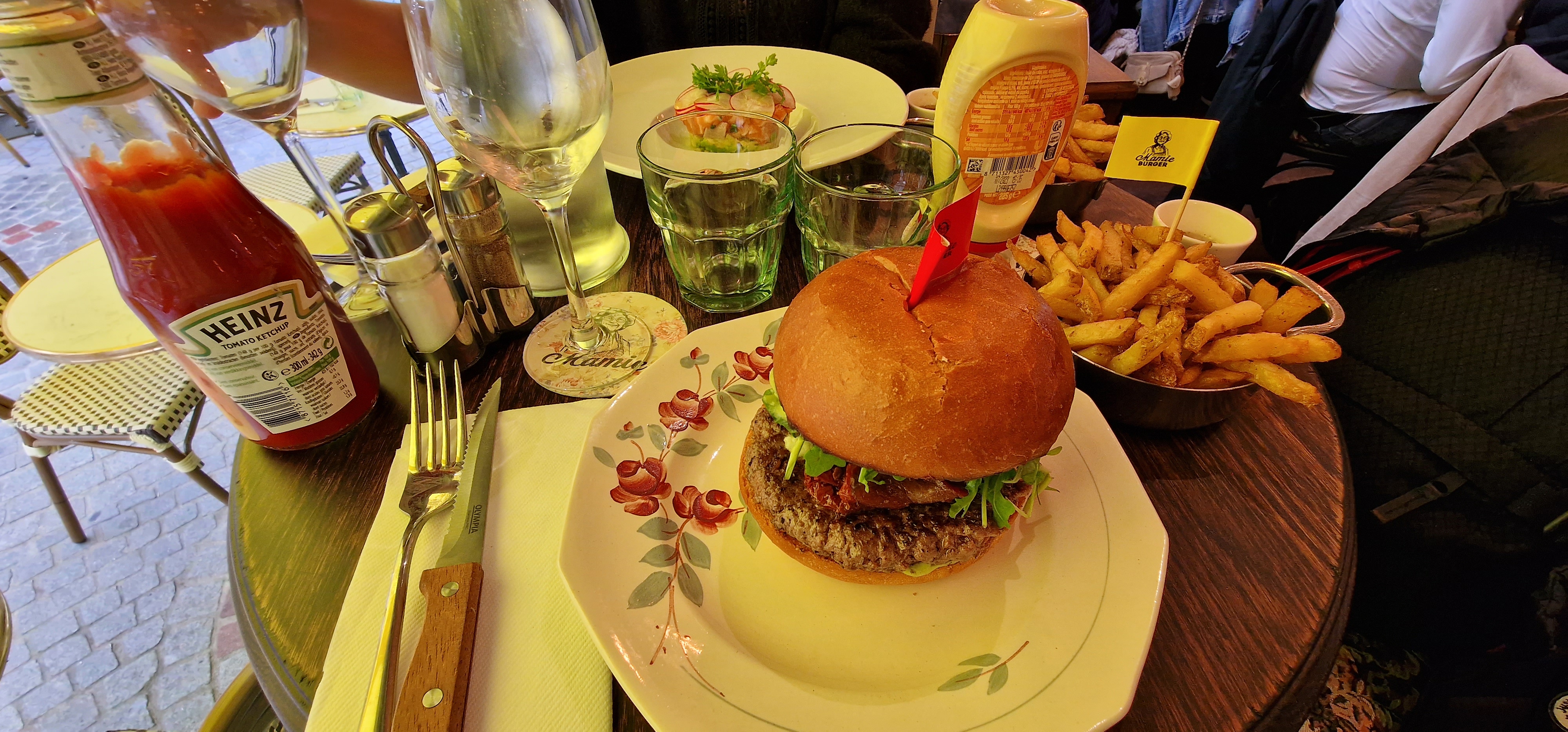 C’est la deuxième fois que je viens dans ce restaurant et mon avis ne change pas. Le prix est trop élevé pour ce que l’on vous sert. 13€ le burger sans accompagnement (supplément de 4€ minimum), 8€ le dessert. J’avais demandé la cuisson de mon steak haché saignante, la demande n’a pas été prise en compte. De plus, le plat était juste chaud. Pour le dessert, il vaut mieux profiter des pâtisseries d’un salon de thé que de commander des desserts sans goûts. Cela peut arriver, mais il serait judicieux de prévenir la table lorsque un plat manque à la carte. Pour finir, le temps d’attente fut long.