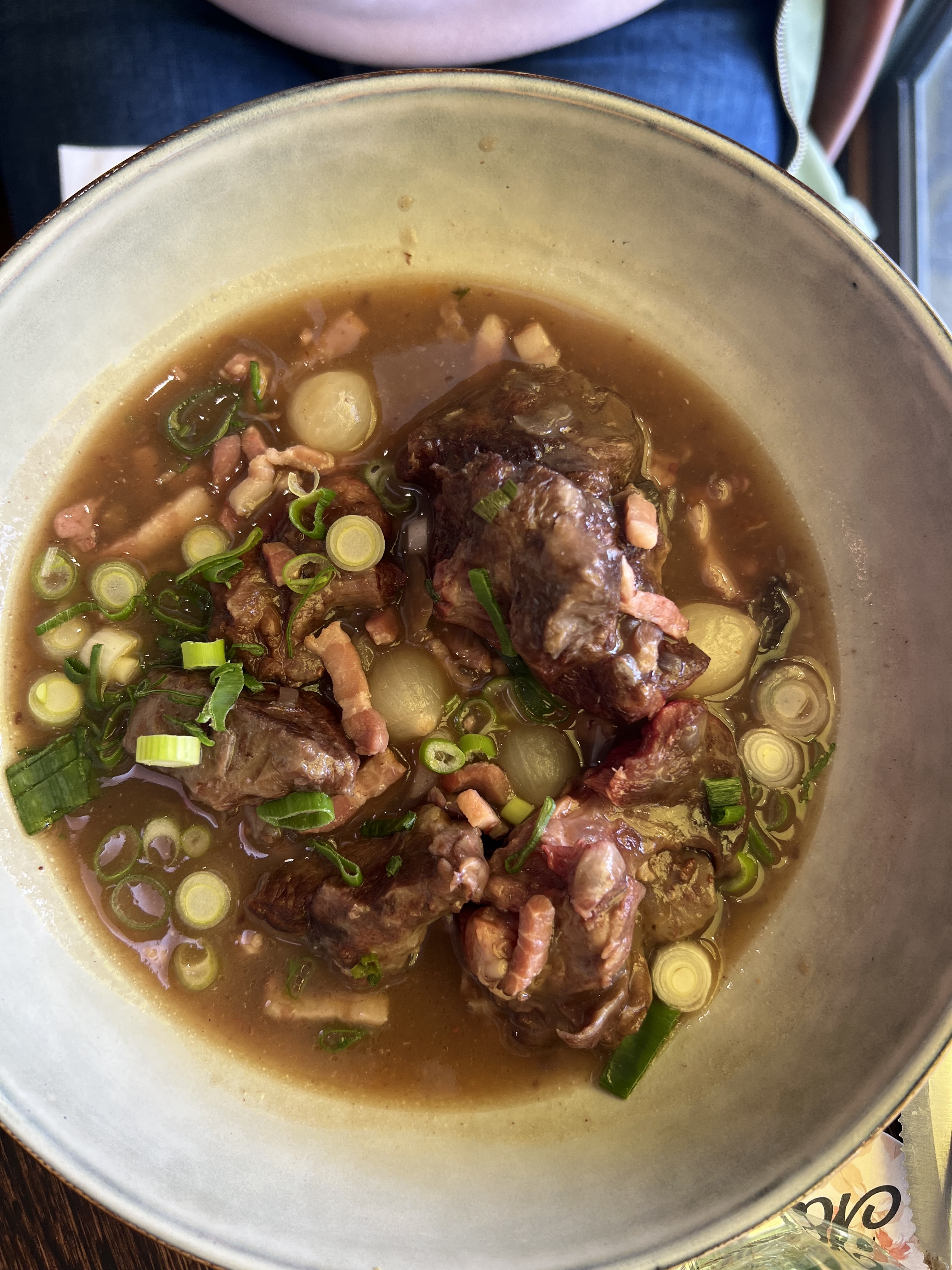 Si je pouvais mettre 0 étoile j’aurais mis. La soupe à l’oignon était bonne mais Le boeuf bourguignon n’avait rien à voir avec un boeuf bourguignon. C’était très huileux on n’a pas pu le finir. C’était inmangeable. Et le pire c’est que le restaurant n’a eu aucune réaction, n’ont rien fait pour compenser même après leur avoir dit que c’était inmangeable et après avoir retourner les plats intacts. Juste une déception!