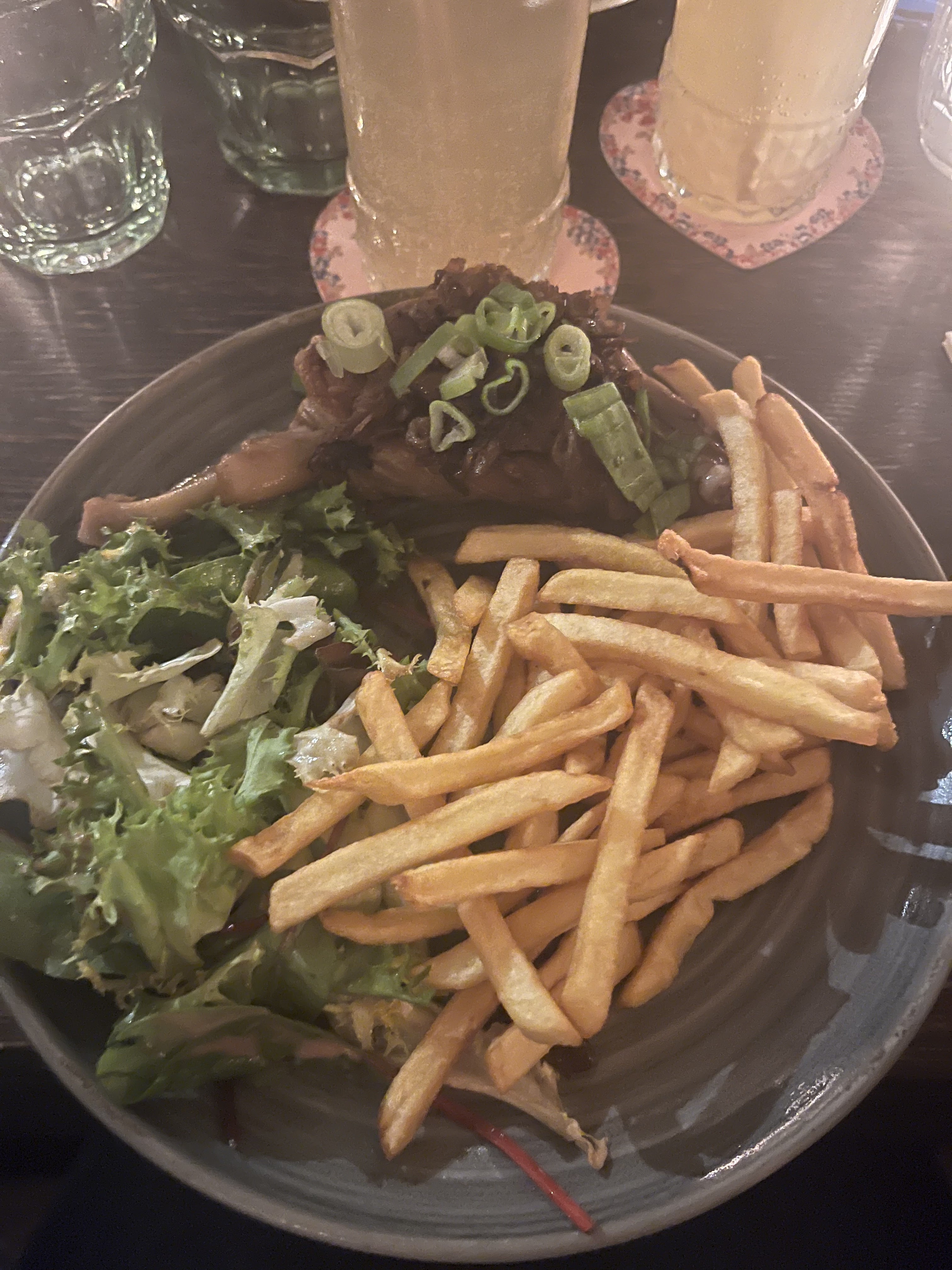 Portion de frites un peu juste pour le prix, sans dessert on reste sur sa faim. Bonne cuisine dans l’ensemble. Serveur agréable et rapide en semaine.