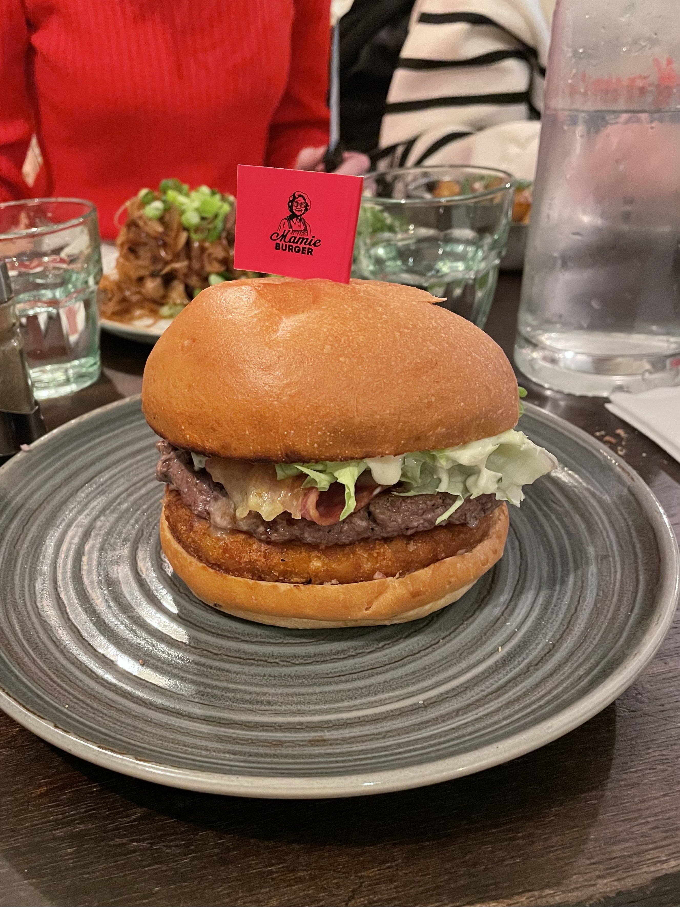 Une adresse excellente. Choisi un peu au hasard, nous ne regrettons pas notre choix. Sans réservation et avec un petit, nous avons très très très bien mangé. Les burgers sont ouffissimes!!!!!!! Le pépé normand avec le camembert pané est un délice. Mais le musée c'est le double burger avec le fromage. Si vous cherchez un endroit pour le déj ou le dîner, arrêtez vous chez Mamie . C'est endroit est génial. Le personnel est stylé, et très sympa et poli. Merci pour ce moment très sympa. Nous qui ne connaissions pas Rouen, et bien non seulement la ville est superbe mais on y mange bien.