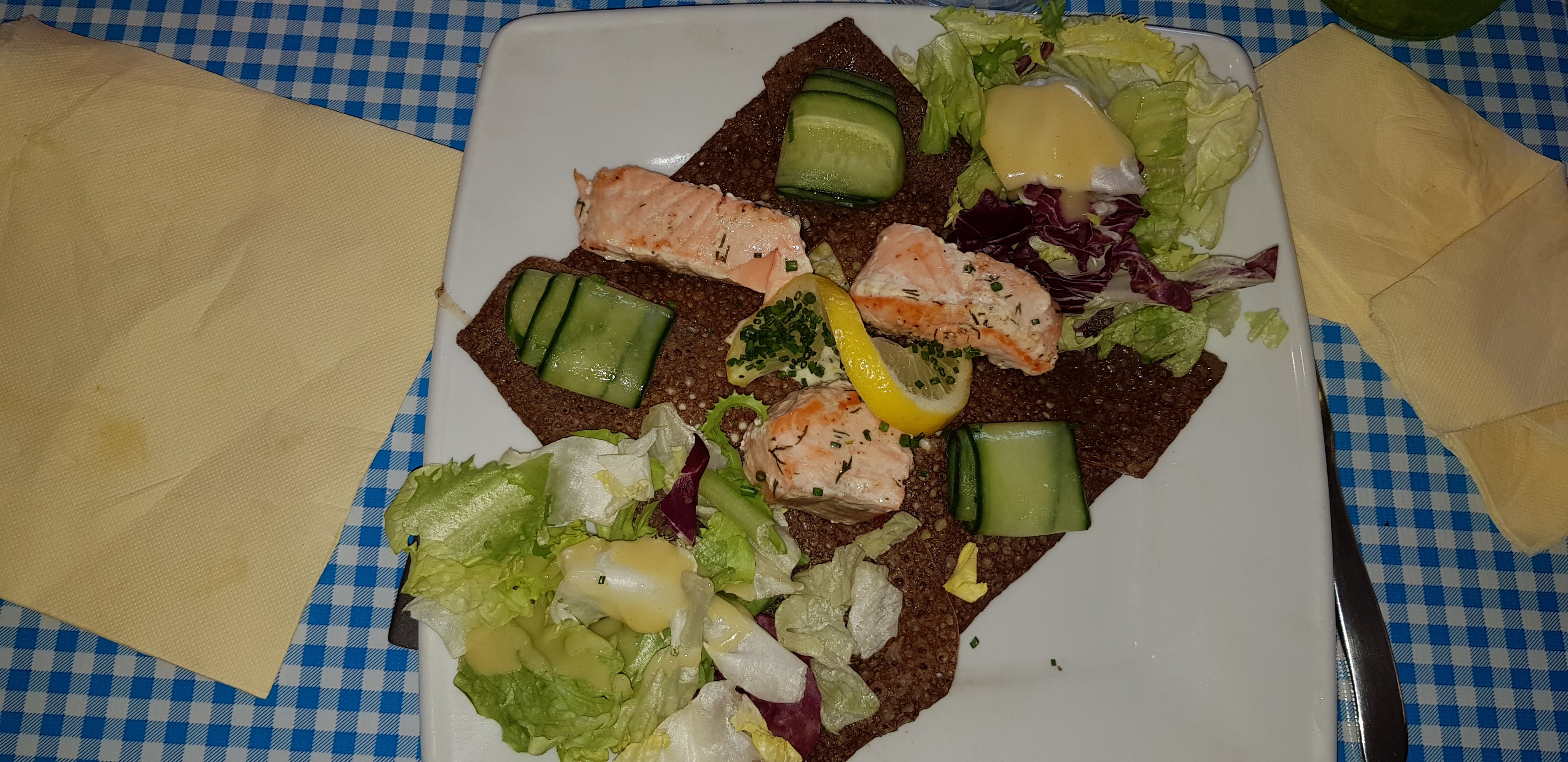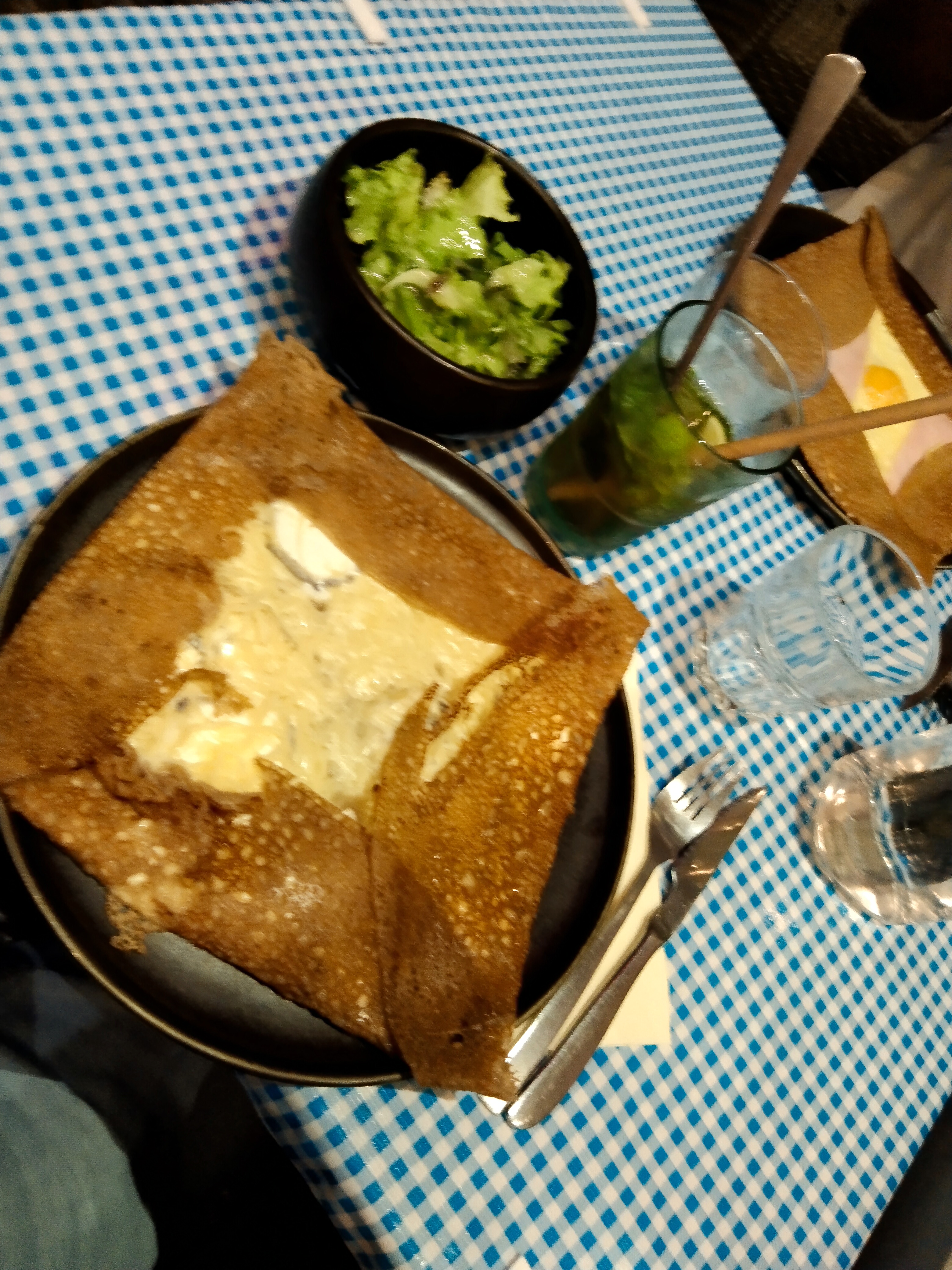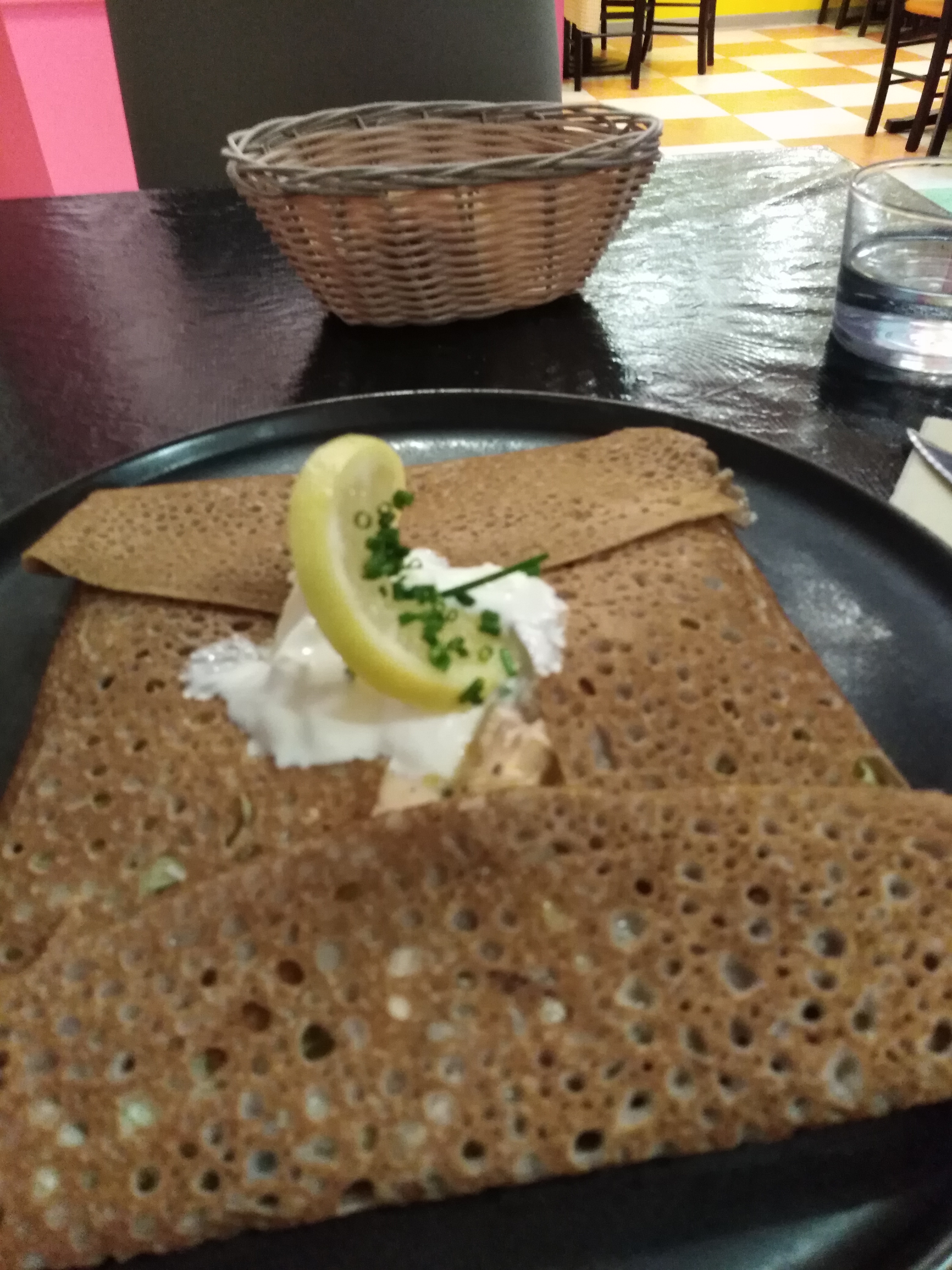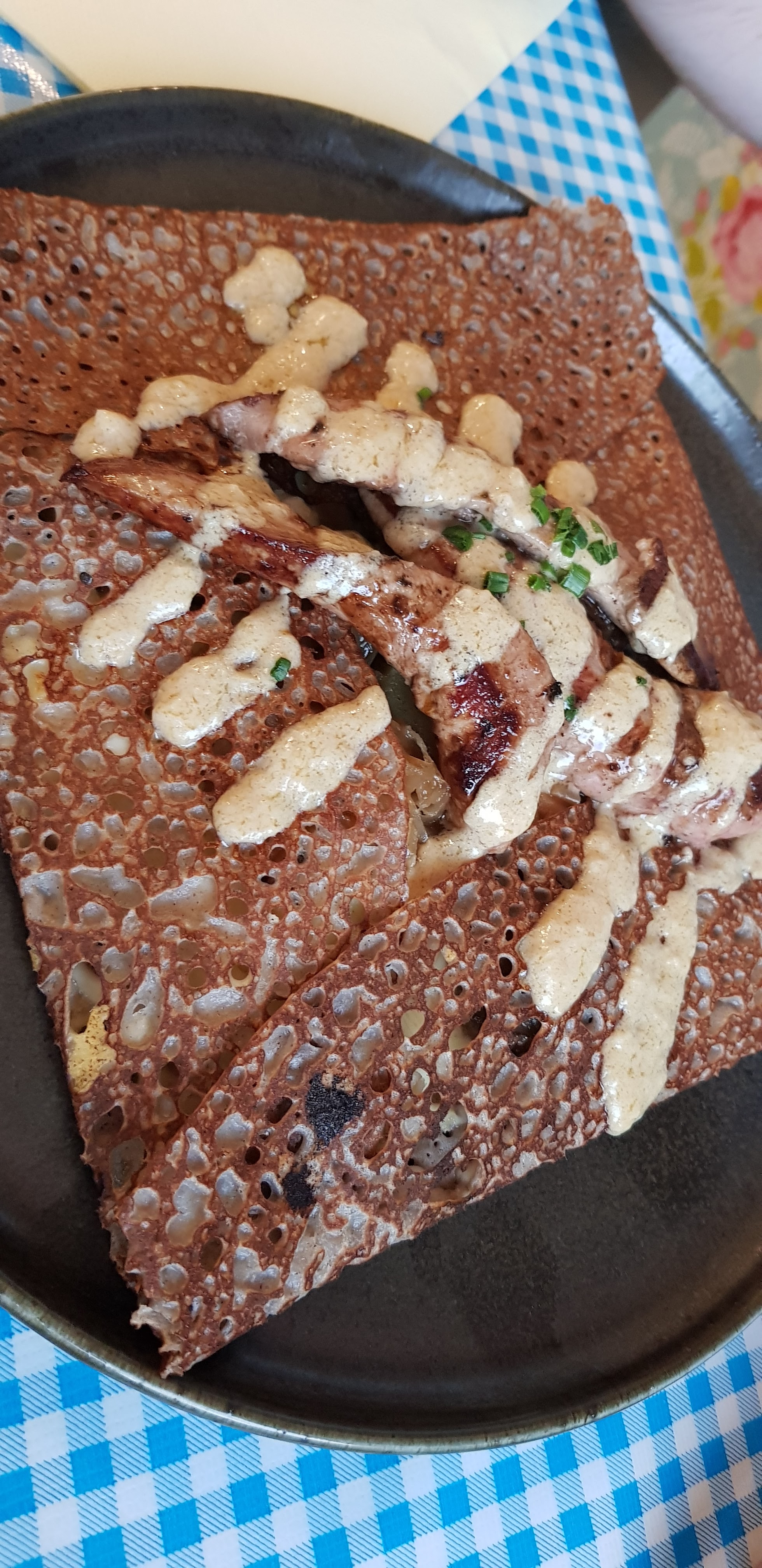 Première fois dans ce restaurant à la décoration très atypique et surprenante, un régal pour l’imaginaire. Quand au plat, les galettes légères, savoureuse, bien garnie nous on bien remplie le ventre. Et pour finir le service agréable, souriant, rapide. Un restaurant où l’on reviendra.