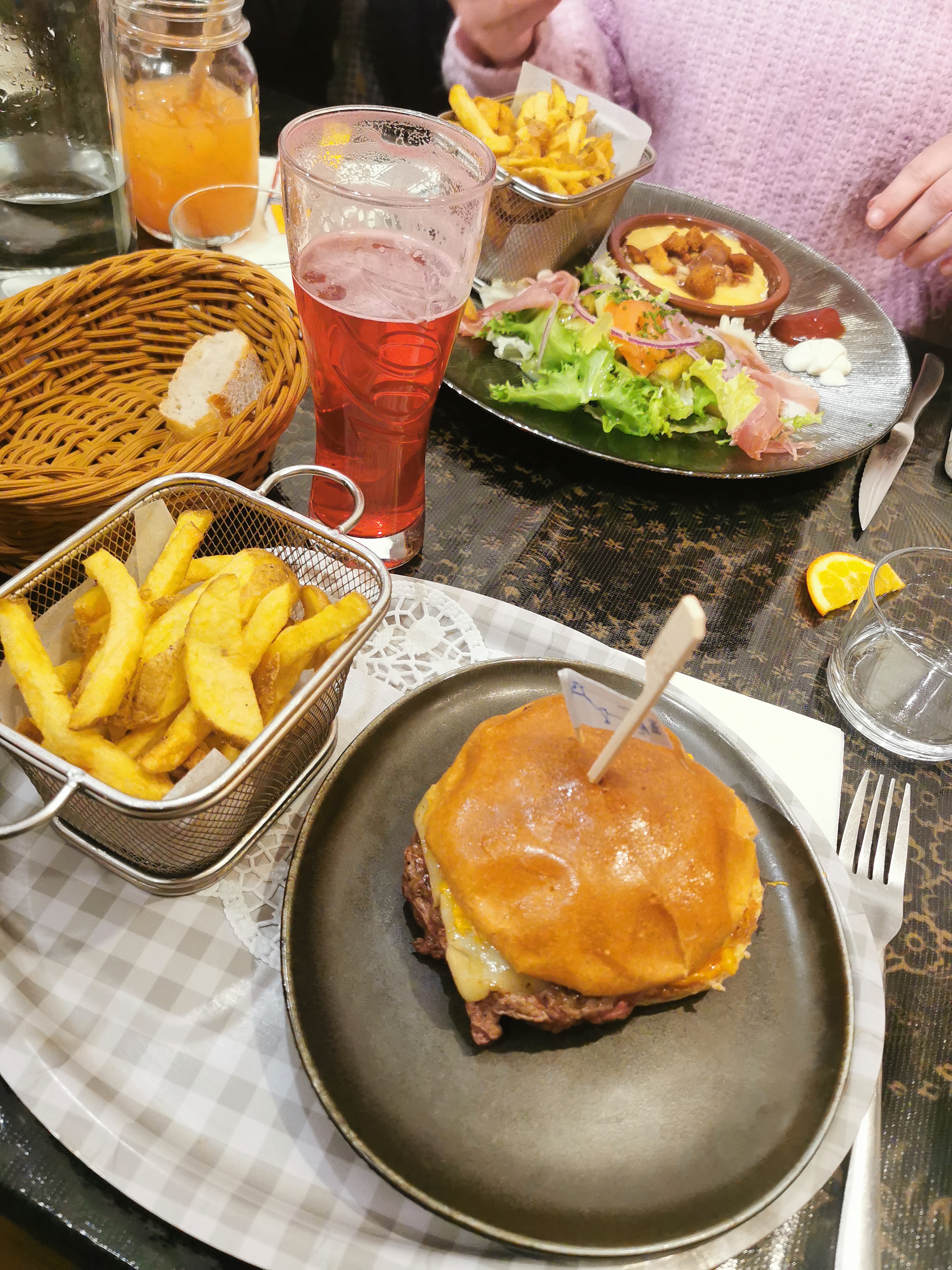 La décoration assez insolite des lieux en fait un endroit plutôt convivial. Réservé une table de 8 un samedi soir à 21h30, nous étions la dernière table et avons trouvé le service un peu expéditif, tout s'enchaînaient très (voire trop) vite. Néanmoins, notre serveuse était très sympa. J'ai pris un burger avec frites maisons, je n'ai pas trop aimé la sauce au cheddar qui était à mon goût trop écœurante mais la viande était bonne et la cuisson parfaite. Bon rapport qualité-prix.