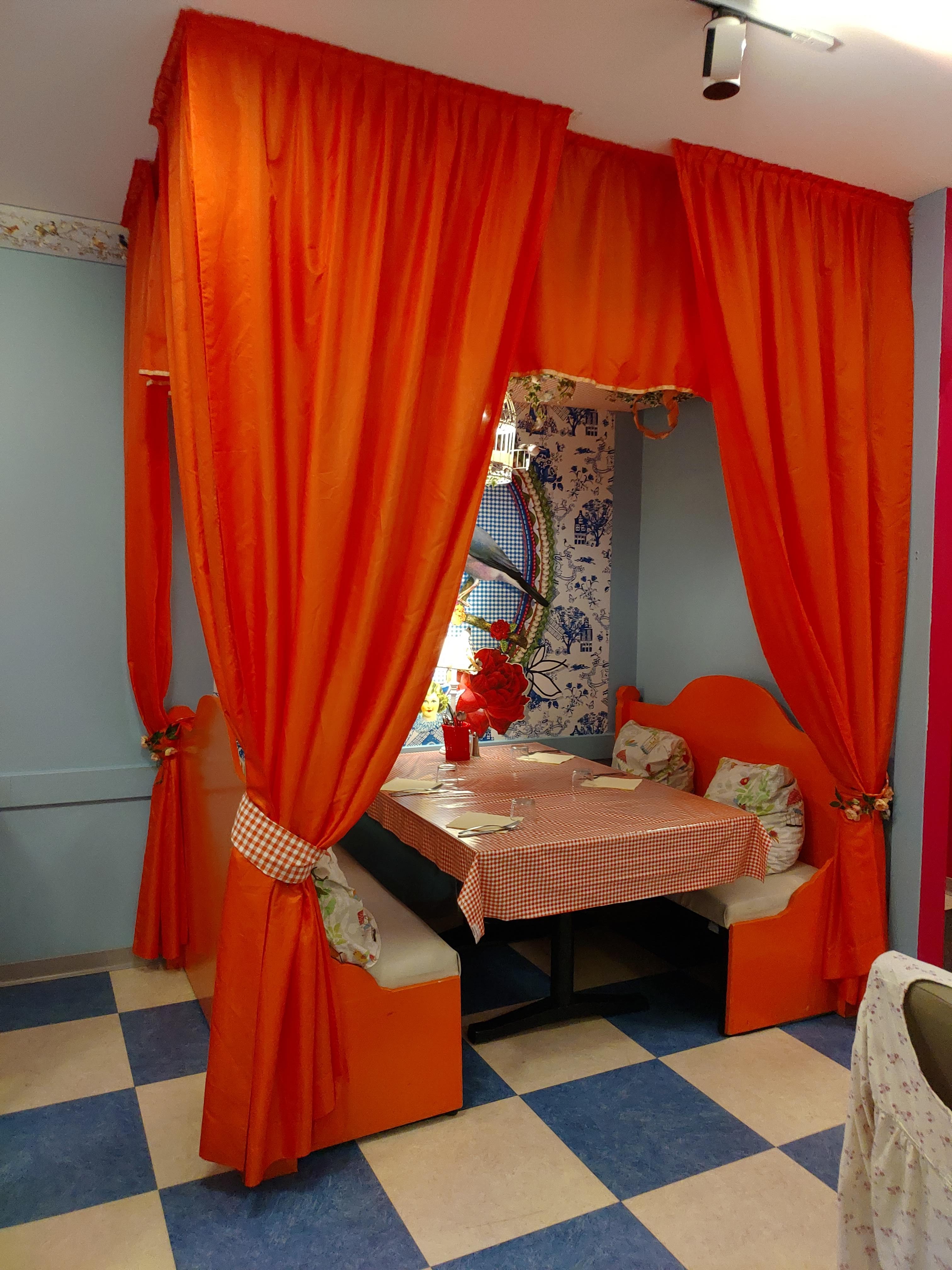 Le type de restaurant est très original ! Ce qui donne vraiment envie d'y aller manger entre amie ou en famille ! On peut manger dans la chambre comme dans la salle de bain. Ces vraiment chouette. Malgres ça je trouve la cuisine pas si fameuse que ça.. Mais on passe un bon moment dans ce décor original !