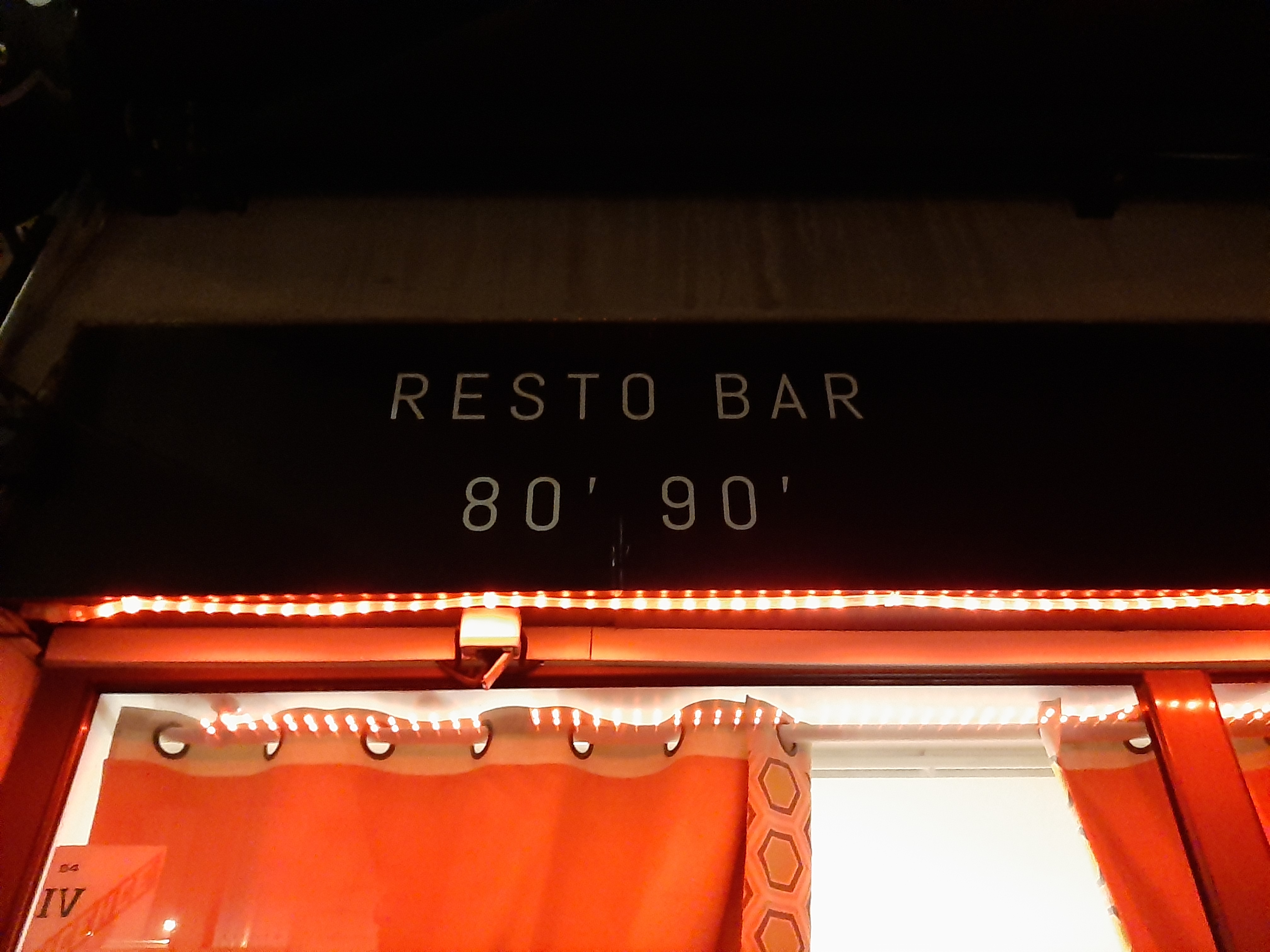 Dans un cadre années 80 (minitel, rubik's cube, portraits de stars des années 80 au mur), vous mangerez bien et serez servis par des serveurs très sympas. Et à 22h30 la fête commence, le restaurant devient boum des années 80. Très belle expérience qui vous rendra nostalgique