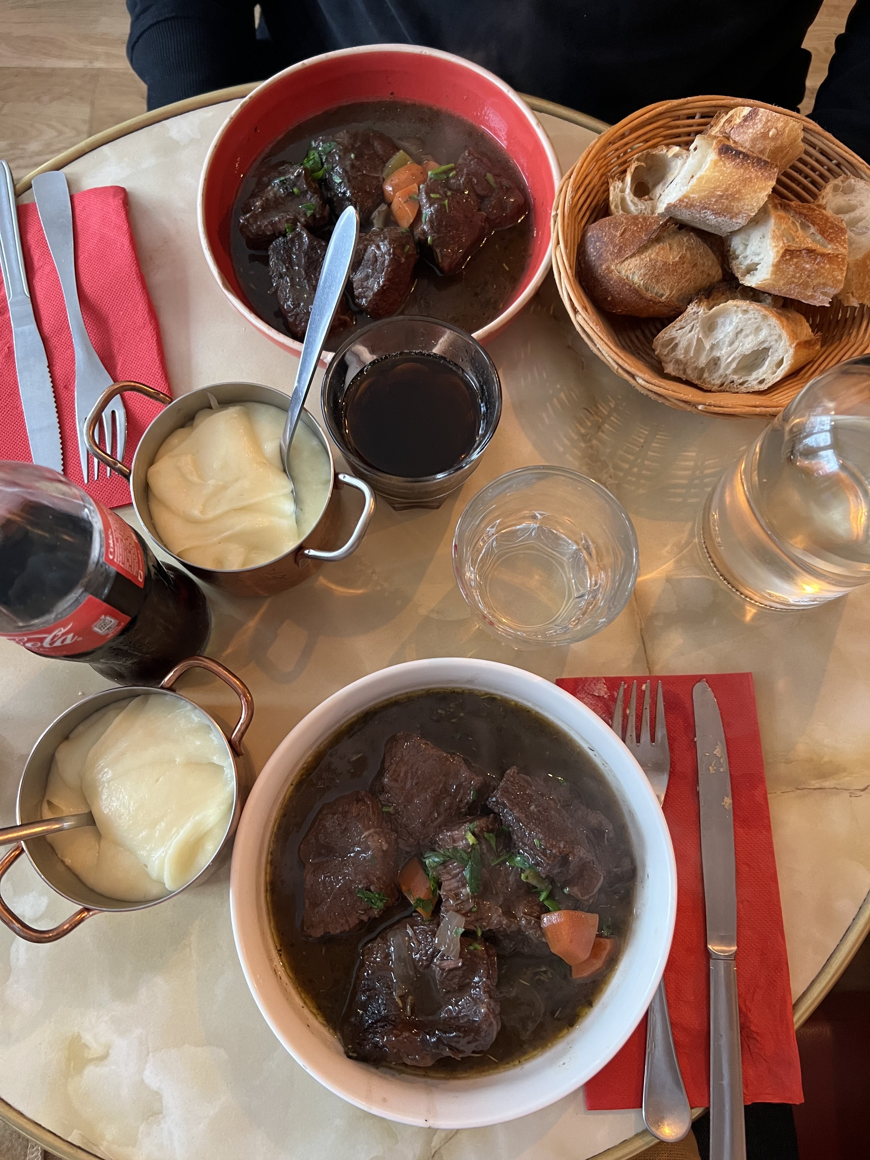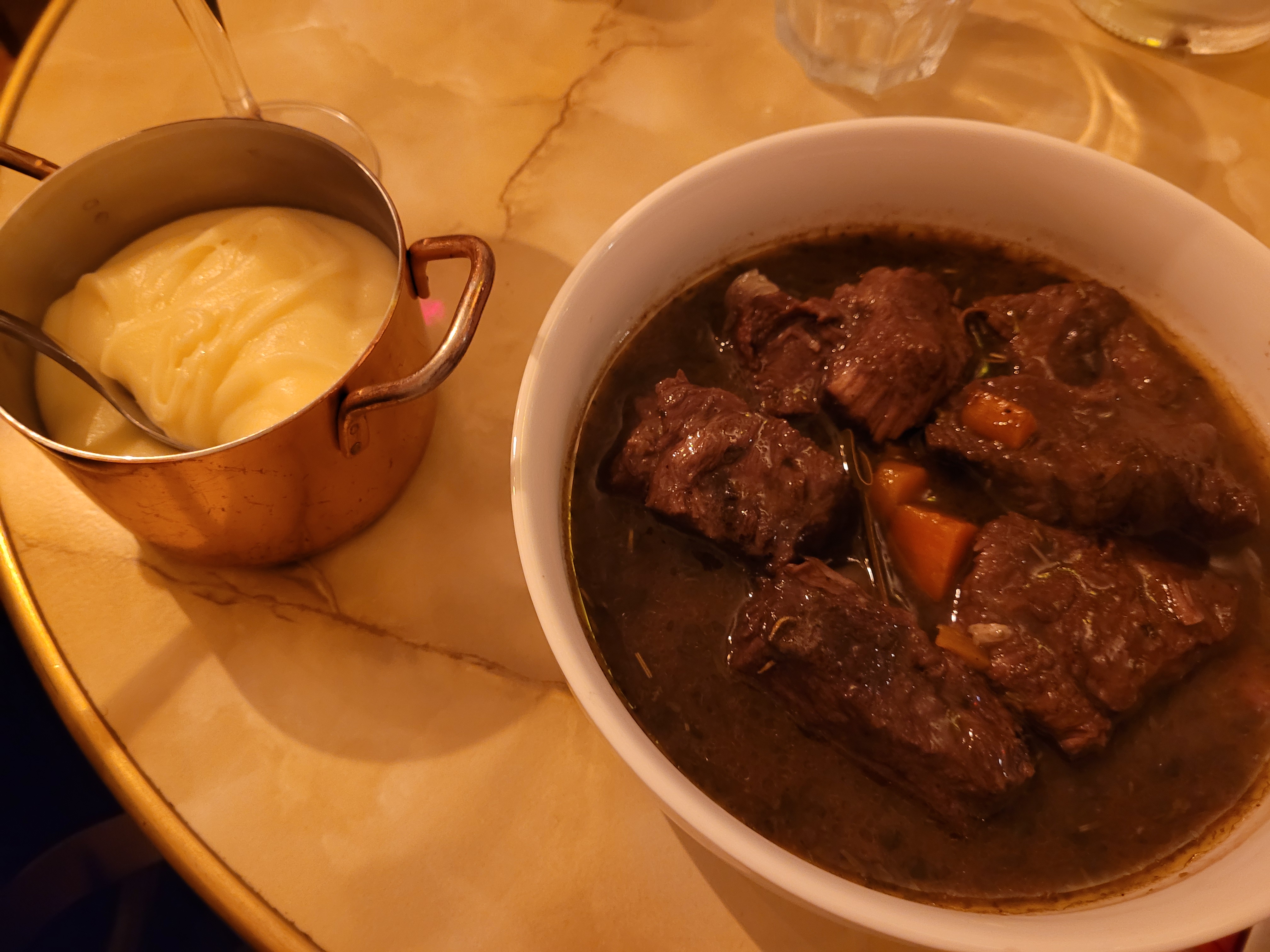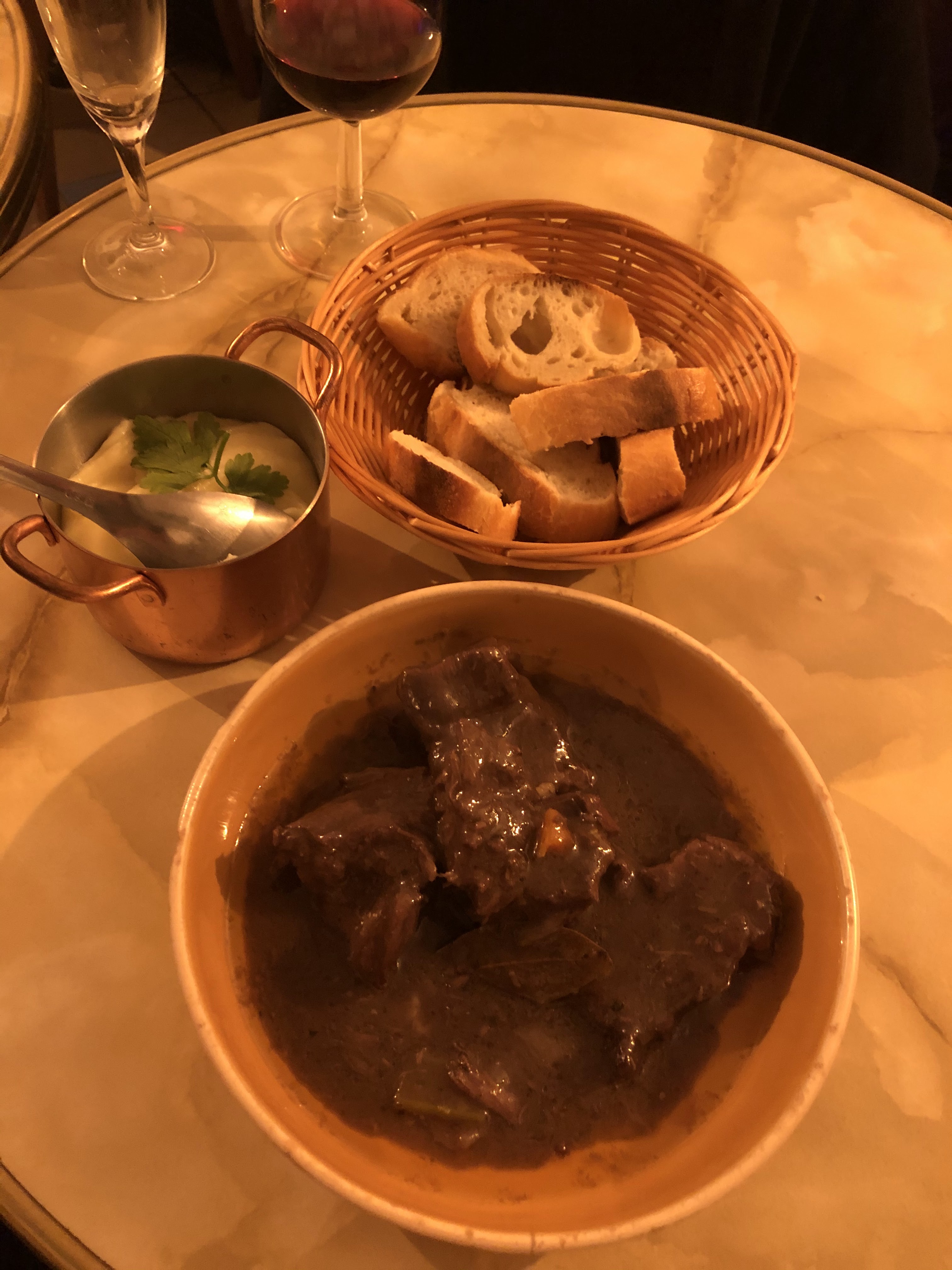Le meilleur bœuf bourguignon et la purée de pommes de terre la plus crémeuse et la plus fromagée de Paris. Je n'ai jamais eu de purée pareille, presque une consistance semblable à celle d'une fondue