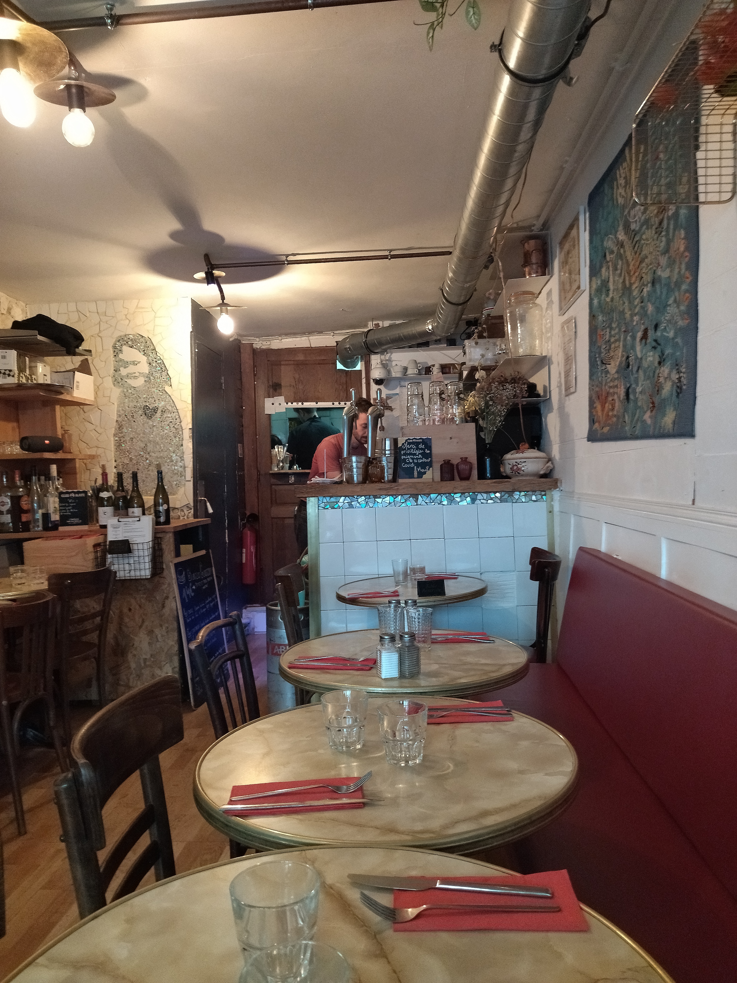 Réservation faite depuis 1 semaine et nous n’avons pas trouvé de table pour le nombre de personnes à notre arrivée. Certes petit et atypique mais Décevant quand même et du coup nous sommes repartis