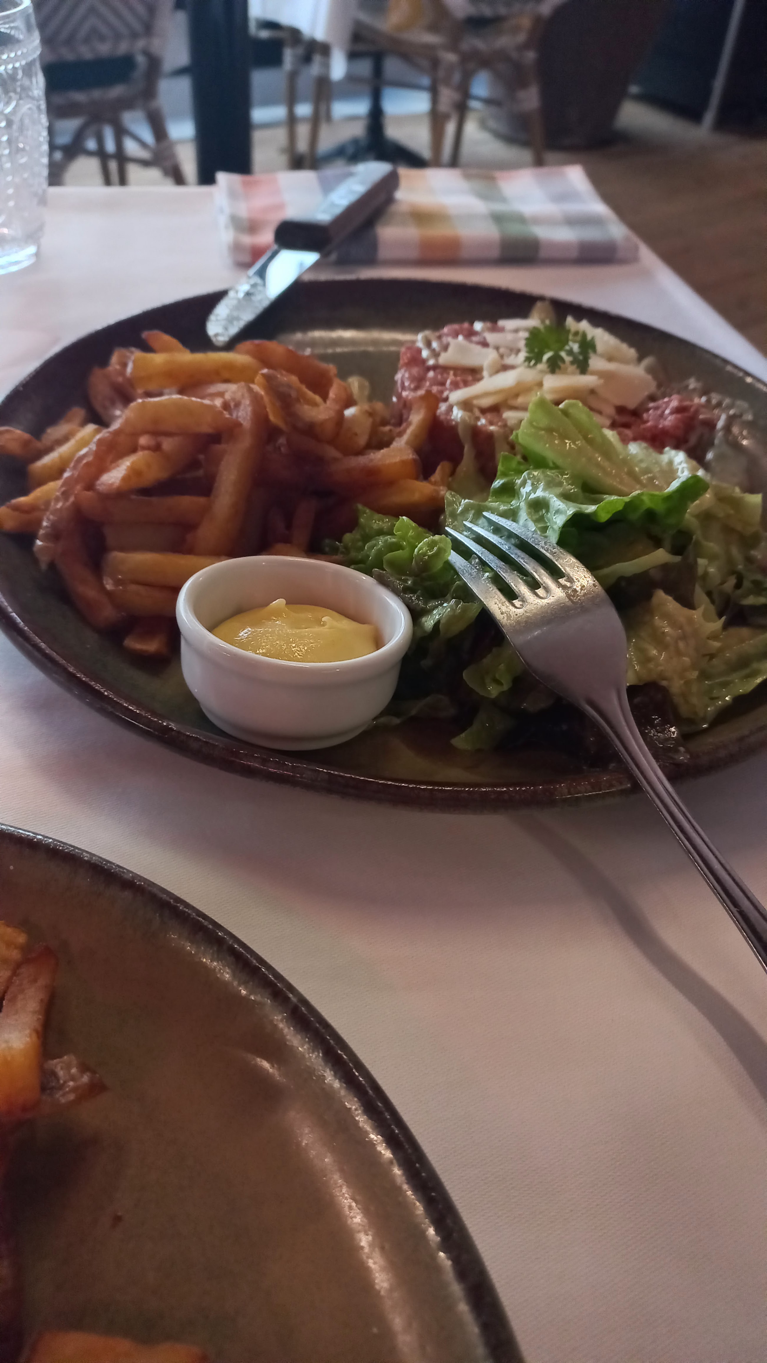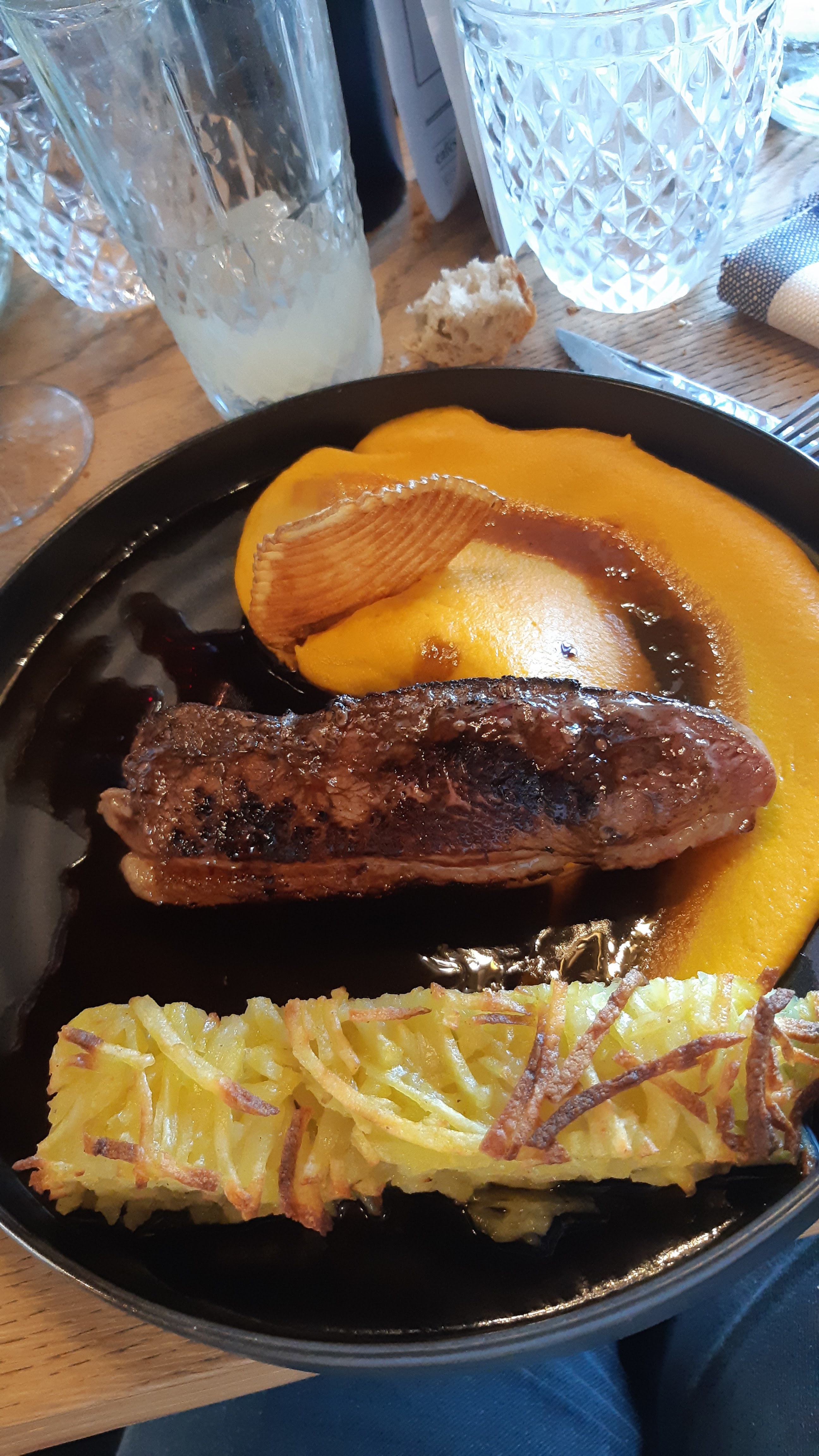Joli établissement, cadre sympathique, personnel agréable, nous avons mangé correctement, peut-être un peu onéreux de mon point de vue au niveau des vins et des desserts. Il n’est pas exclu que nous n’y reviendrons pas un jour, il fait partie de ces rares établissements qui ne ferment pas à 21h30 un samedi soir 🙄