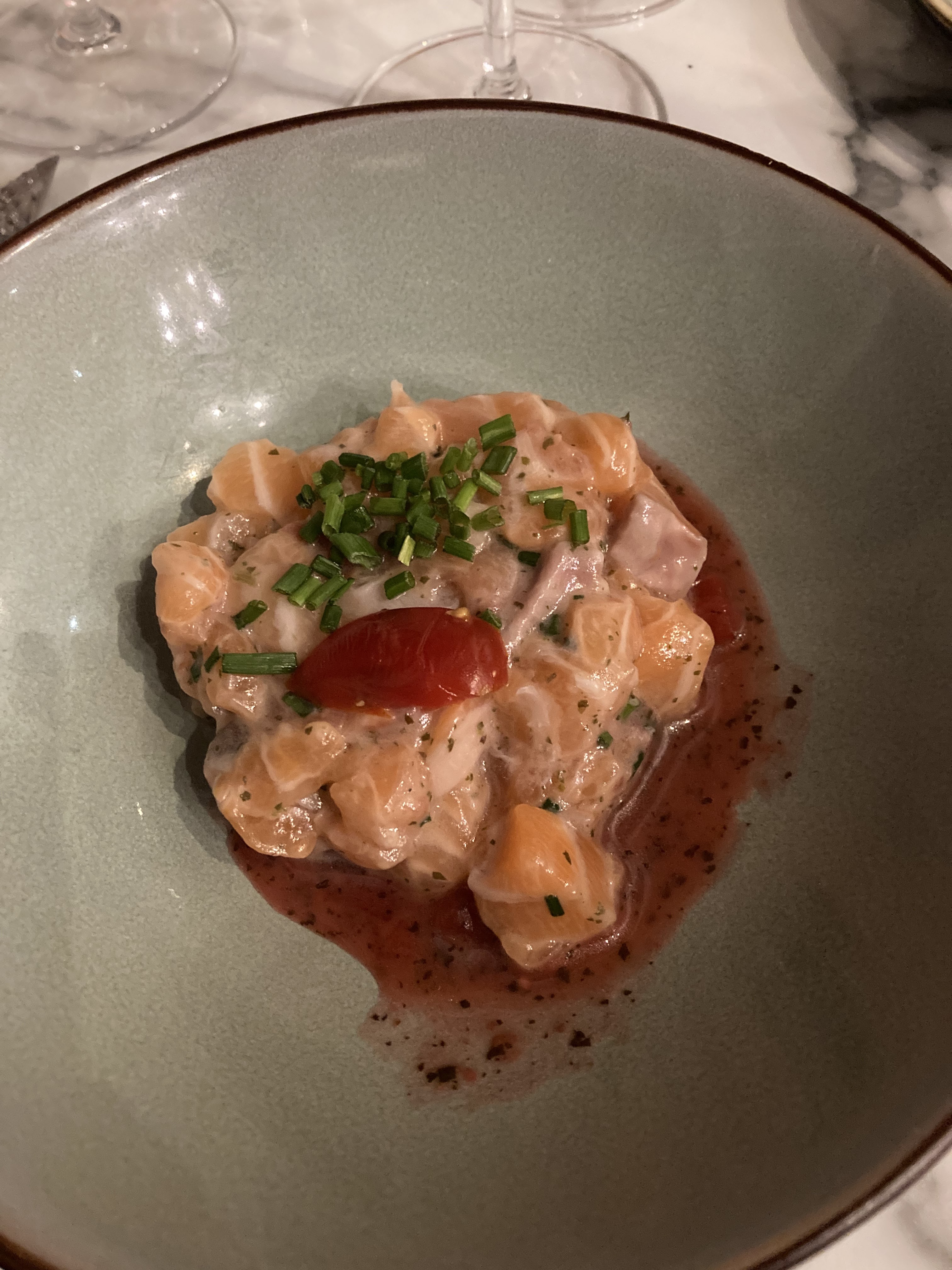 Déçue... 25€ pour une planche apéritive à partager avec des carottes, des radis, 1 tranche de wrap et une rondelle de betterave ! Le tartare de saumon était bon mais rien d'exceptionnel. Je m'attendais vraiment à un autre niveau, surtout pour le prix et la réputation. Dommage 😞