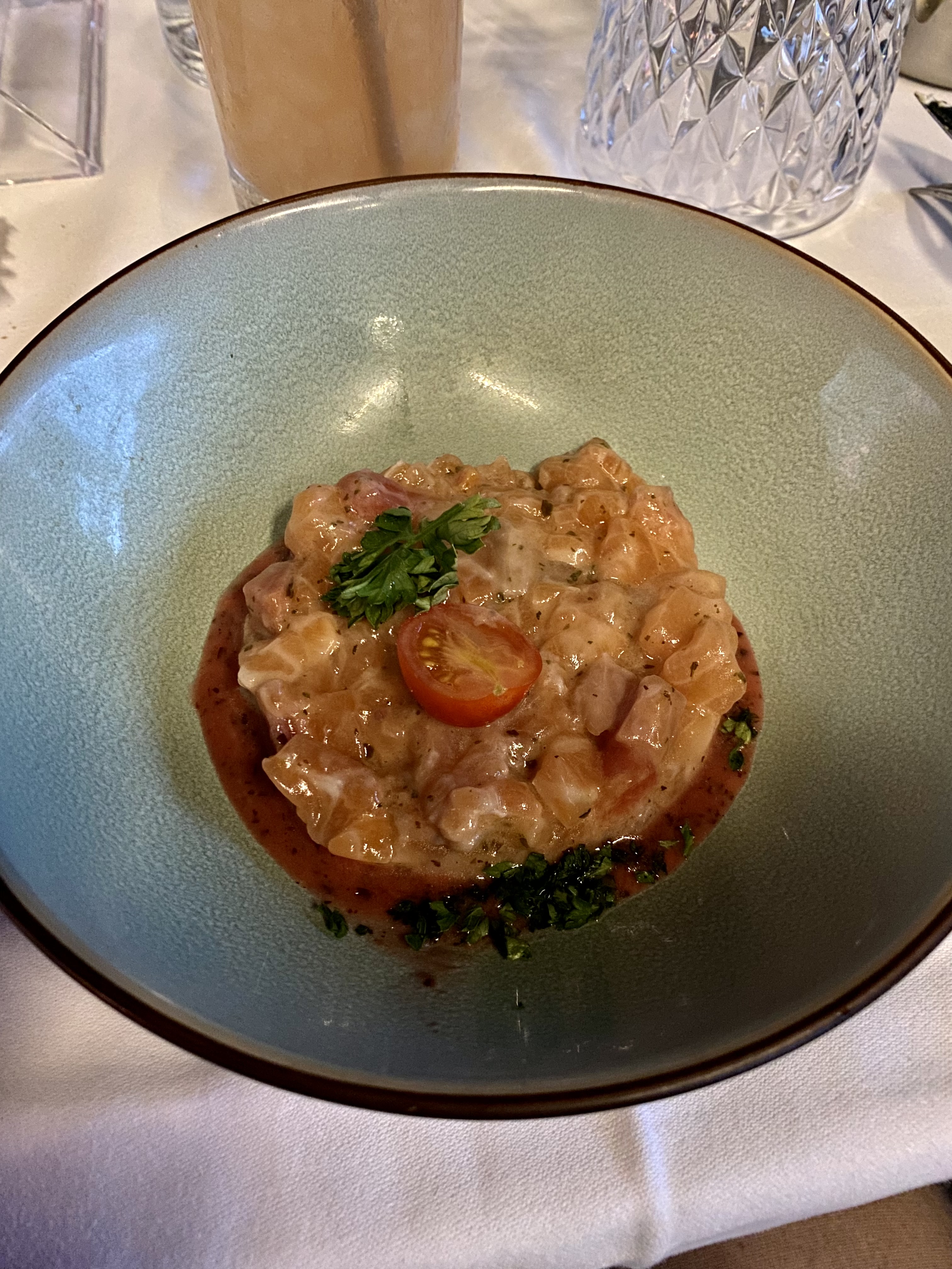 Le lieu, l'ambiance et le service sont superbes. Le personnel est à votre écoute et bienveillant. Cependant, un petit bémol sur les plats. Ils sont très bien présentés mais cela manque un peu de saveur. Pour ma part j'avais pris un tartare de thon et mon mari un tartare de bœuf. C'était frais mais il manquait les épices.