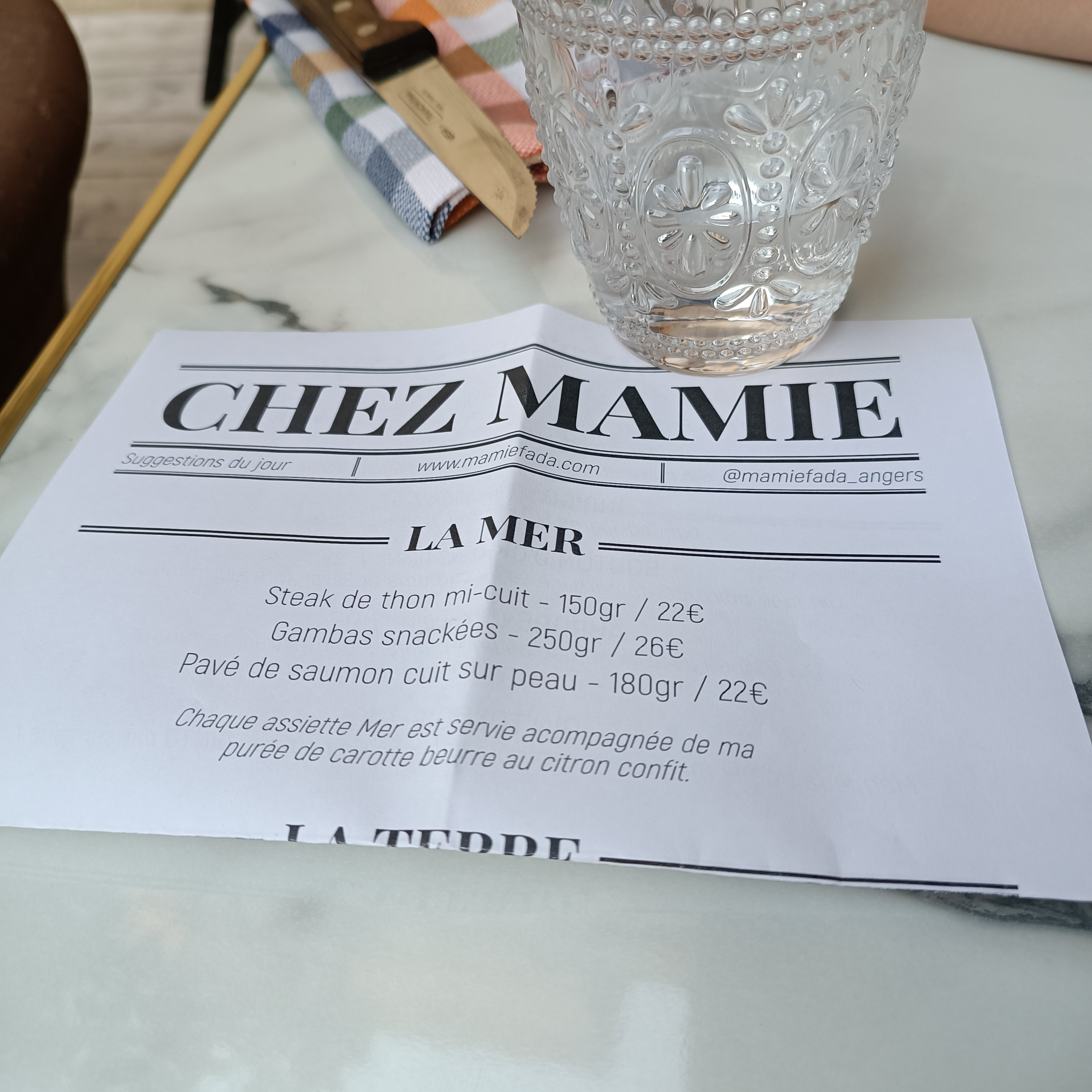 Très beau restaurant en bord de Maine face au château et à la cathédrale, le cadre est vraiment top ! Et à l’intérieur l’ambiance y est chaleureuse avec une magnifique déco et des fauteuils très confortables. Bravo pour cette splendide rénovation ! 👏🏼 Par contre à l’étage les tables sont trop serrées, difficulté pour passer entre certaines tables, ça manque un peu d’espace, je sais que ce restaurant connaît un grand succès et que malheureusement on ne peut pas pousser les murs, mais nous avions l’impression que les gens juste derrière nous faisaient partie de nos discussions, alors que notre table était collée à la fenêtre et que nous avions le nez dans les rideaux 😅c’était un peu gênant parfois et la salle peut vite devenir bruyante. Cela ne nous a pas empêché de savourer notre repas bistronomique, j’ai pris les ravioles à la truffe, succulentes ! 😋 Ainsi que le thé gourmand en dessert avec la crème brûlée à la Menthe Pastille, surprenant mais délicieux. Les prix sont assez élevés mais ce restaurant est de haute qualité et les chèques vacances sont acceptés 😁 Bien penser à réserver en ligne surtout et les confirmations et rappels par Sms sont une très bonne idée ! Merci Mamie pour ton accueil, celui de tes petits fils tous aussi gentils et qui sont très professionnels, rapides, efficaces, attentionnés… 😉
