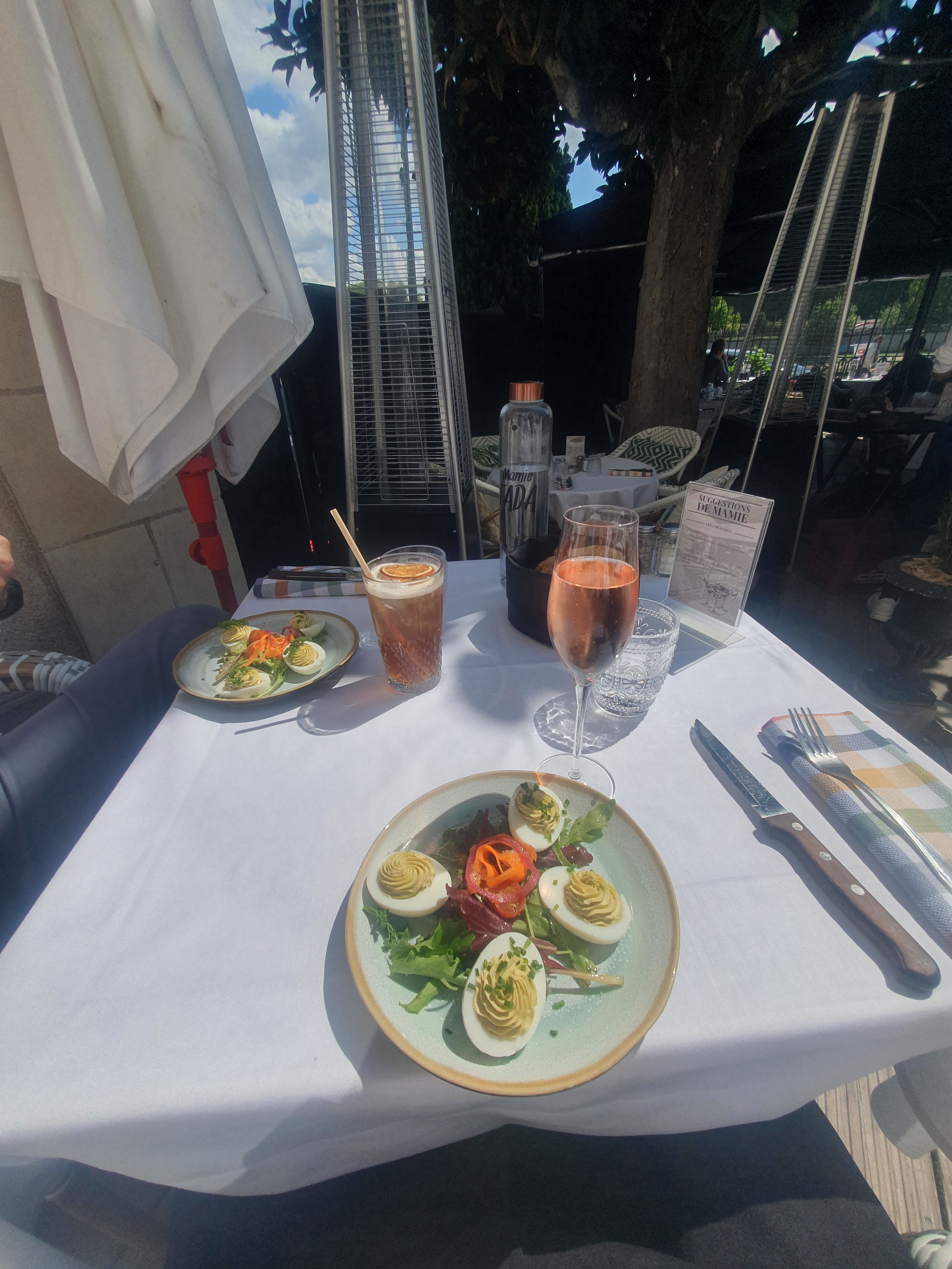 Une agréable terrasse, idéalement située face à la cathédrale et le château. Service très attentionné. Une entrecôte/frites (maison) à 33€ assez quelconque. Un plateau à partager pas si mal, dont de très bons rillauds en tempura. Desserts de qualité. Deux plats, deux desserts, deux cocktails environ 95€. L'ambiance est agréable, belle carte de cocktail. La réservation en ligne est possible sur le site. Je ne suis pas conquis, j'y retournerai pour des plats plus élaborés et me faire un avis plus précis.