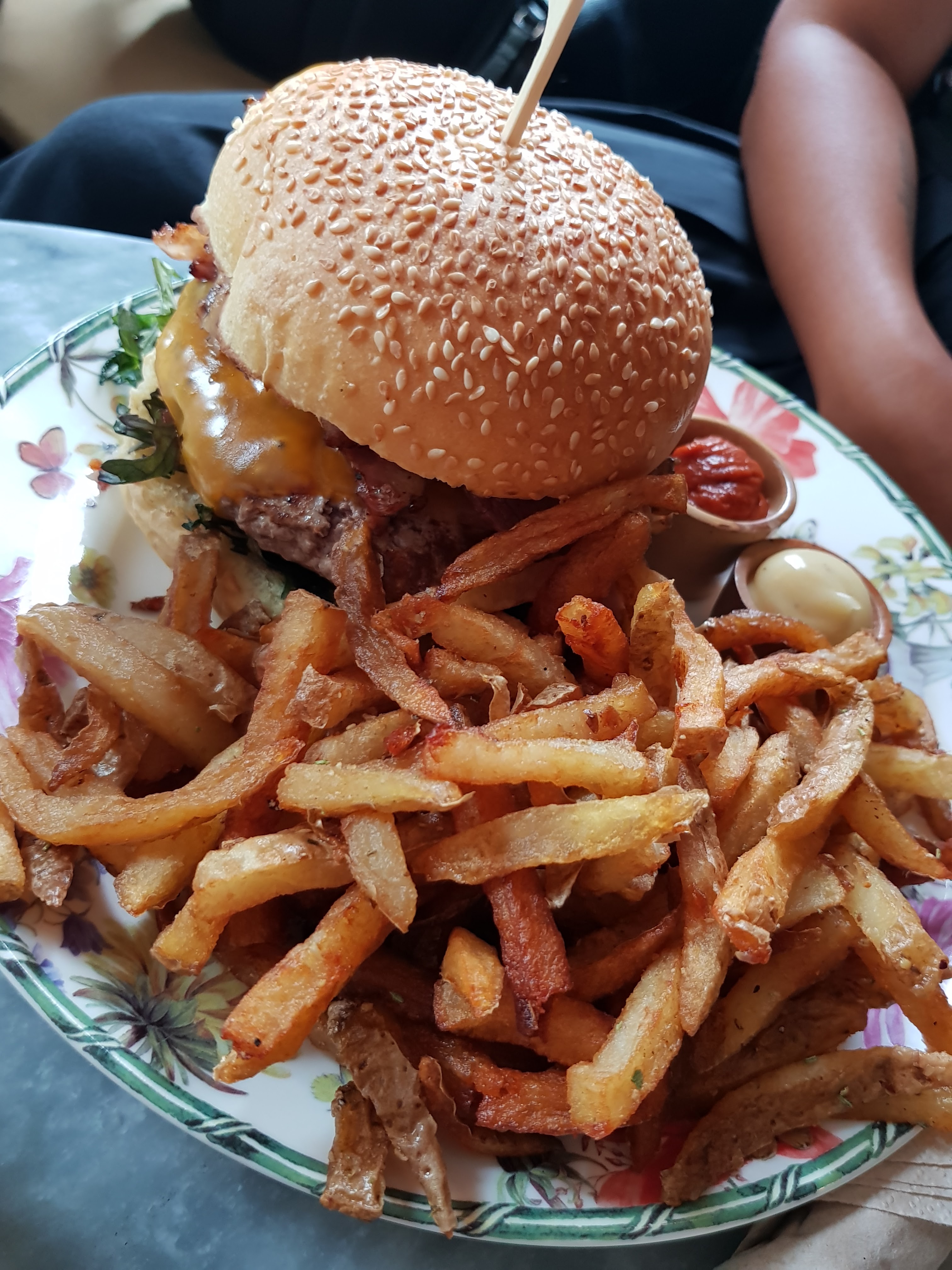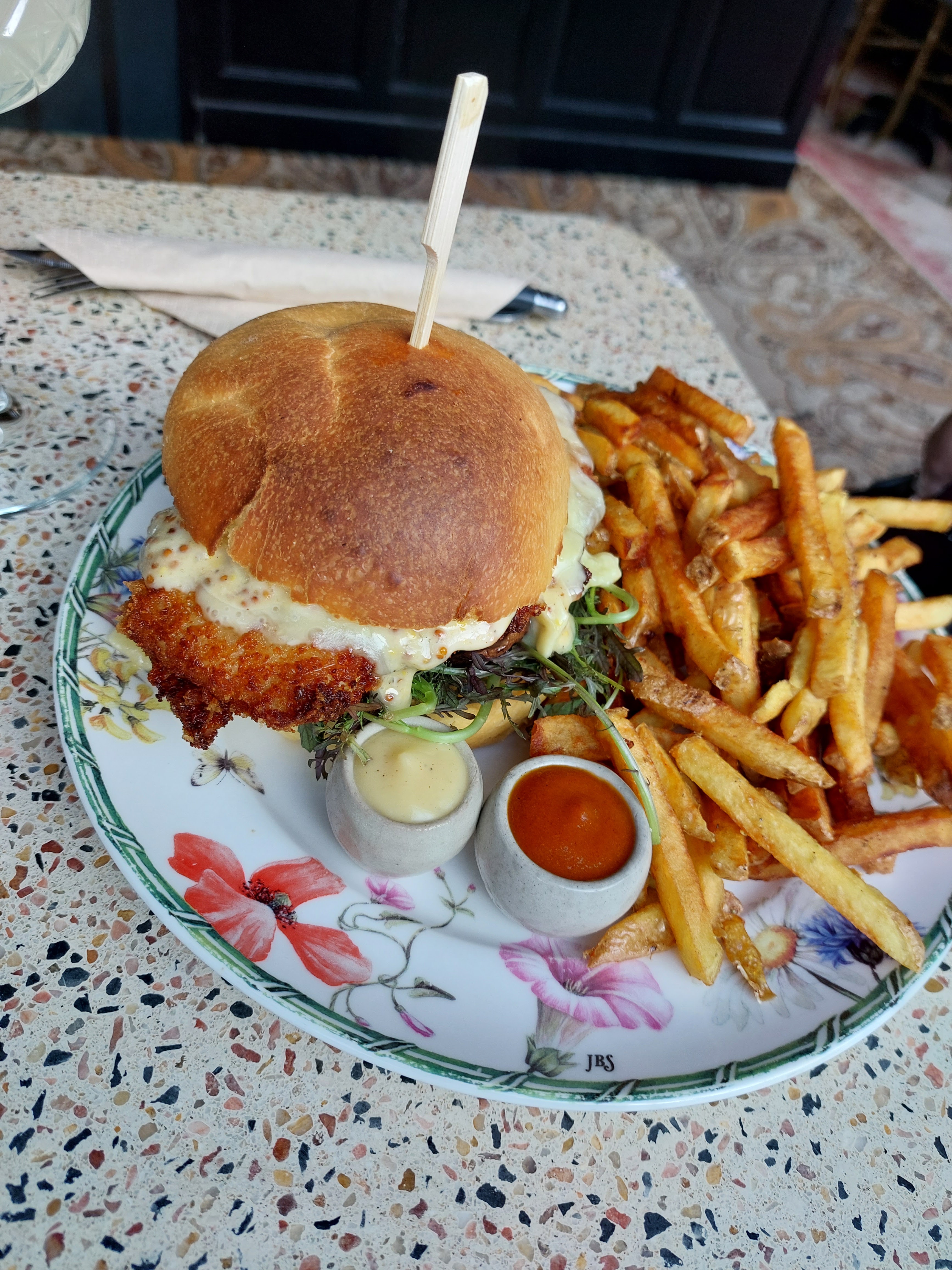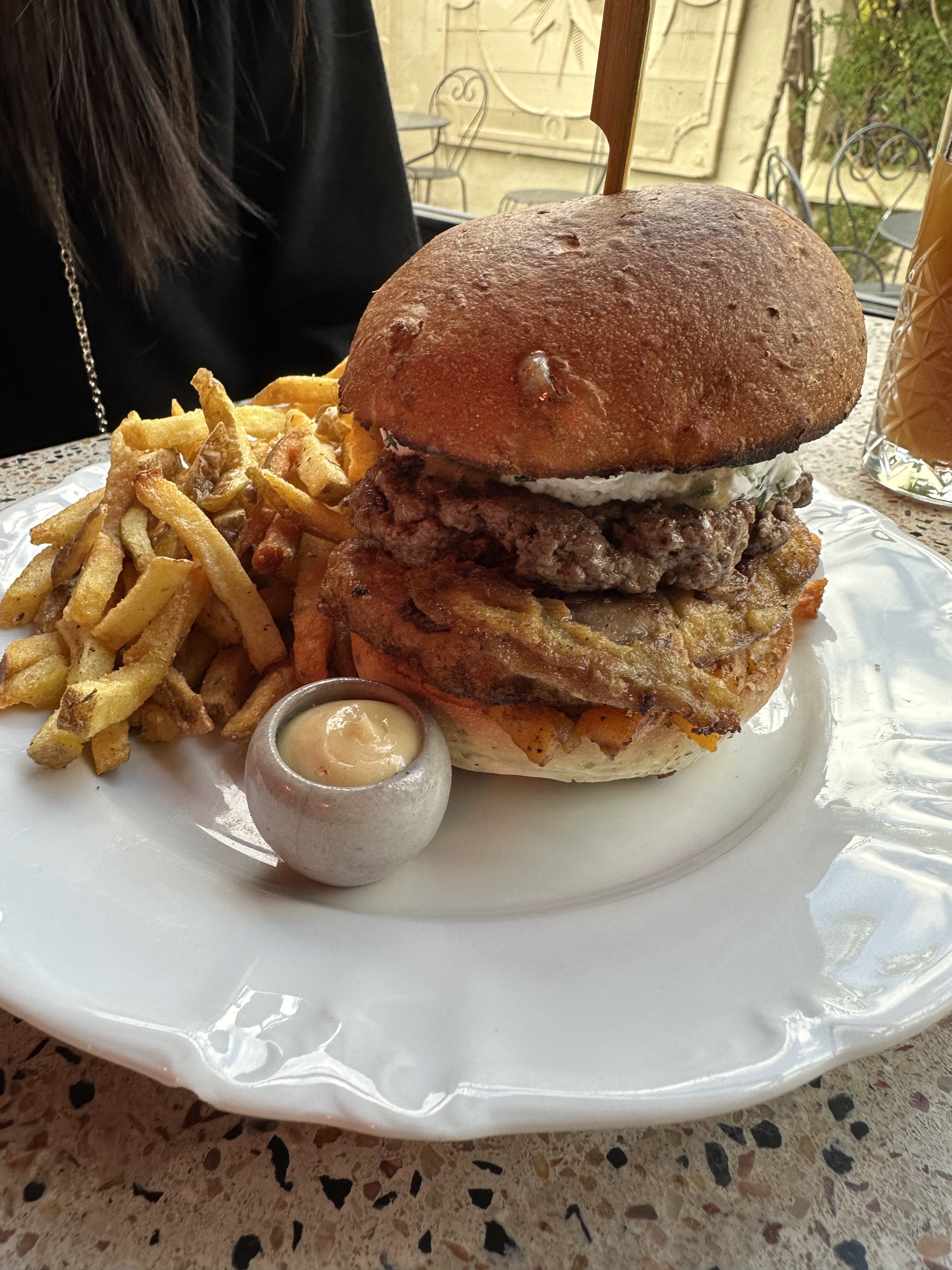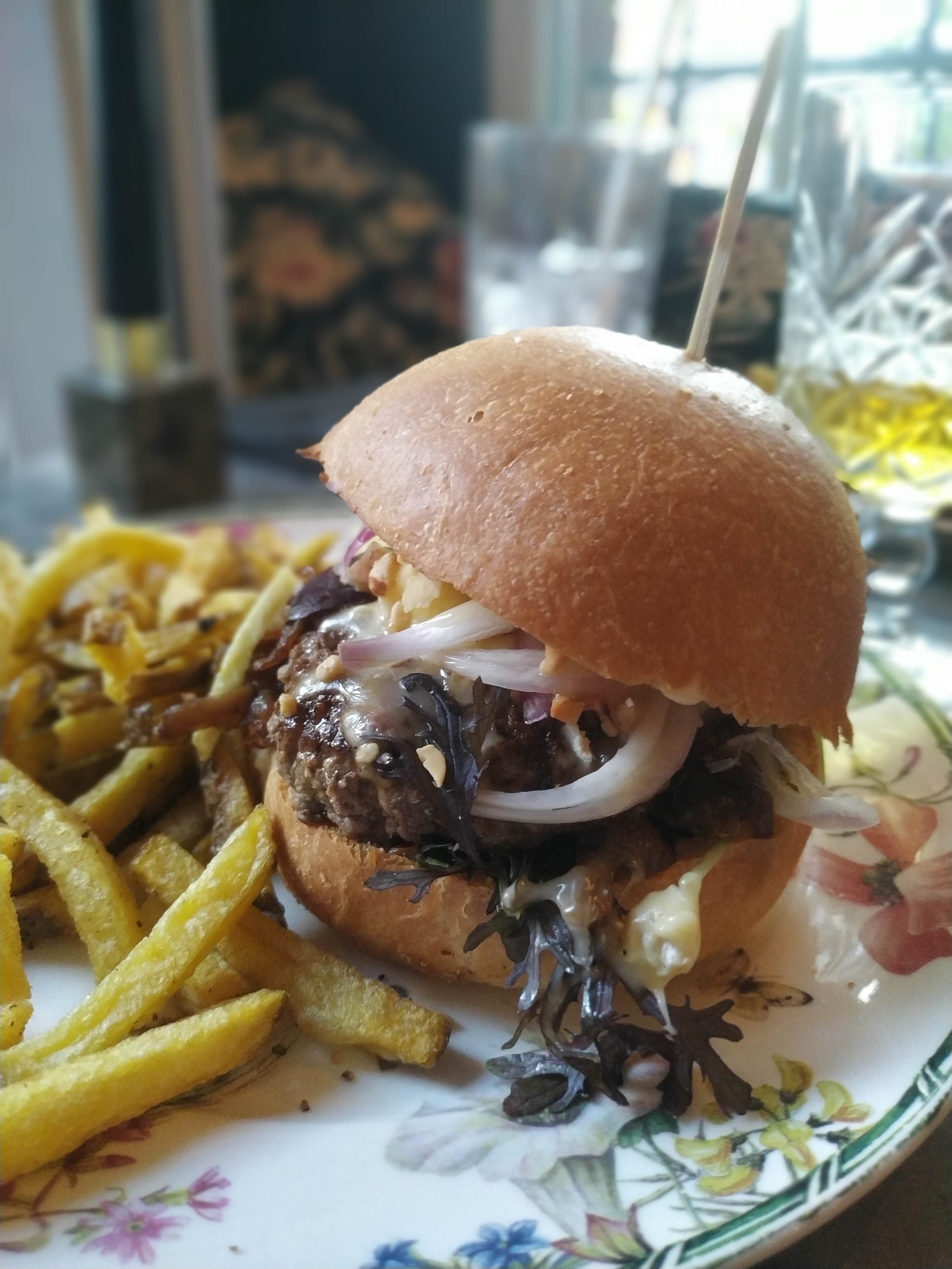 Quelle belle découverte, un endroit avec un très beau cachet, nous avons déjeuné dans un petit jardin verdoyant charmant. Du personnel agréable et à l écoute et des burgers originaux et succulents 😍