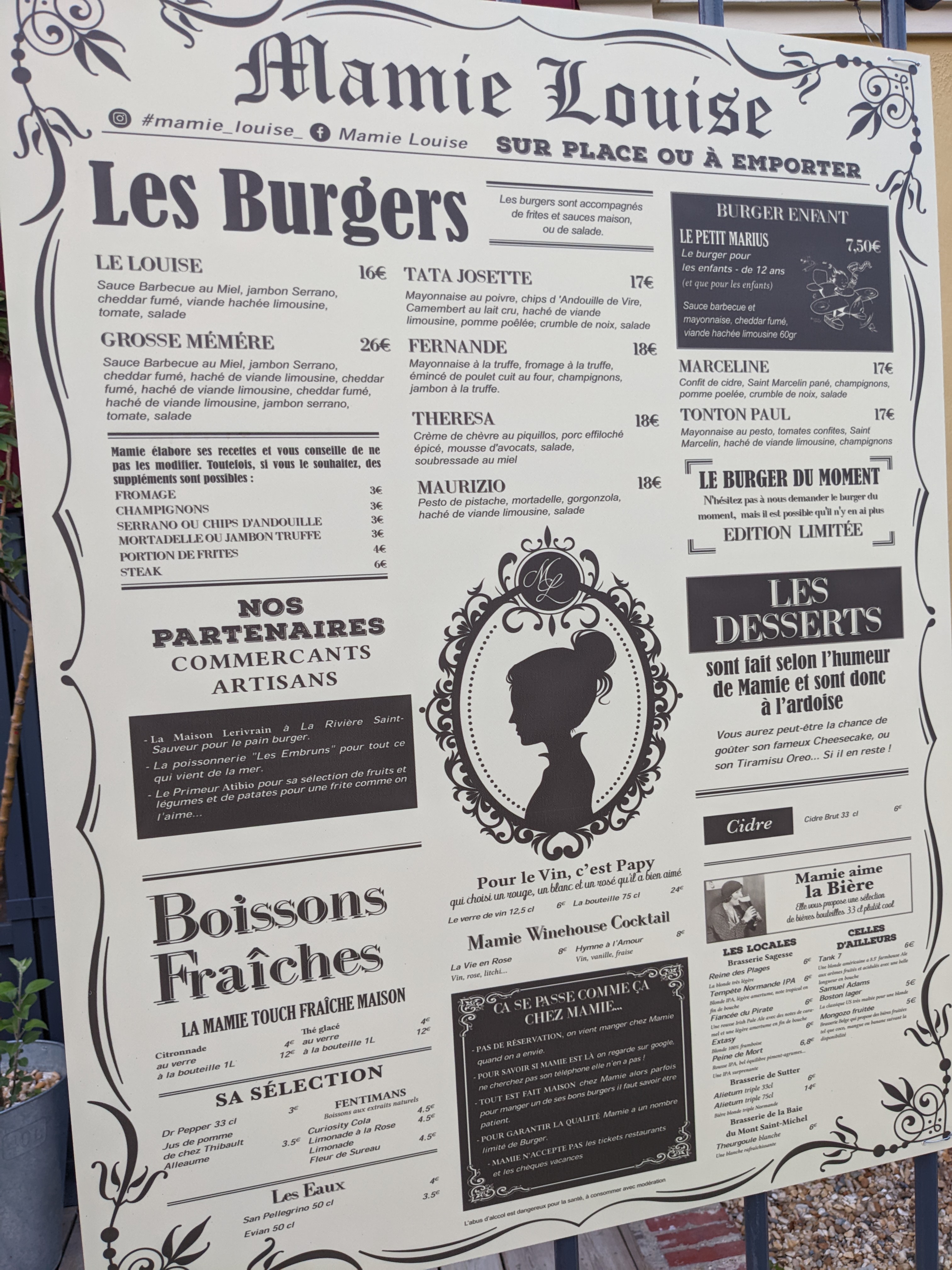 Je recommande fortement. 3ème année de passage dans le coin, nous marquons un passage obligé à chaque fois par Mamie Louise. Jamais déçu : burgers délicieux, carte renouvellée régulièrement, produits de qualité font apprécier ce moment de repas.