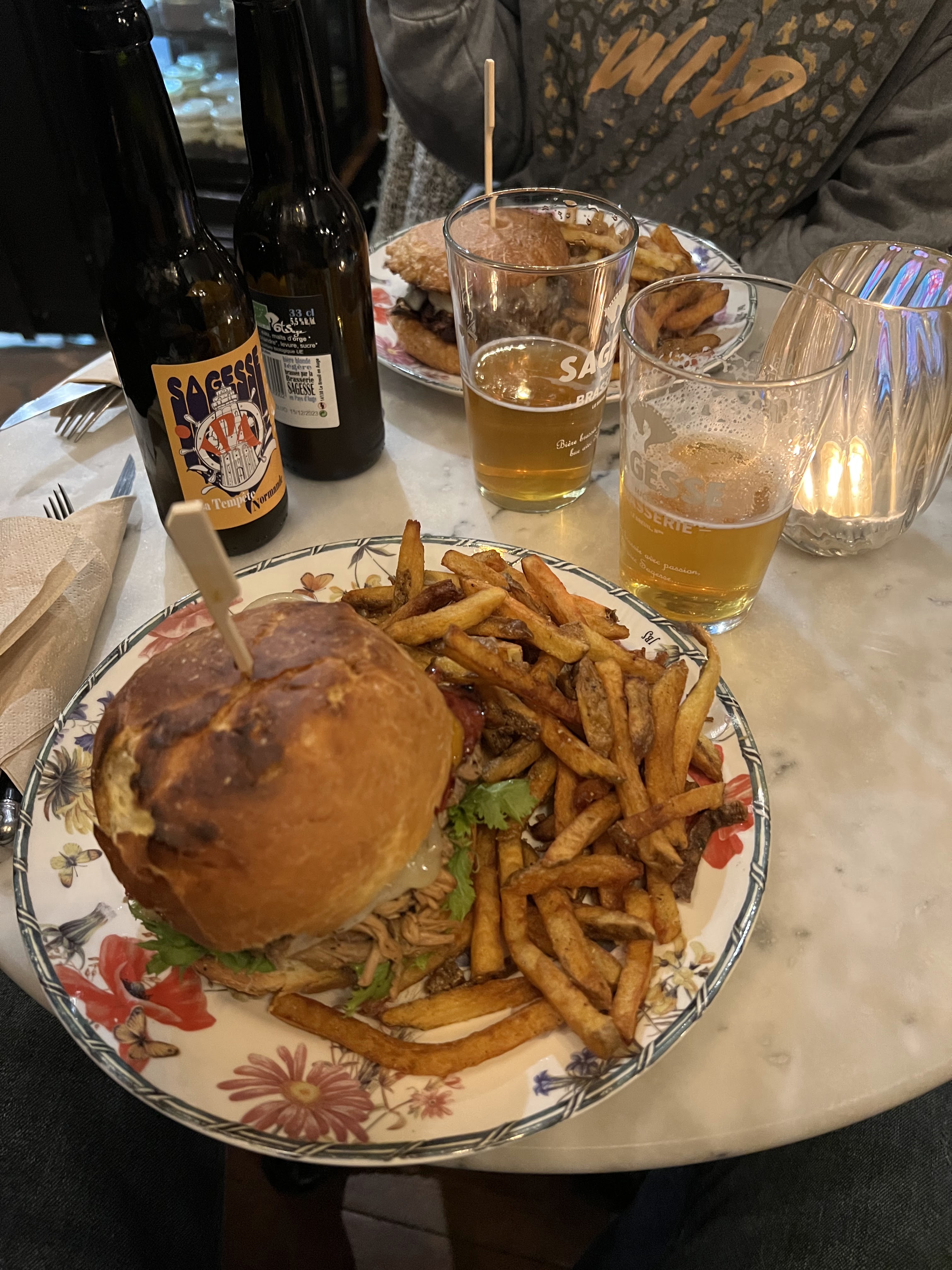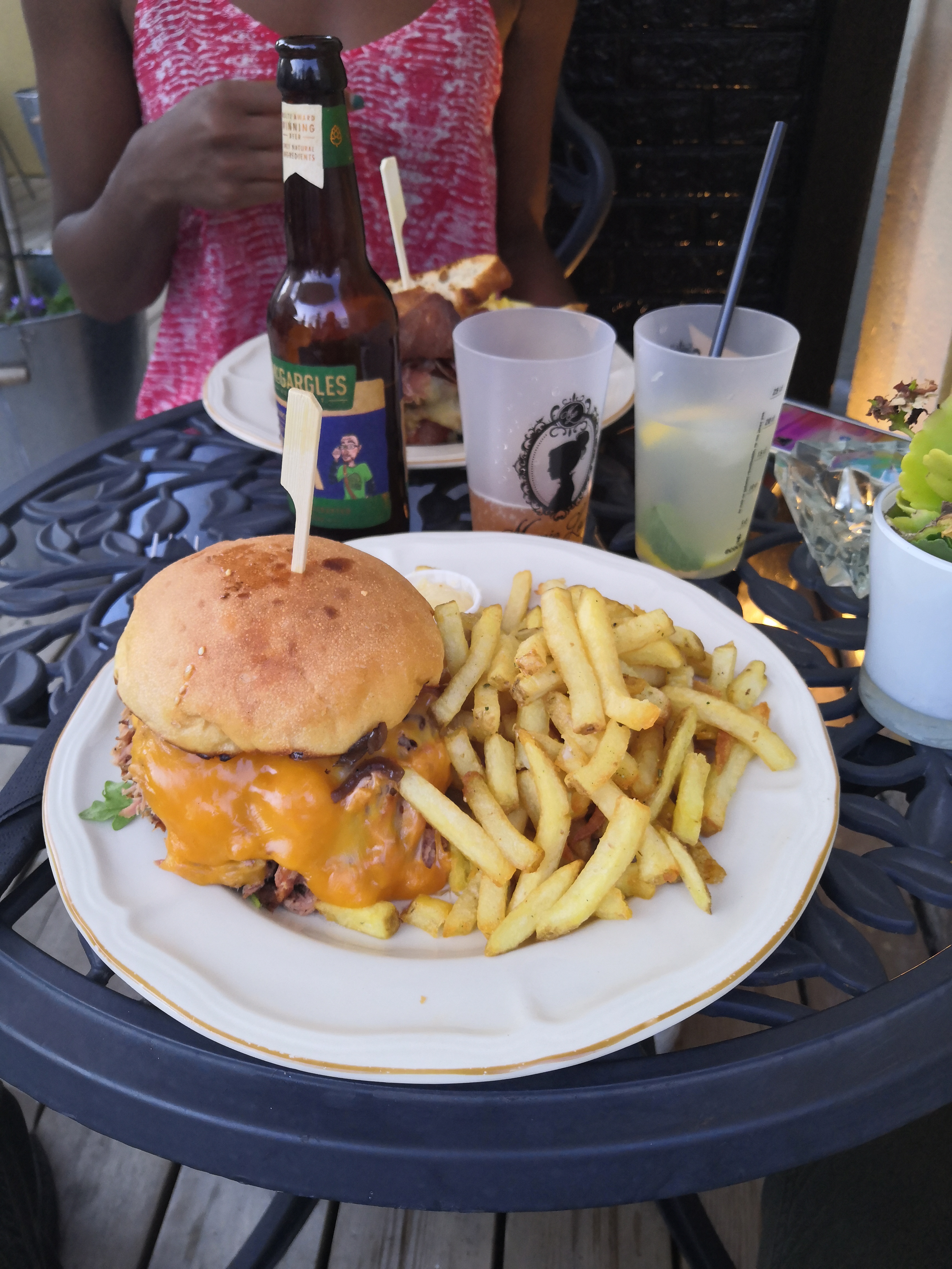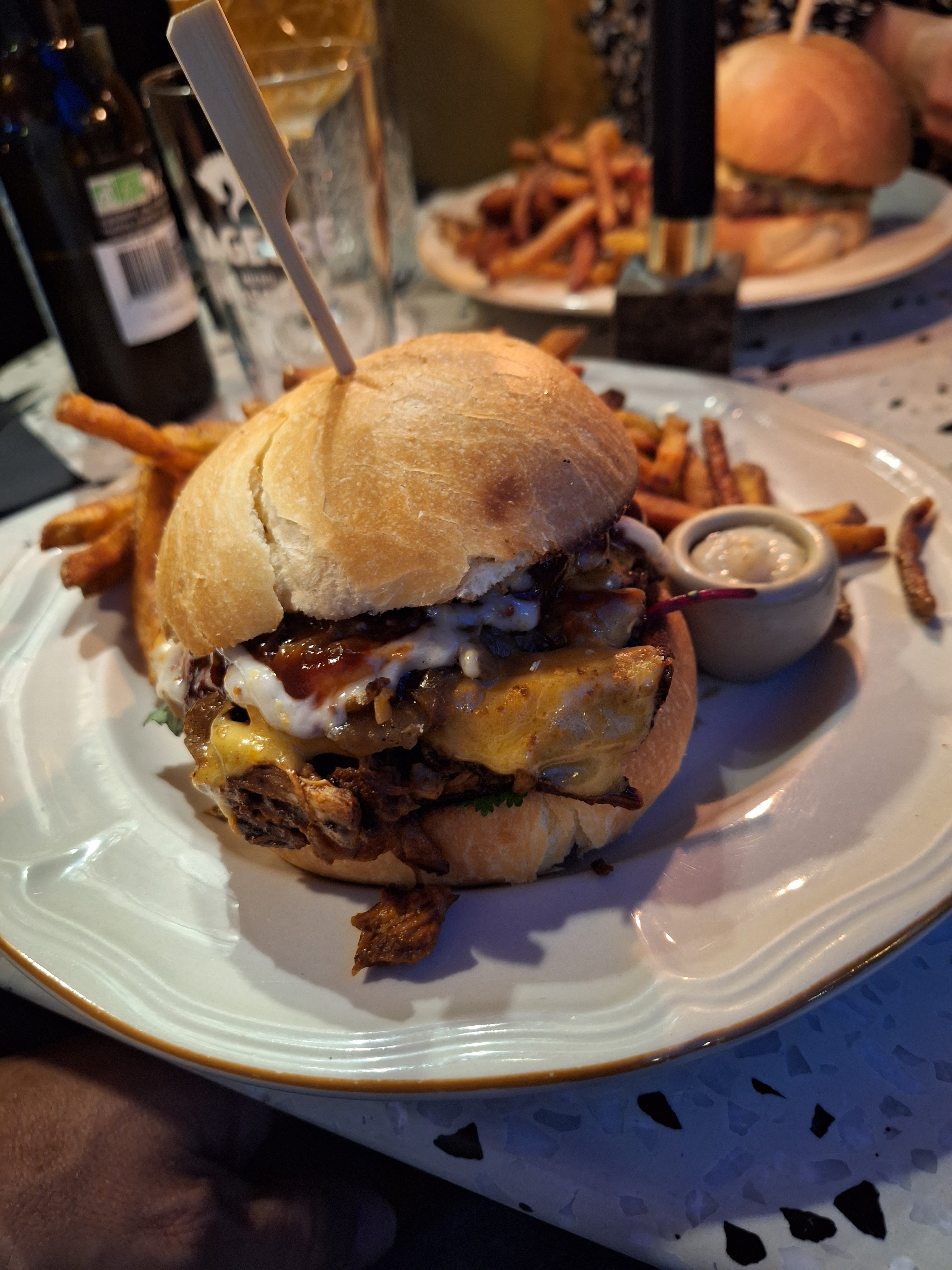 Repas samedi 13 mai 2023. Arrivés à 19h15, le serveur nous a très gentiment laissé prendre l’apéro à l’extérieur, pour profiter du soleil, avant de nous installer à l’intérieur. Le service fut de qualité et les burgers divinement bons (le gros pépère m’a cependant mis à terre par une quantité monstrueuse) au même titre que les cocktails de l’apéro. Le décor était atypique et le digestif de fin de repas une très bonne découverte. Nous avons passé un excellent moment et comptons revenir au plus vite.