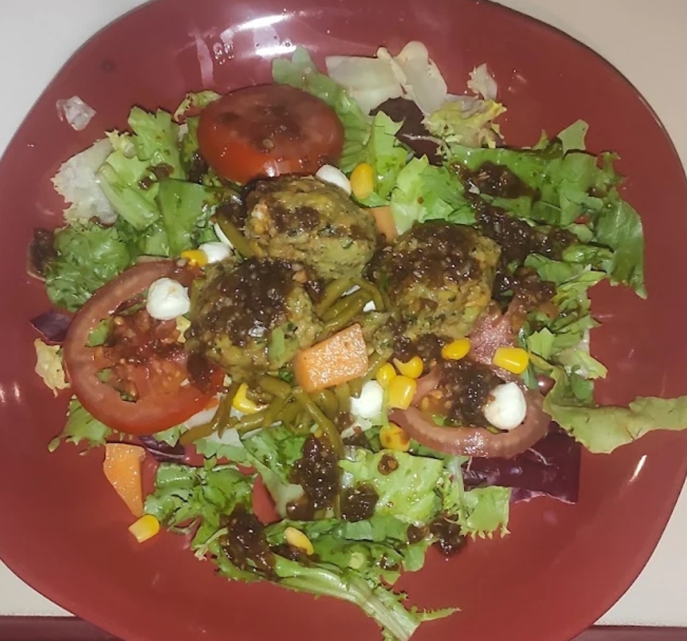 Les plats végétariens sont délicieux, surtout mes falafels faites maison. Un bon moment sympa avec des gens souriants au soleil