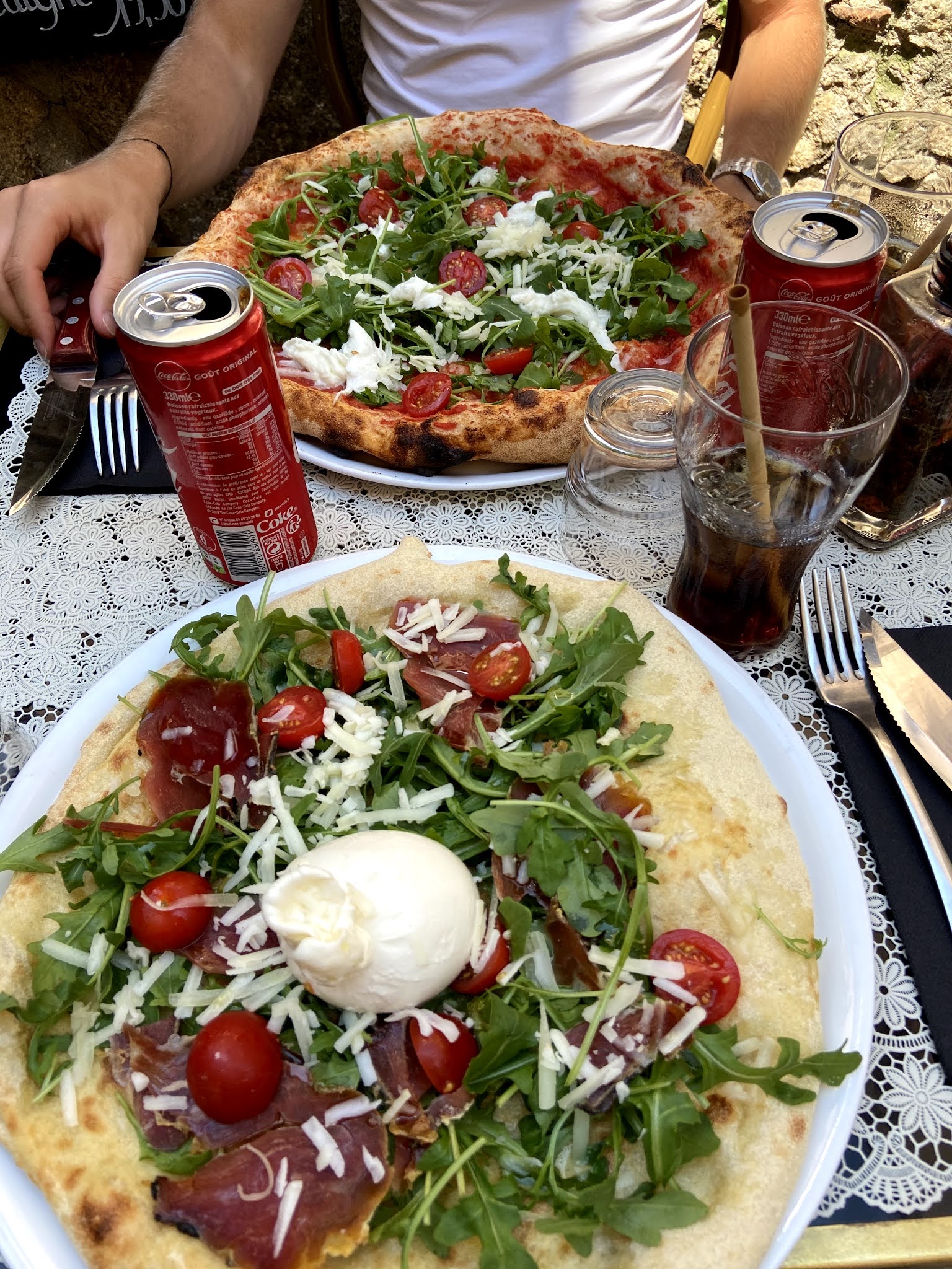 Bon petit restaurant ombragé avec pizzas aussi belles😍que bonnes 😋