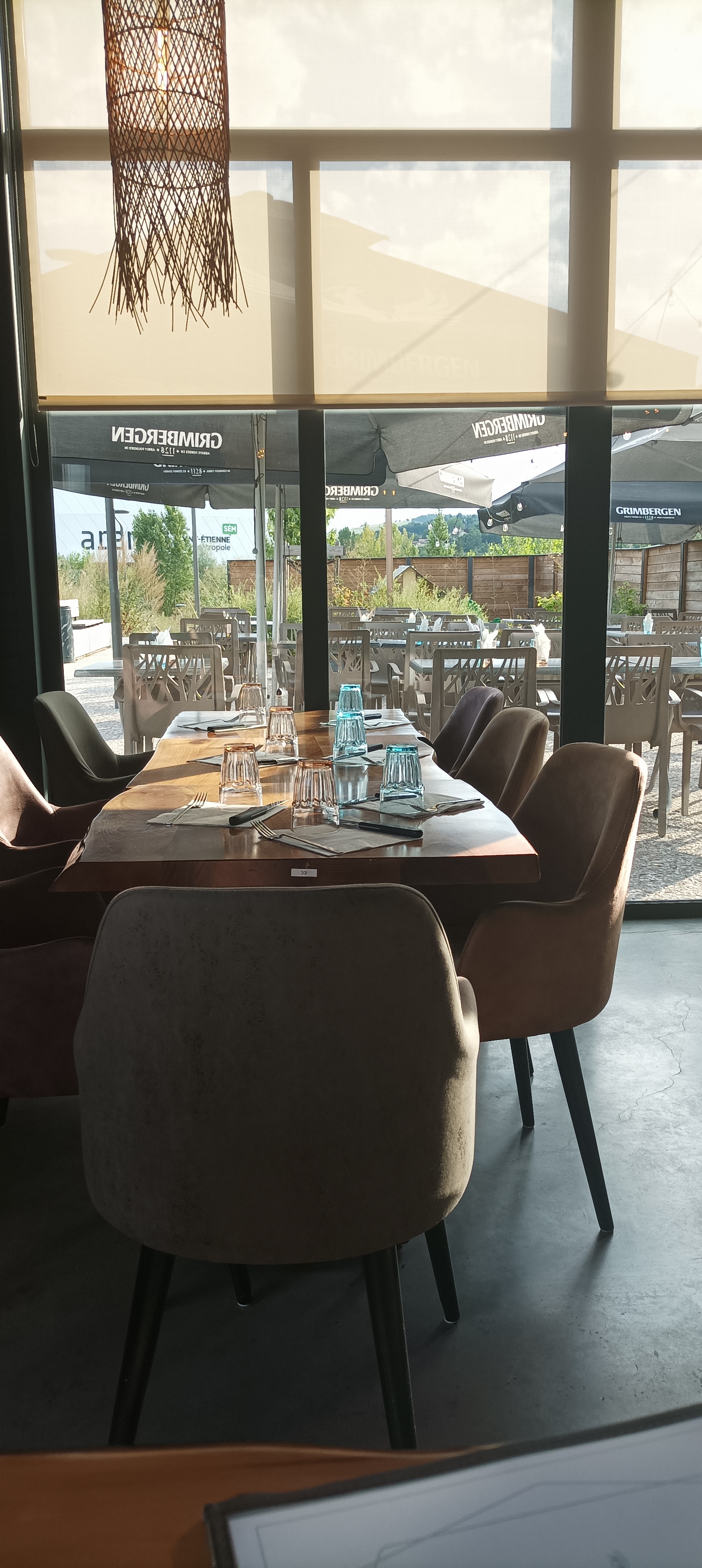 Belle salle de restaurant avec une terrasse. Situation parfaite à proximité de la future salle omnisports du Gier. Petit bémol sur le vin rosé arrivé très chaud , obligé de mettre un max de glaçons , c'est bien dommage de ne pas prévoir du rosé au frais surtout en cette période caniculaire. Pas de rince doigts apporté avec les moules, ni le pain. Erreur de 10 € sur la note finale constaté après notre départ, appel au responsable qui à été réparé en nous présentant ses excuses, ce qui nous a obligé de faire un aller/retour, voila la raison des 3*. Le service fut à la hauteur de nos attentes avec 3 jeunes fort sympathiques et souriant !