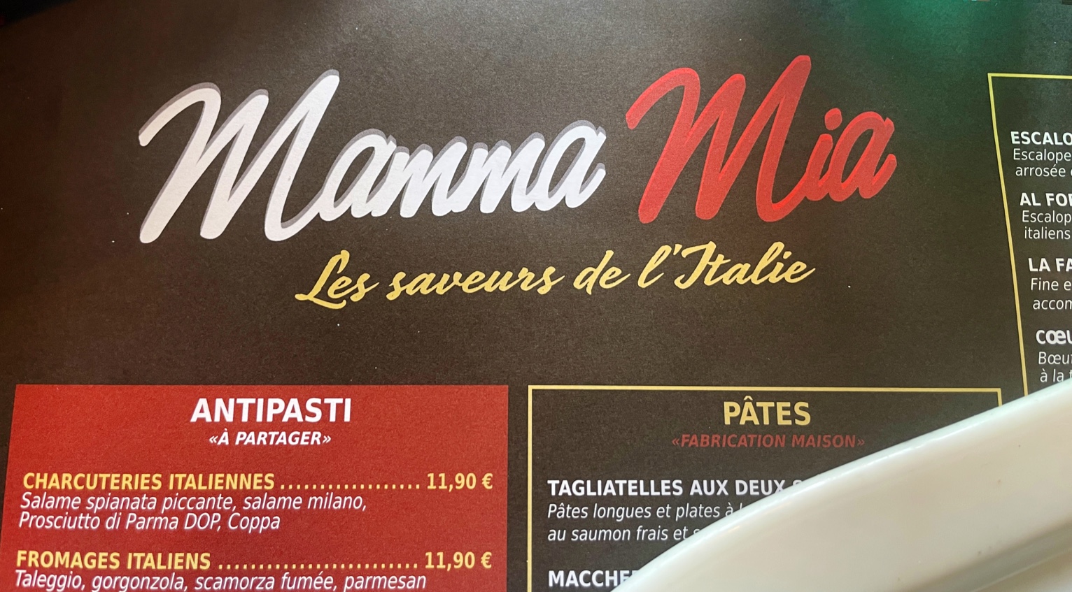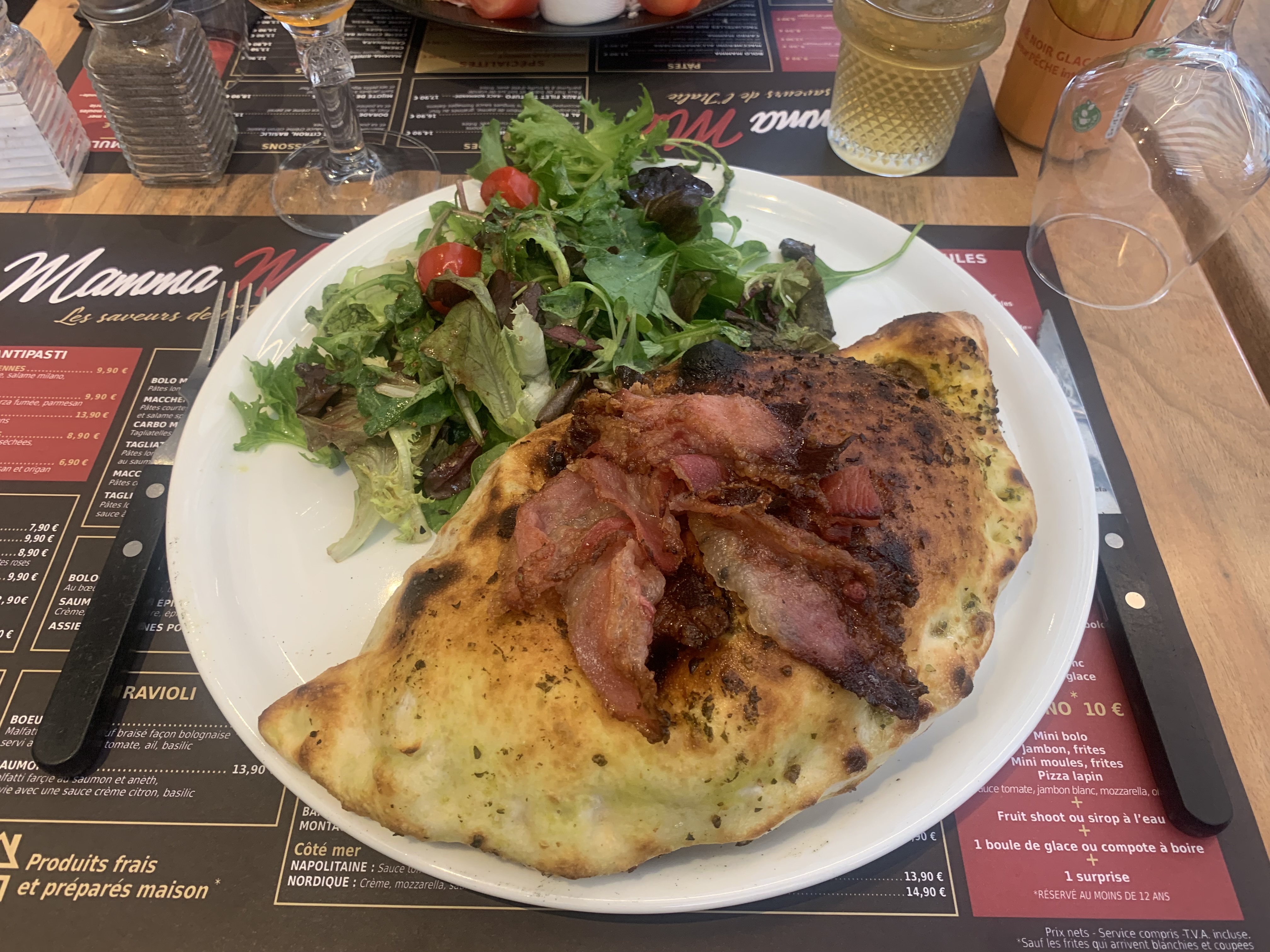 L’escalope milanaise était vraiment basique et loin d’une belle escalope milanaise italienne. La pizza était pas mal. Par contre les assiettes sont bien servies, et les prix sont raisonnables.