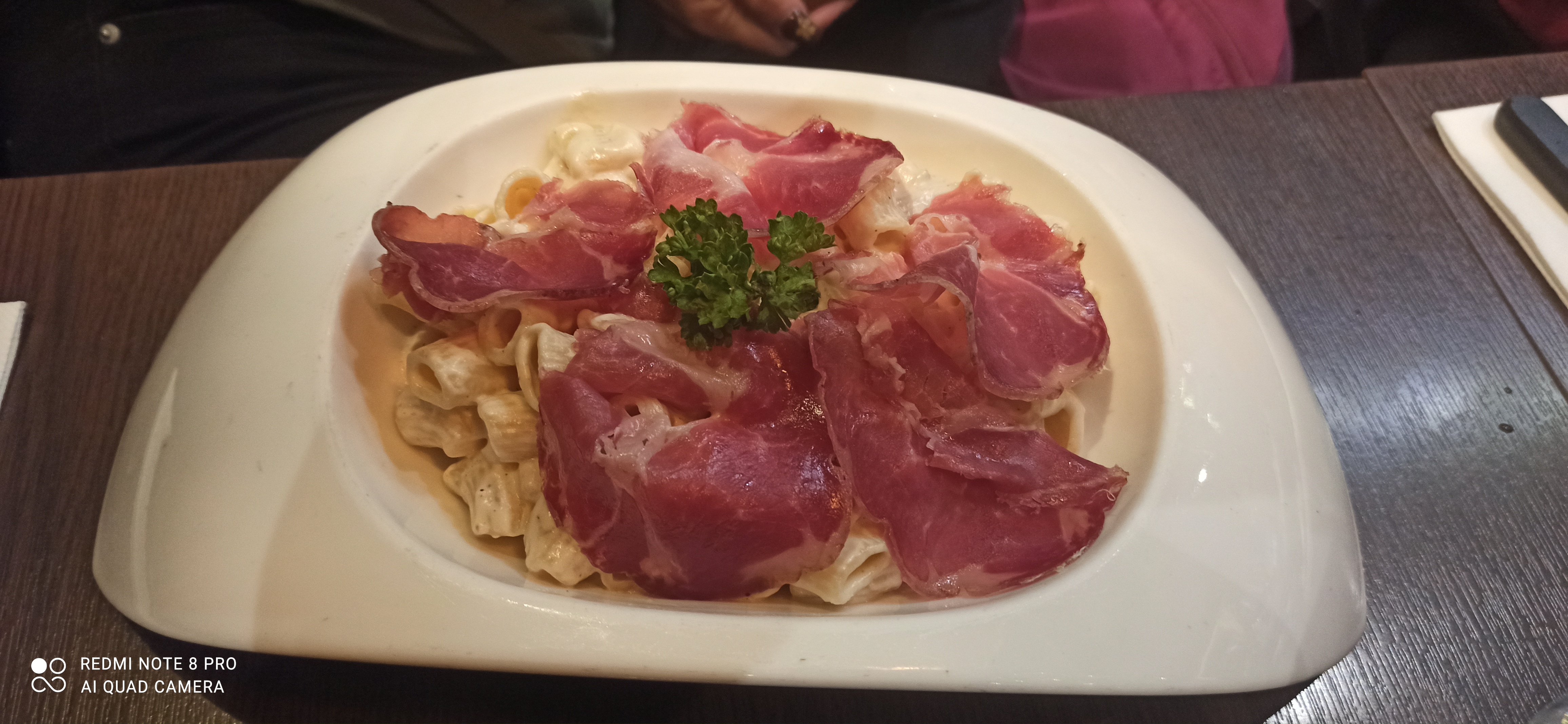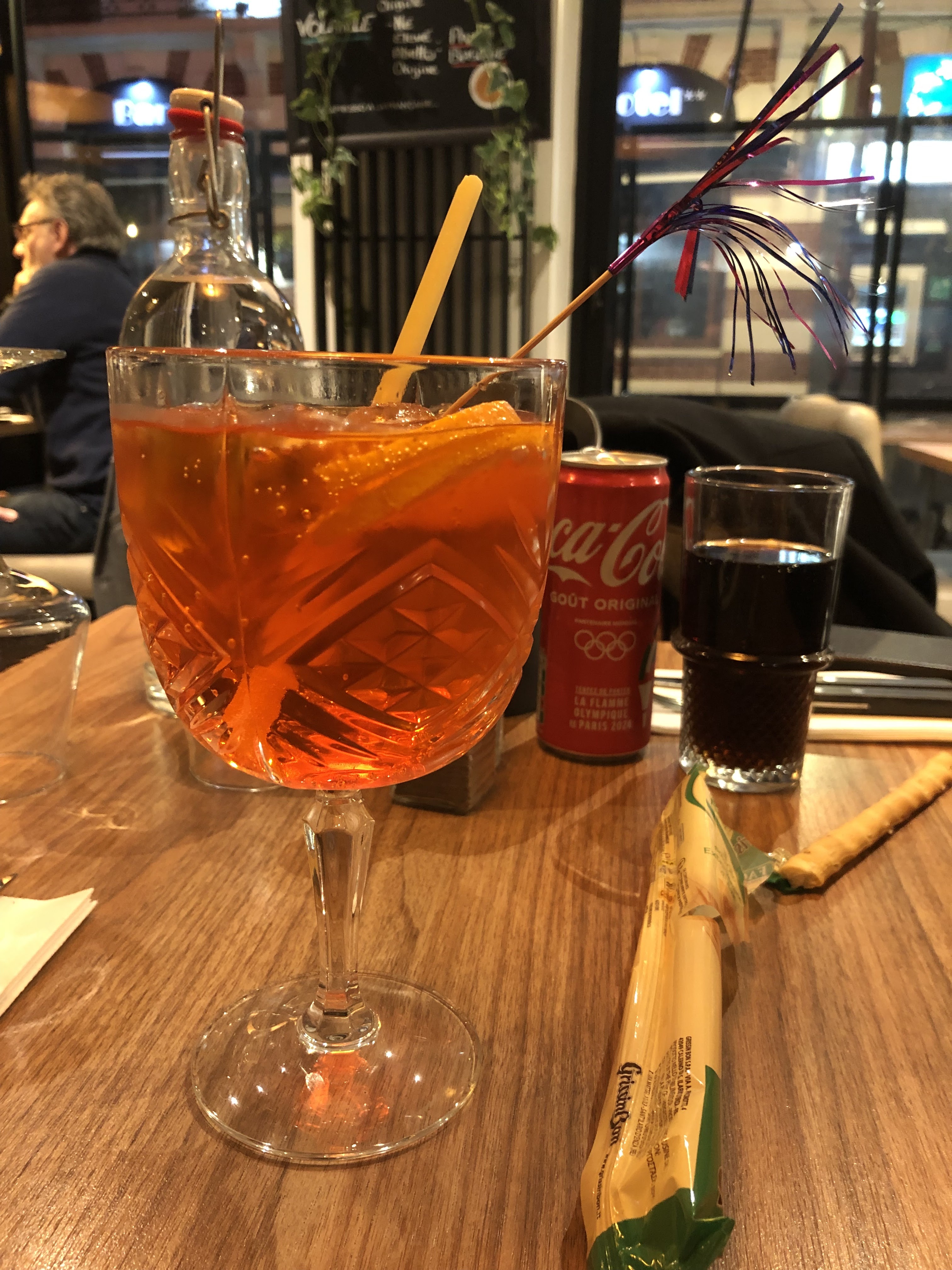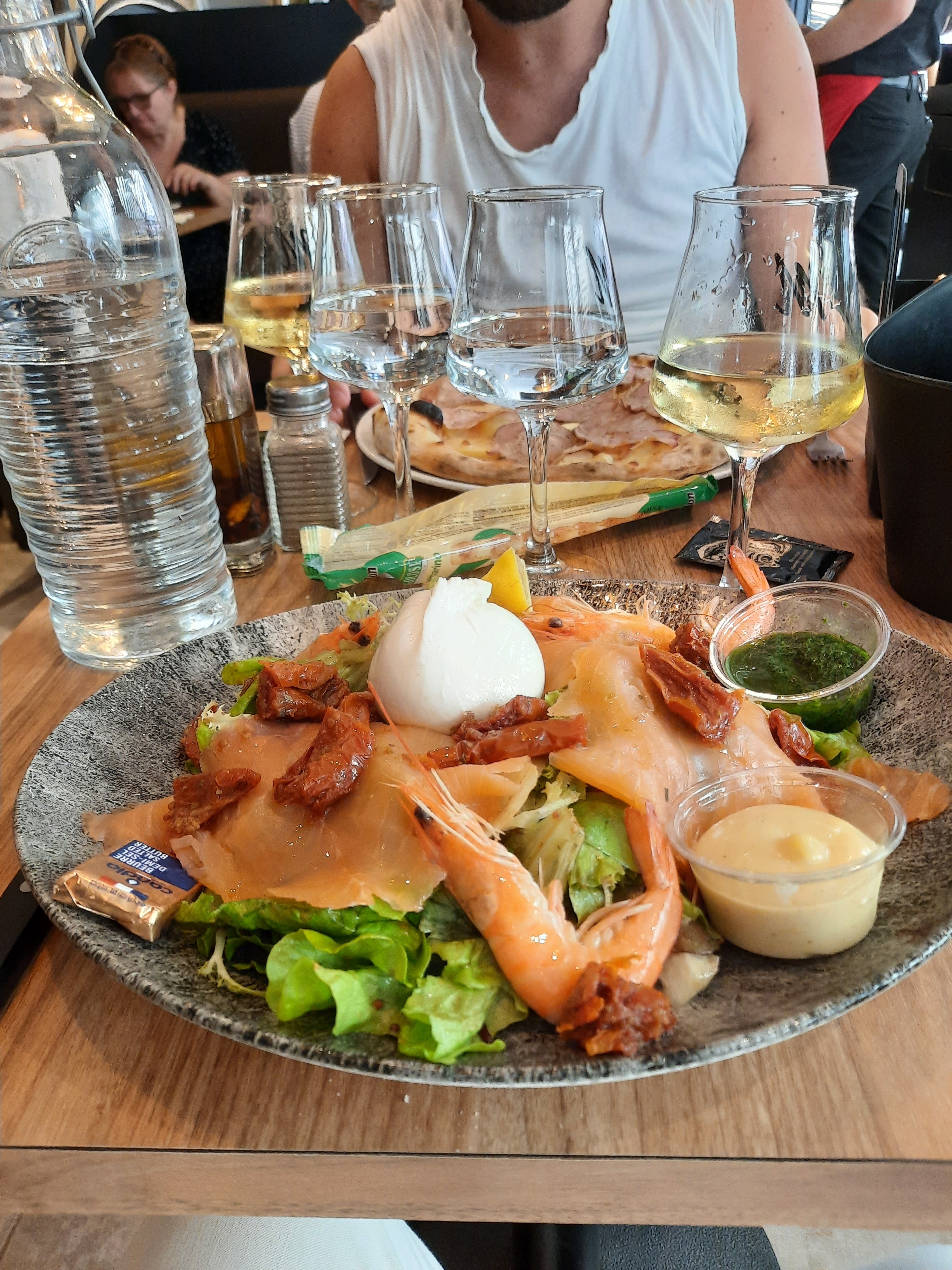 Assiette copieuse! Soda en cannette, le plat était bon mais pas très raffiné, trop gras à mon goût dommage les produits on l’air de qualité. Très chère pour une assiette de pâtes. (41€ pour 2 avec plat et boisson)