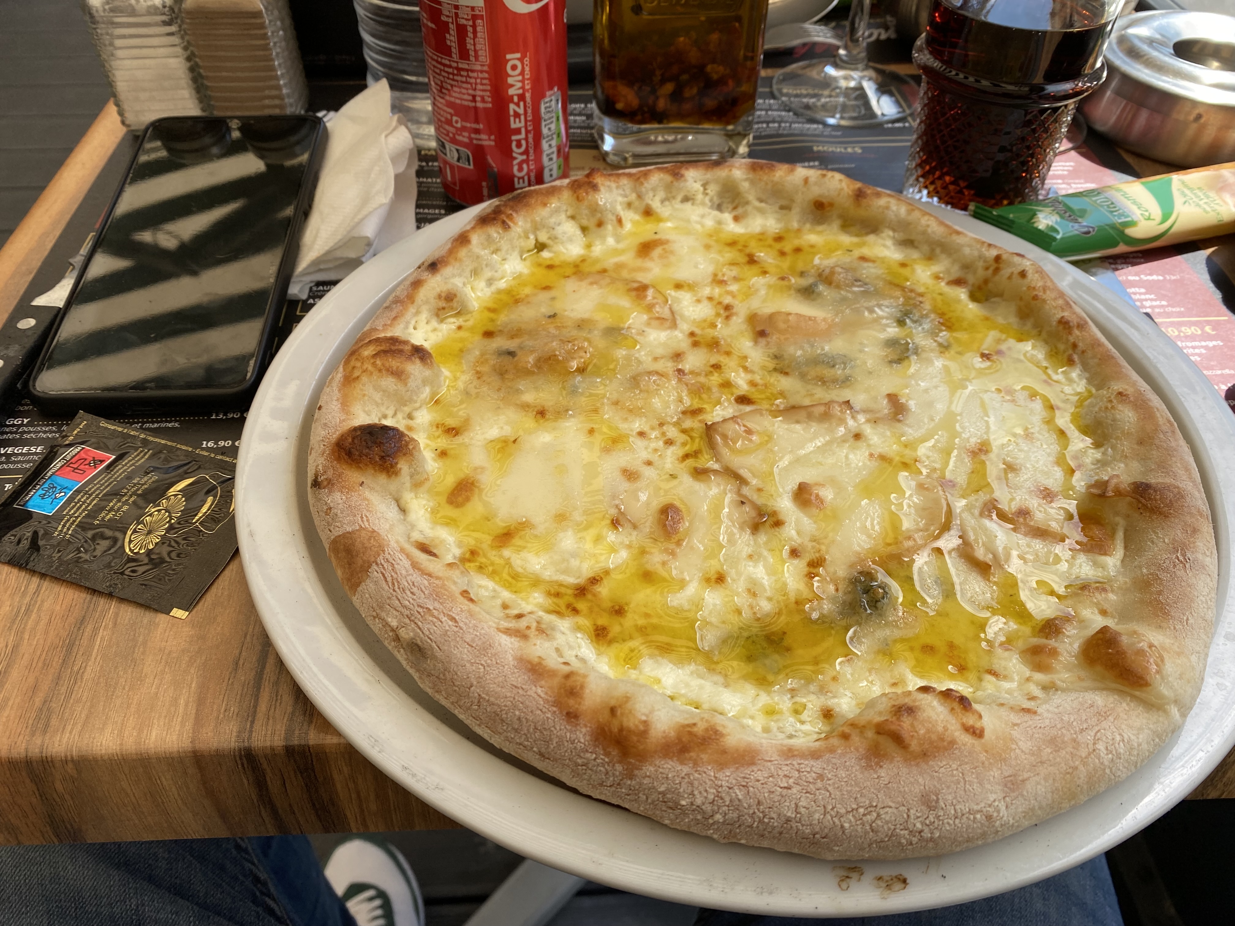 On est arrivés assez tard pendant la basse saison, on ne pouvait pas choisir que des pizzas ou des lasagnes. Quelle bonne surprise leurs pizzas ! Mon compagnon a commandé une calzone « patron » et moi une pizza « 4 fromages ». On s’est vraiment régalés, le service a été impeccable et nous reviendrons sûrement si jamais nous sommes dans le coin 🤤