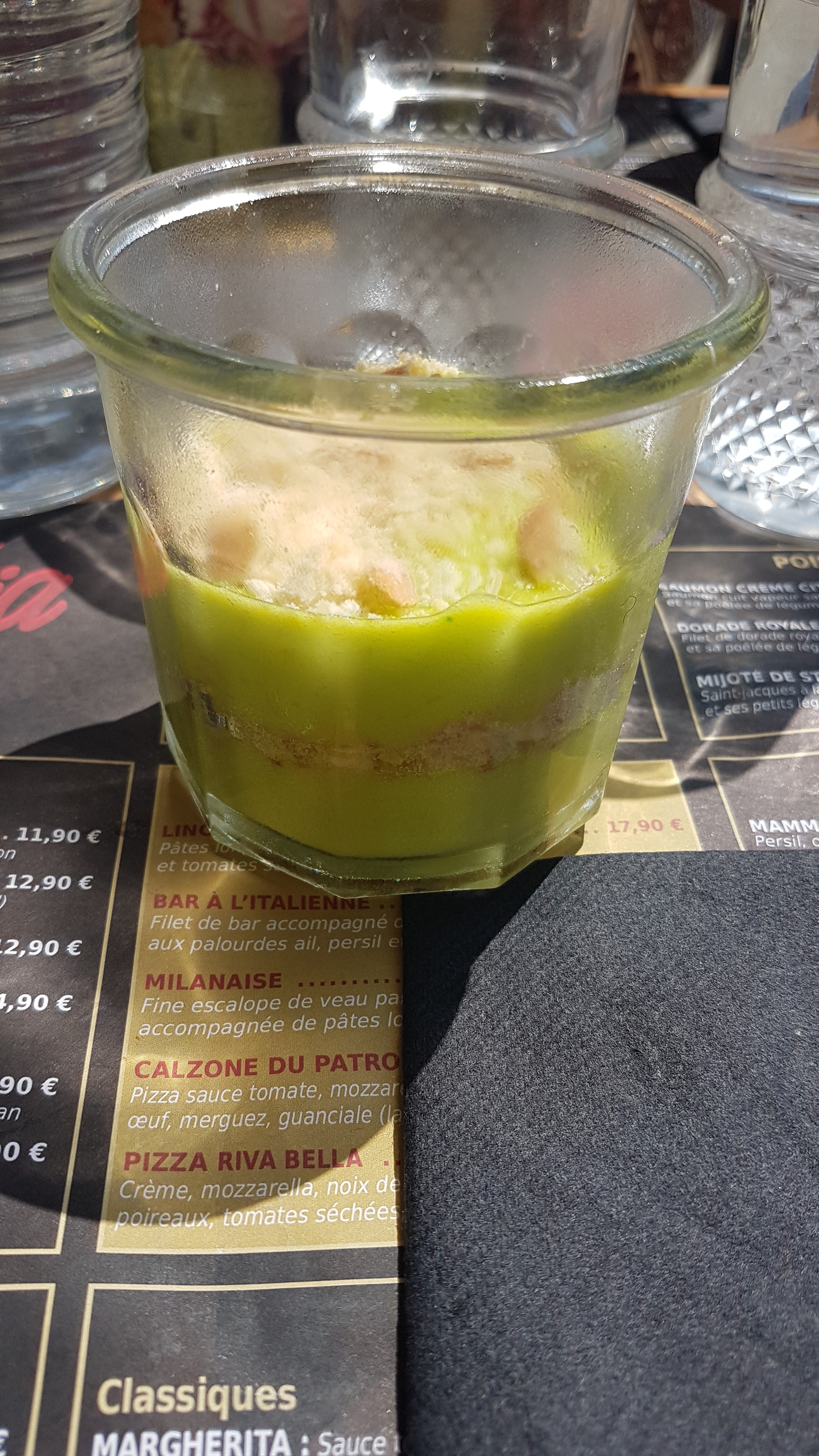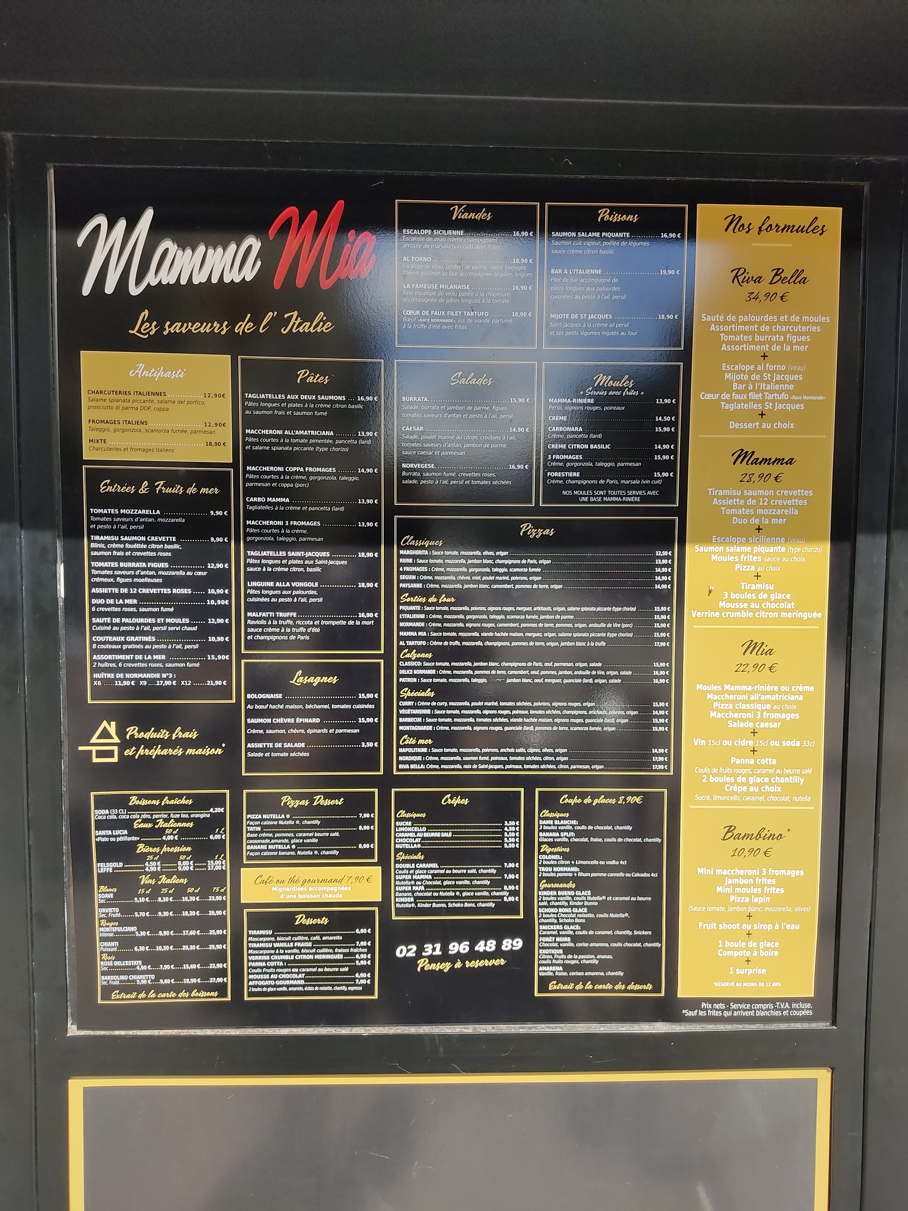 Quelle incroyable expérience passe chez Mamma Mia ! Nous sommes venu lundi soir sans réservation et avons bénéficié d’une table au calme, près du bar. Les cocktails étaient délicieux, très justement dosés. En plat nous avons pris une pizza montagnarde et les raviolis de bœufs, excellent tout les deux. Desserts copieux et fait maison. Merci à Brook et Nami pour ce super moment, nous reviendrons avec plaisir lors d’une prochaine escapade en Normandie !