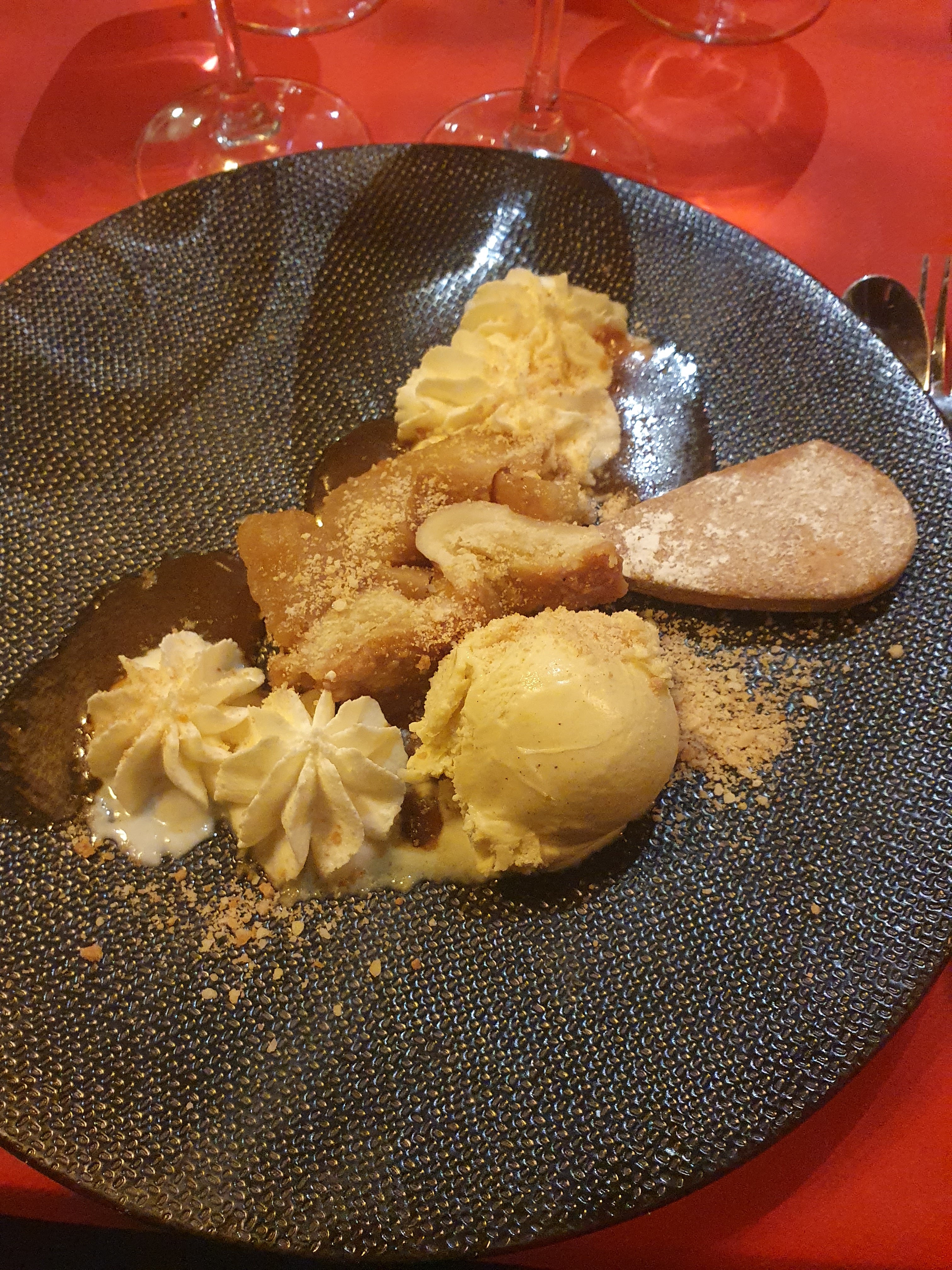 Apéritifs sympas, les assiettes, copieuses et très bonnes ..... nous avons fait les gourmands car nous n'avions plus trop de place pour les desserts. Service agréable avec une jeune serveuse (Lolo) enjouée, souriante et connaissant bien ses produits