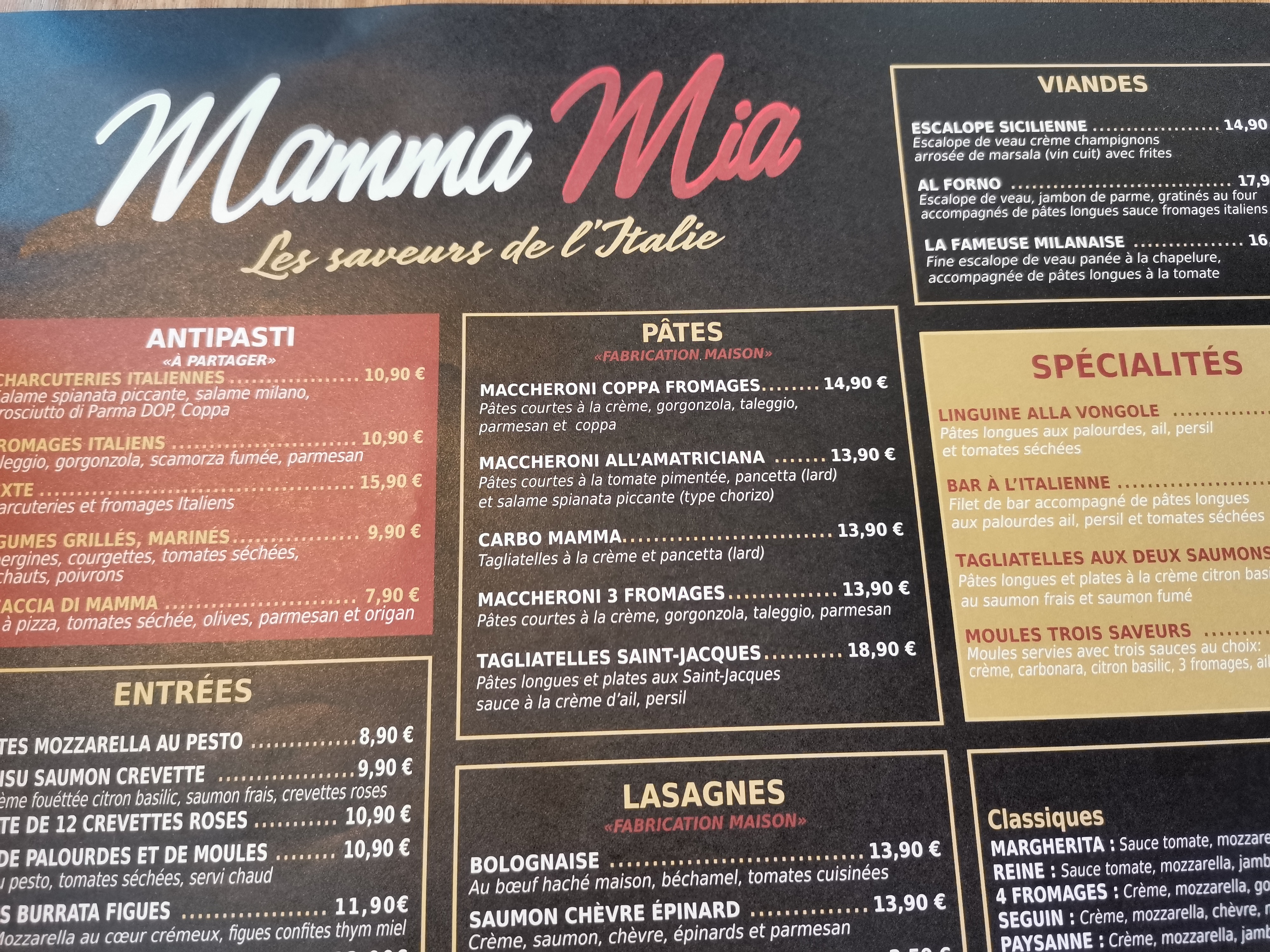 Dans la rue principale, beaucoup de concurrence (bien souvent médiocre mais profitant d'un bon emplacement), Mamma Mia est impossible a rater, imposant et carte à rallonge cela peut faire peur. MAIS j'y ai bien mangé. Les raviolis m'ont un peu déçu par la quantité et la couleur de la farce. Les pizzas par contre c'est plutôt bonnes. Le service est agréable et décontracté.