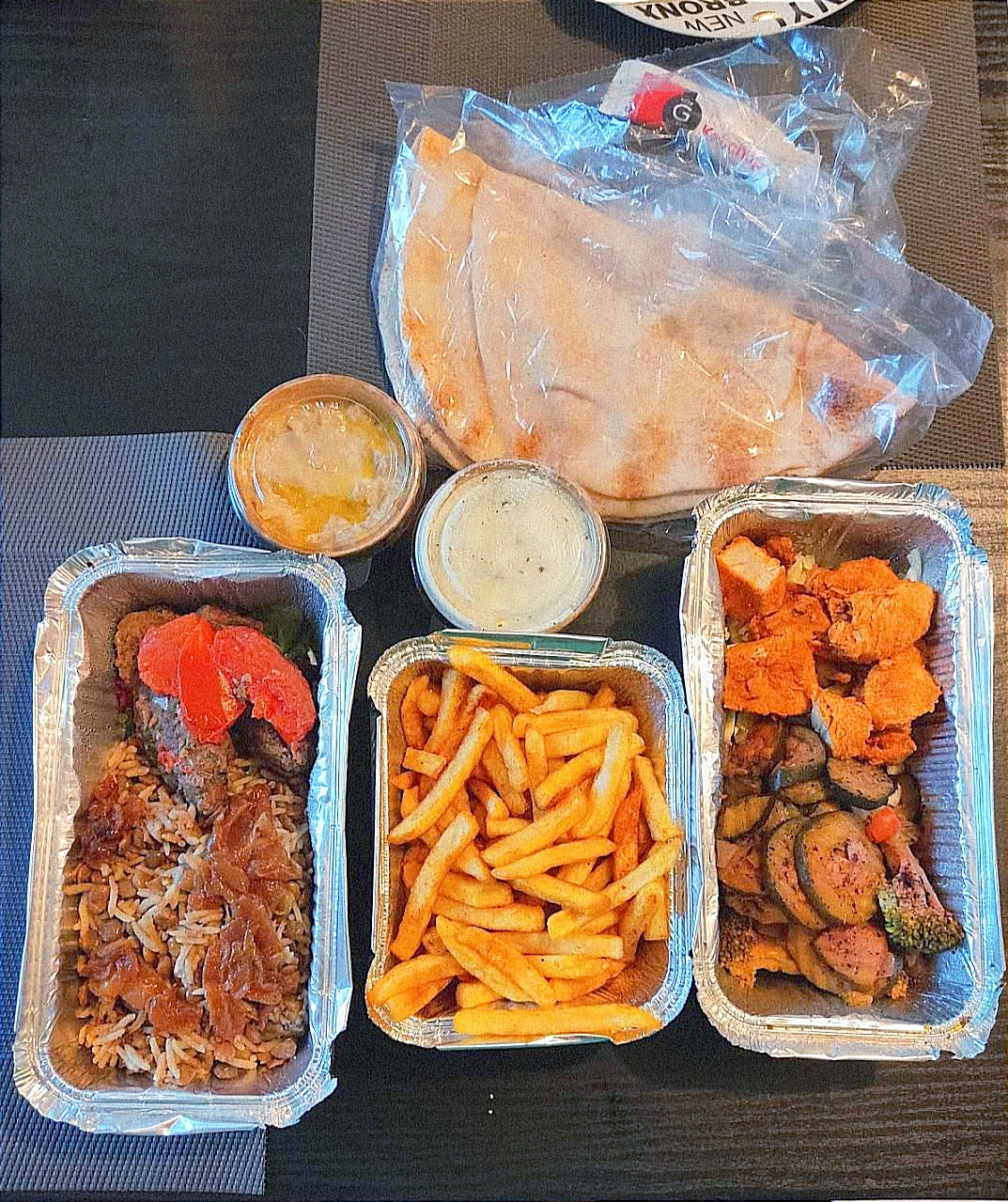 Commandé via Uber eat, frites pas cuites et froide (et je passe sur l'option grande a 1€ de plus, je pense que c'est un oubli), houmous sans accompagnement pour le manger, pas mauvais mais sans plus ... Seul réconfort le sandwich chiche taouk qui était bon malgré une garniture un peu légère a mon goût. Bref je suis déçu ...