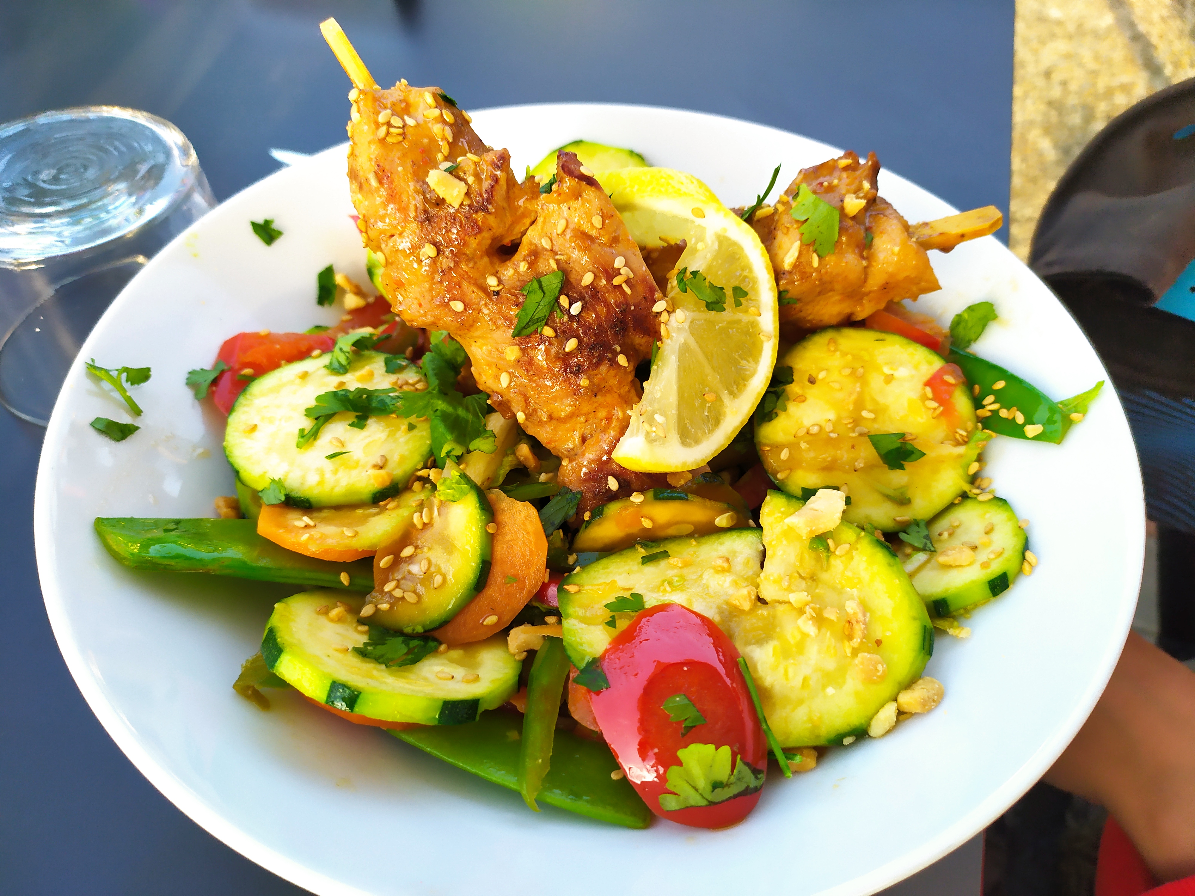 Le goût et le dépaysement sont au rendez-vous, tout ça au bord de l'océan ! Le wok de poulet était vraiment excellent.