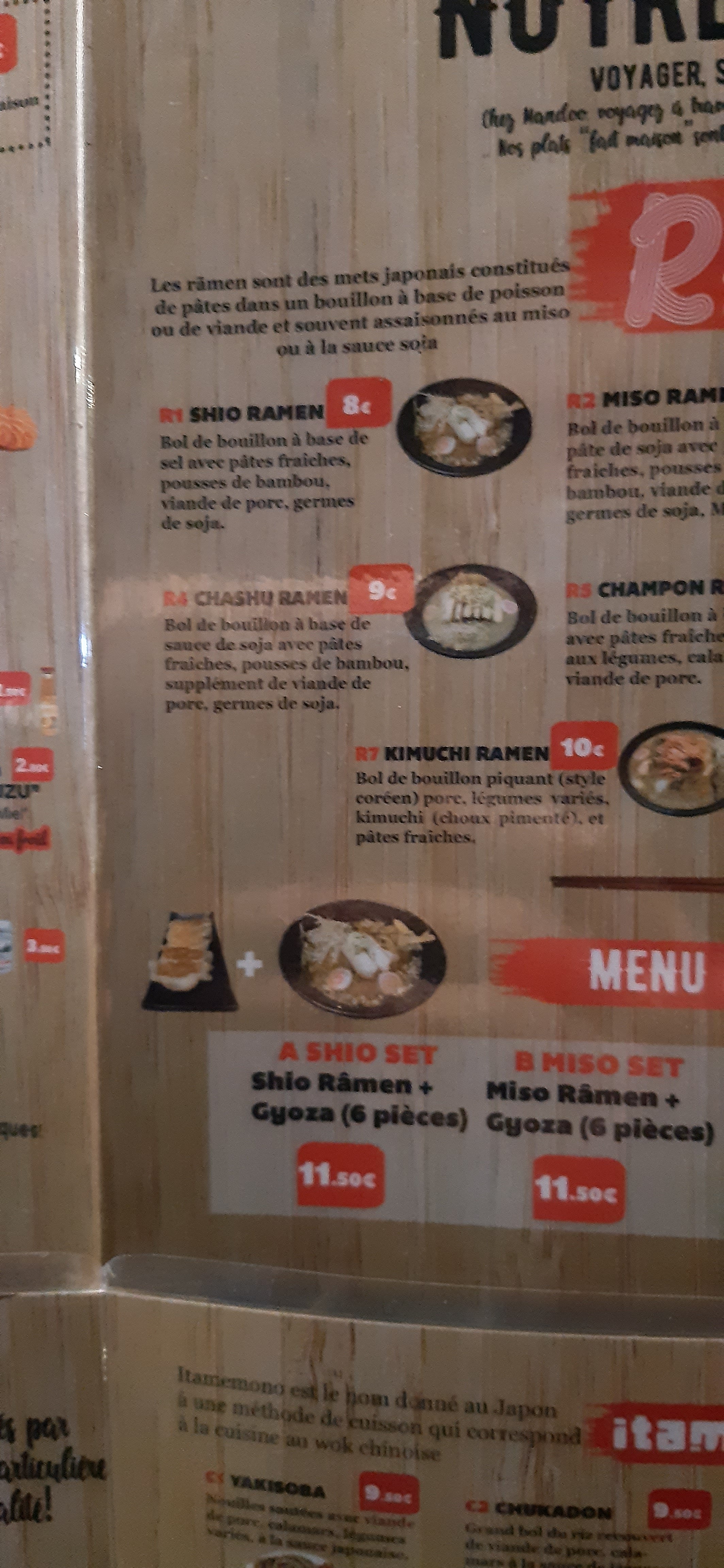 J' aime bien le manga Naruto et j'ai tjr voulu tester les ramènes large choix de plats des Nouilles sautées au soupe ,spécialité japonaise prix correct .de 1 a 4 pers ok petite salle a manger proche tram et plc liberté. Je recommande pr petit budget.Le saumon tendre et savoureux sans aucune arrête. Possible emporter ce que vs avez pas fini sans supplément. Accueil et service pour ensemble 7/10