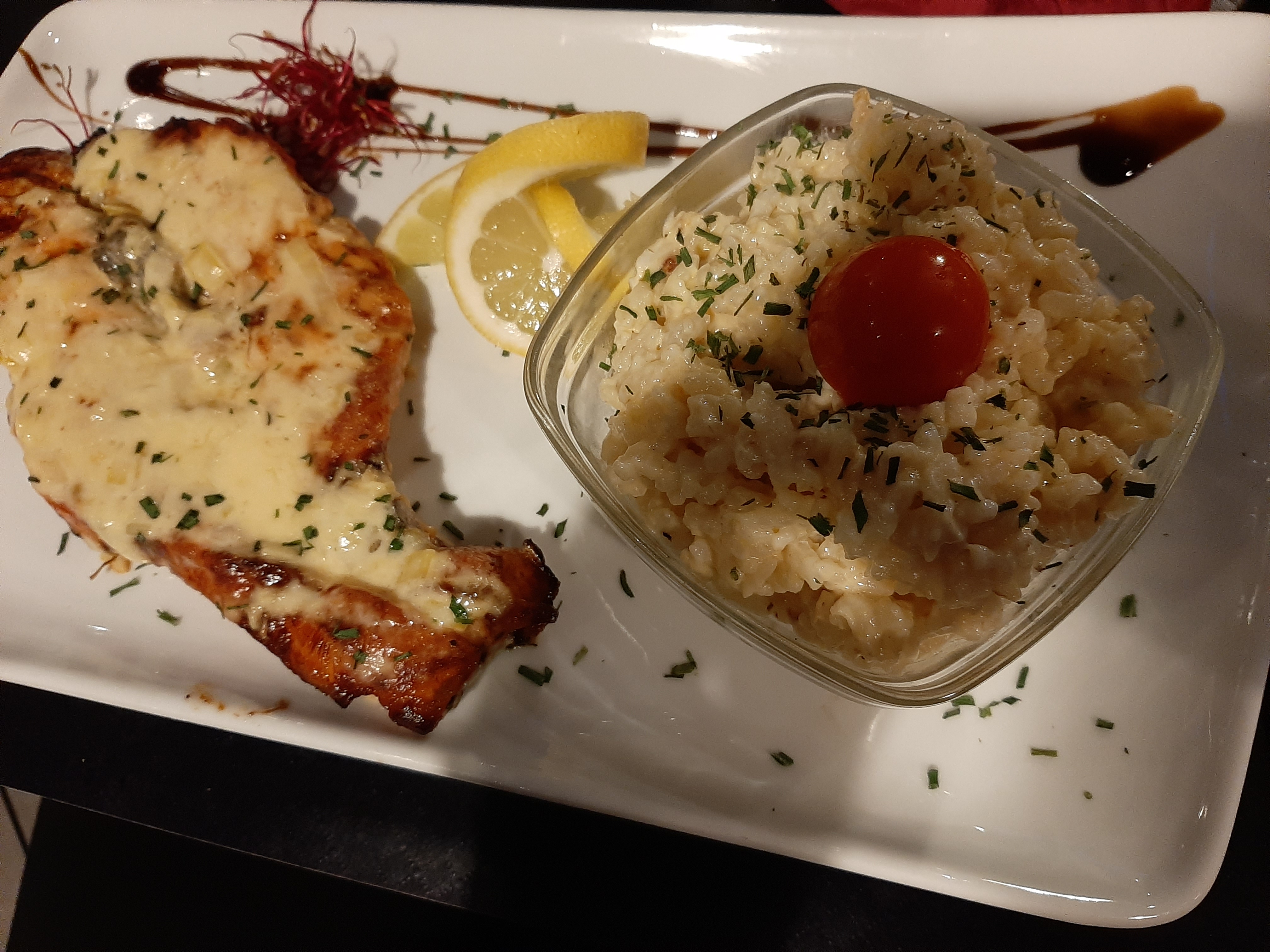 EXTRÊMEMENT DÉÇUE !!! On nous refuse l’entrée au restaurant alors qu’on avait réservé sous prétexte que notre tenue n’est pas adéquate (survêtement). Ensuite, le serveur nous explique que c’est pour « élever le niveau » du restaurant ; ce qui n’est pas une excuse pour recaler un client !! Pour « élever le niveau » commencez déjà par être fidèle à la carte que vous proposez ! Car quand j’ai commandé un risotto le 16 août 2019 pour mon anniversaire, on m’a servi un riz long grain, qui plus est était sec et fade !! (Preuve à l’appui sur la photo) Aussi, pour la cuisson de ma viande je demande BIEN CUIT et on me l’amène SAIGNANTE !!! Le plat était sans goût. Les desserts de la carte ne sont pas faits maison, ils sont tous surgelés 🤮 Trop onéreux pour la qualité médiocre des plats servis !!!