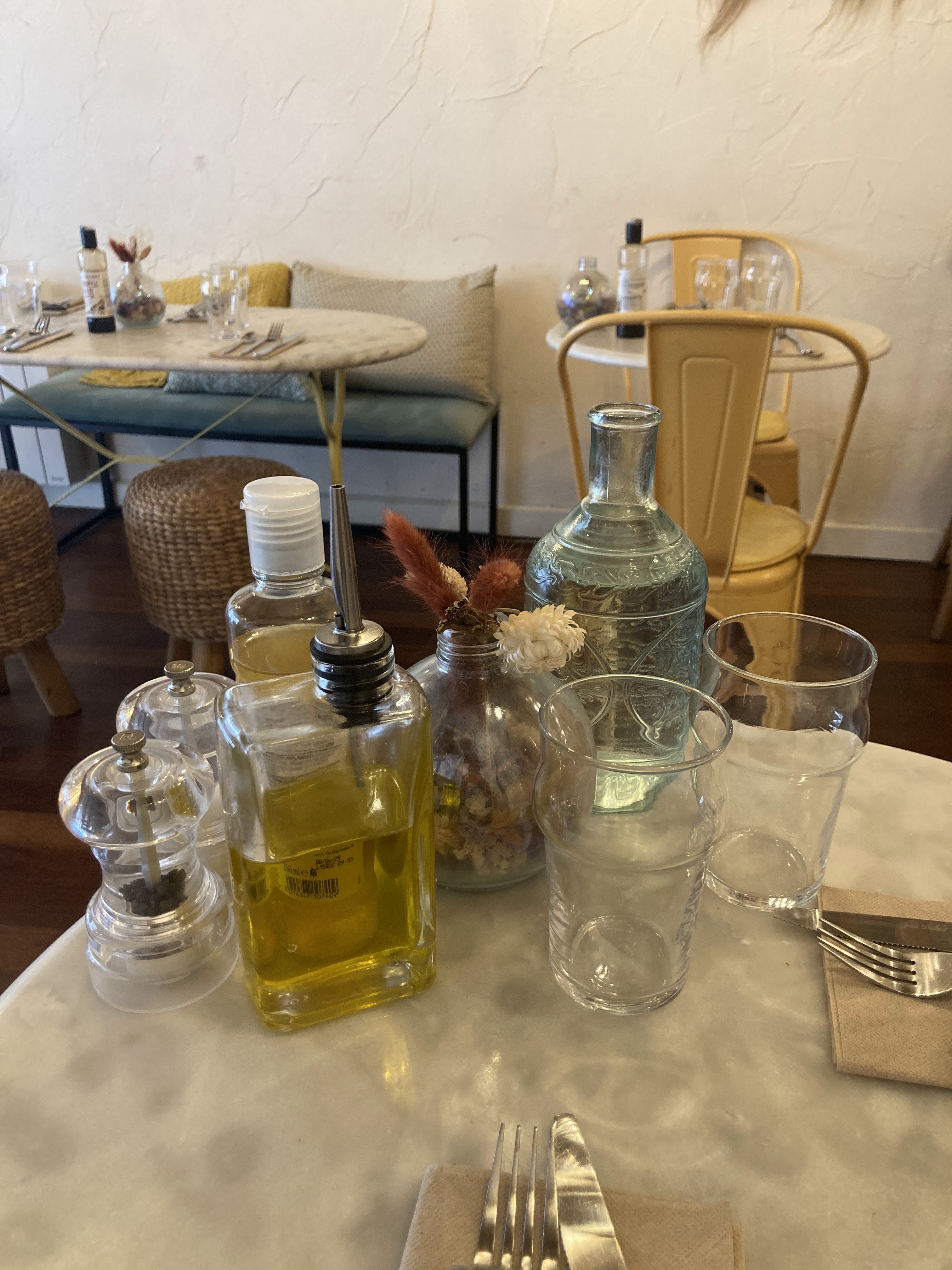 Établissement joliment décoré, accueilli par une gentille serveuse. Tarifs un peu excessifs par rapport à la quantité servie. Exemple : 14€ pour 2 oeufs au plat, un demi avocat et quelques feuilles de roquette. Malgré tout, les produits sont frais et il y a du goût. Par contre, le manque d’organisation (le cuisinier, qui semble être le patron, passe de ses couteaux à la terrasse extérieure, revient en cuisine, repart en salle…) alors on attend un long moment pour être servi malgré qu’il y avait deux jeunes femmes pour le seconder et assurer le service. Peut être un peu de mal à déléguer… il refusait du monde alors que certaines tables étaient vides. Malgré tout, quand on a du temps, on passe un bon moment à déguster de bons produits. Le granola est top!