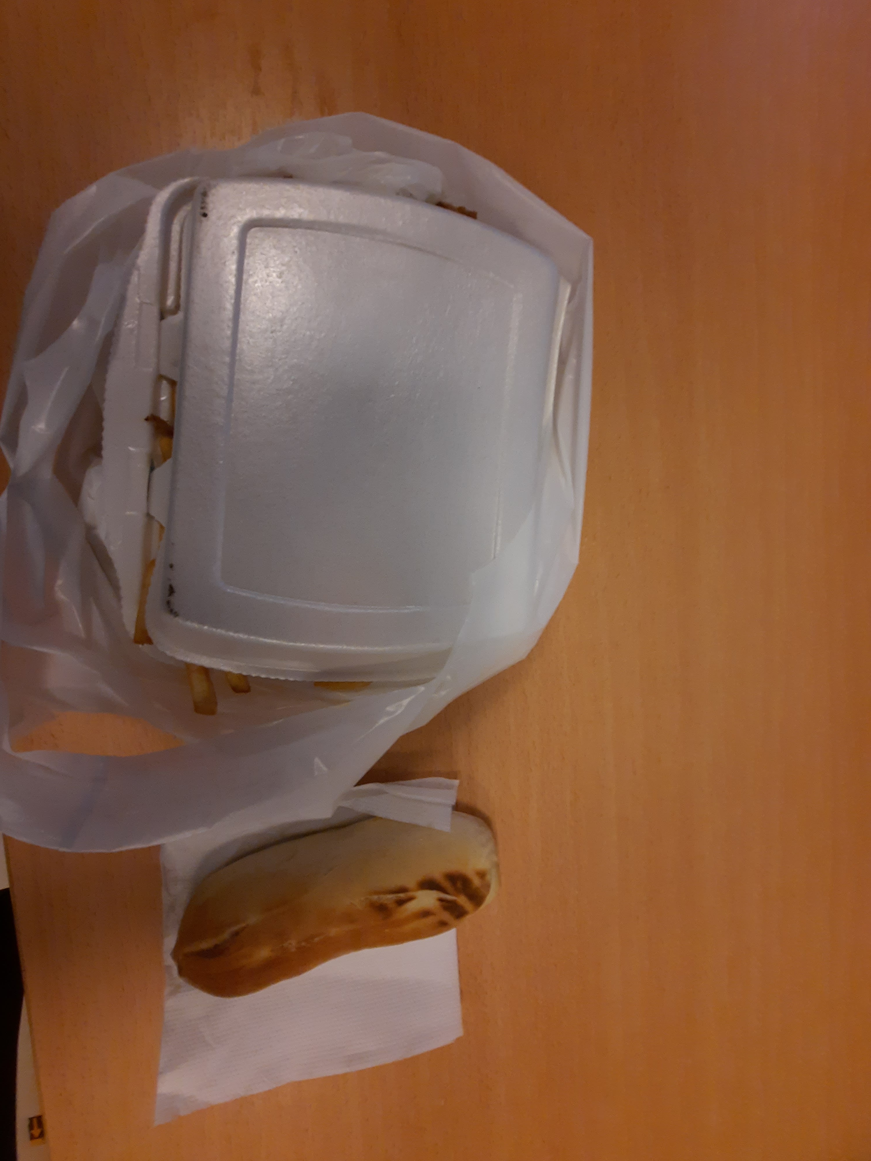 Pain et frite pas mal mais Viande immangeable et kebab vraiment cher pour ce que c’est Merci de faire le nécessaire
