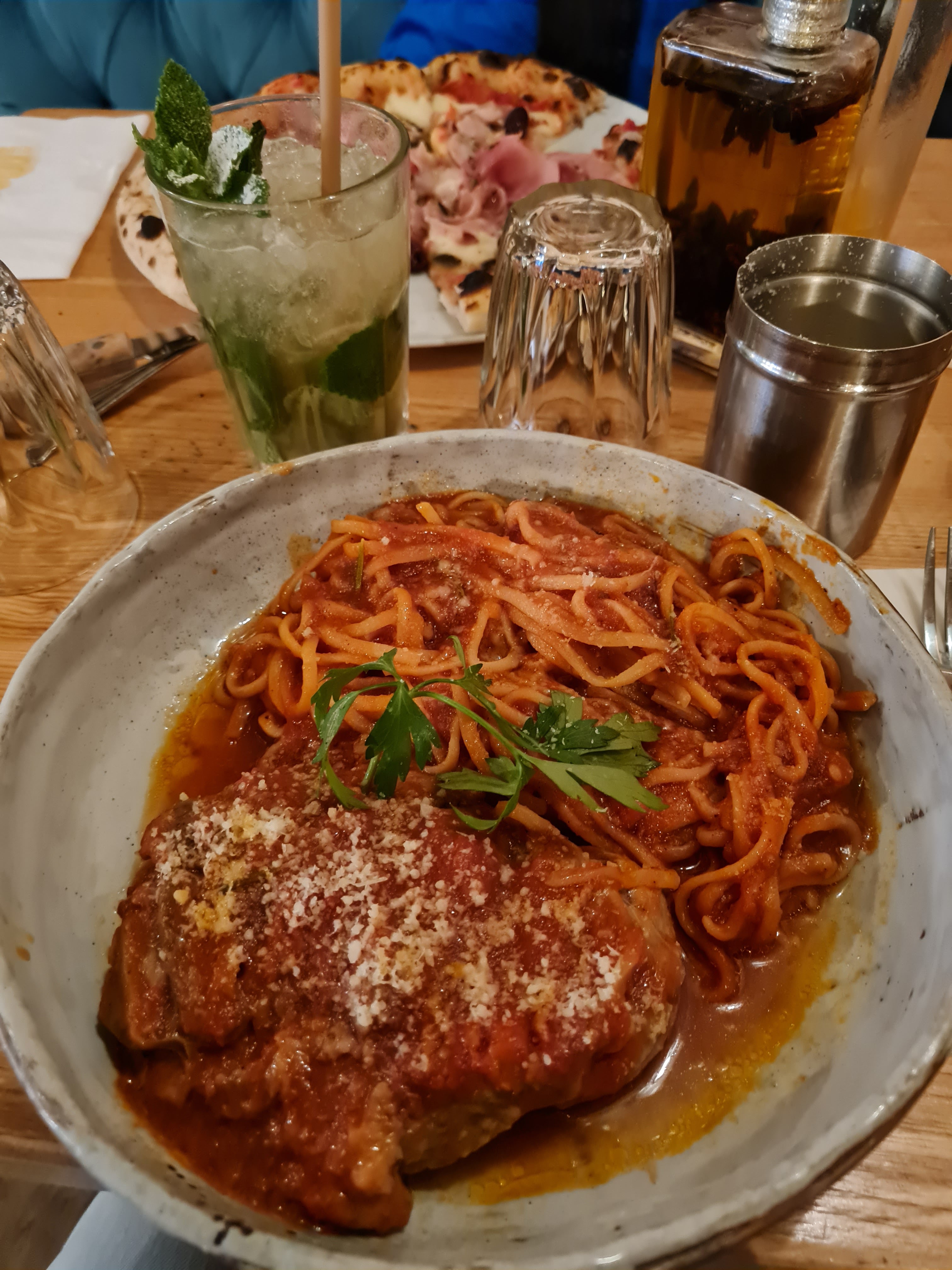 Rien de particulier pour la cuisine. Les pâtes sont fades, même celles avec le mijoté de veau qui a le plus de goût. La pizza avec la portion enfant est pas mal, sauf que la sauce tomate contient plus d'eau que tomate du coup le fond de pizza devient tout mou et trempé. Les bruits dans la salles se résonne beaucoup. Points positifs : la déco sympa avec les lumières et plantes, l'addition peut être réglée avec le code QR sur la table, et les portions sont très généreuses. Conclusion : restaurant à essayer une fois, mais il existe d'autres avec une meilleur qualité de produits.