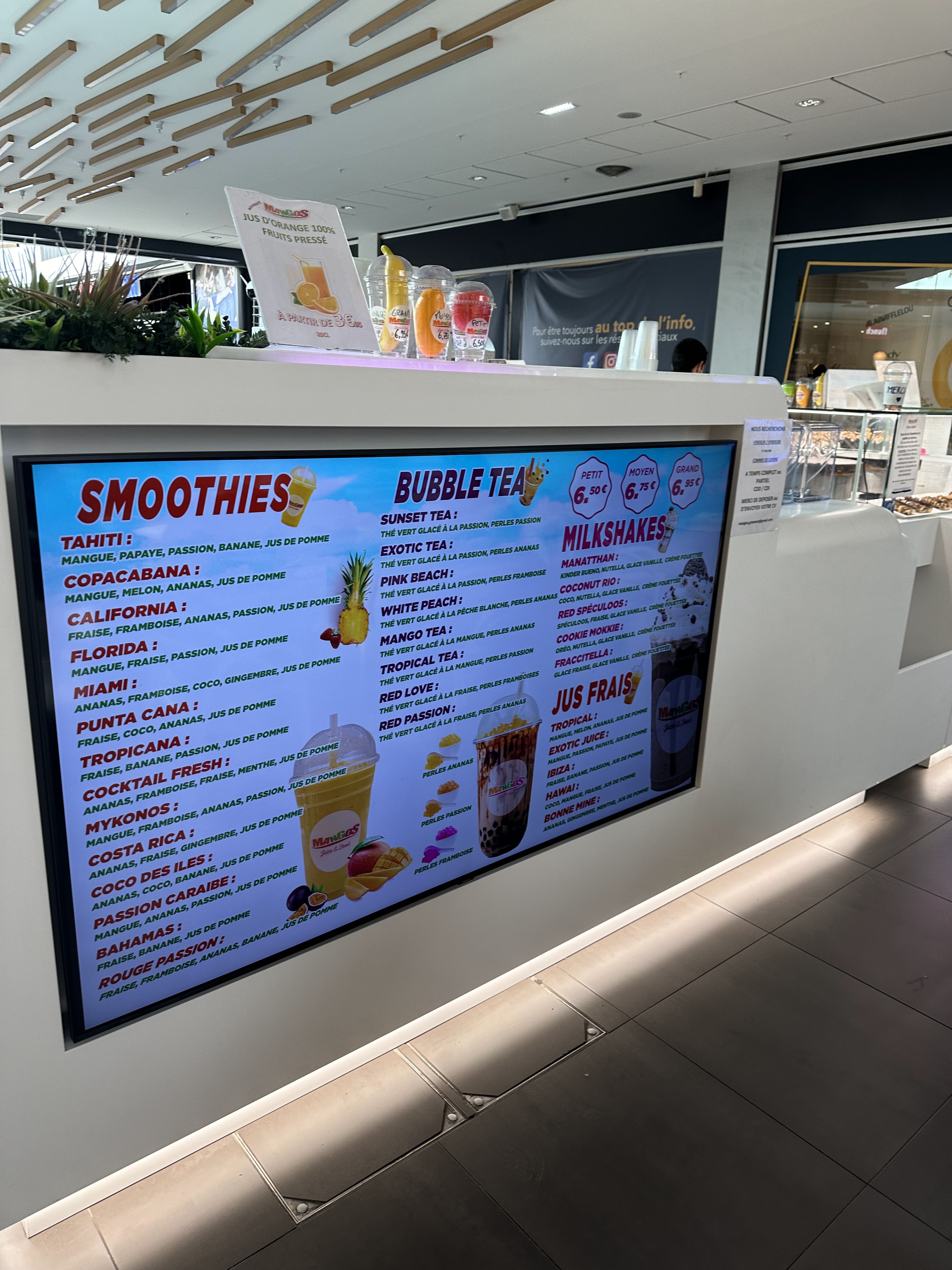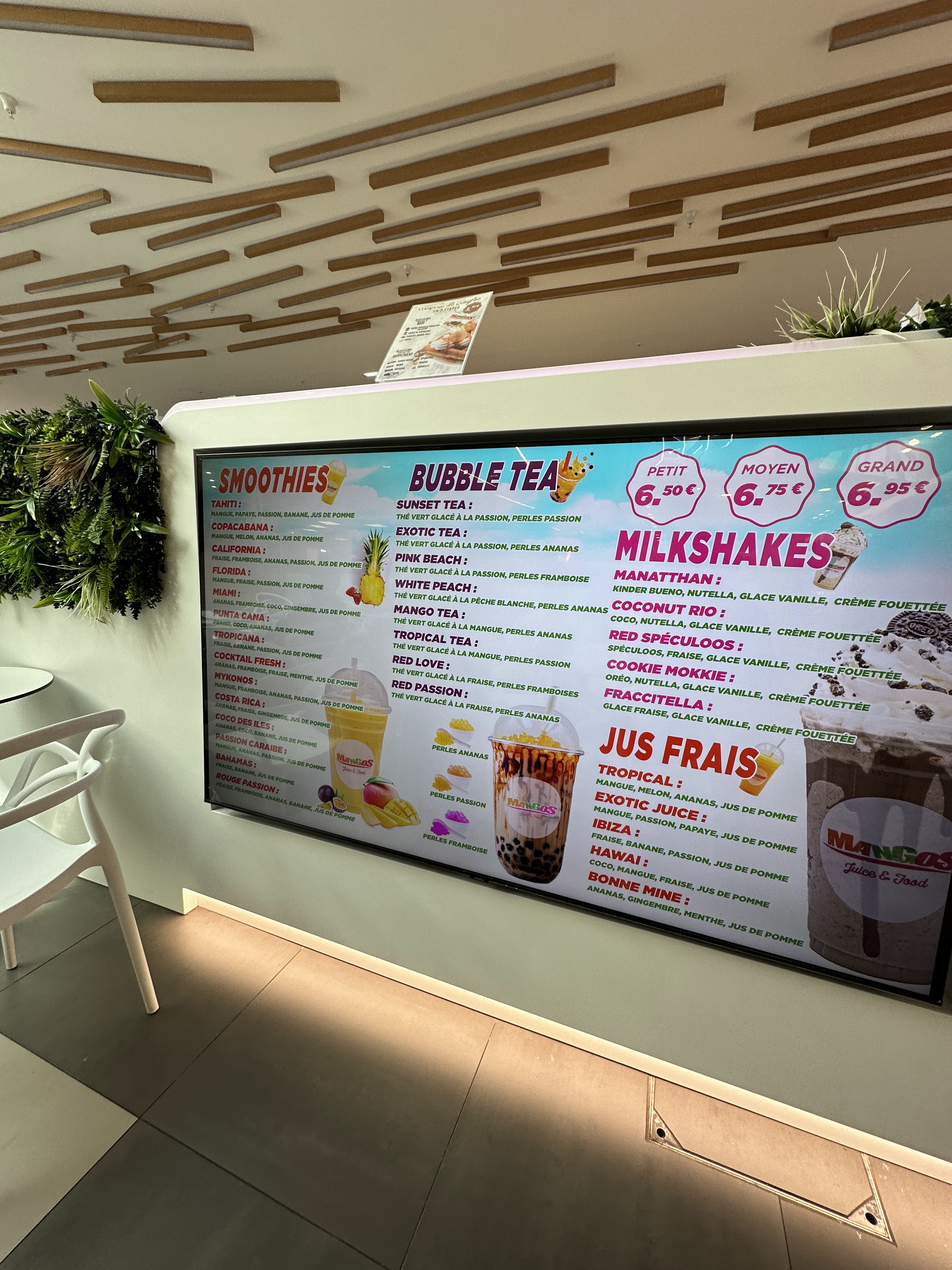 Mauvais rapport qualité/prix. Le tarif des smoothies méritent des fruits frais… dommage