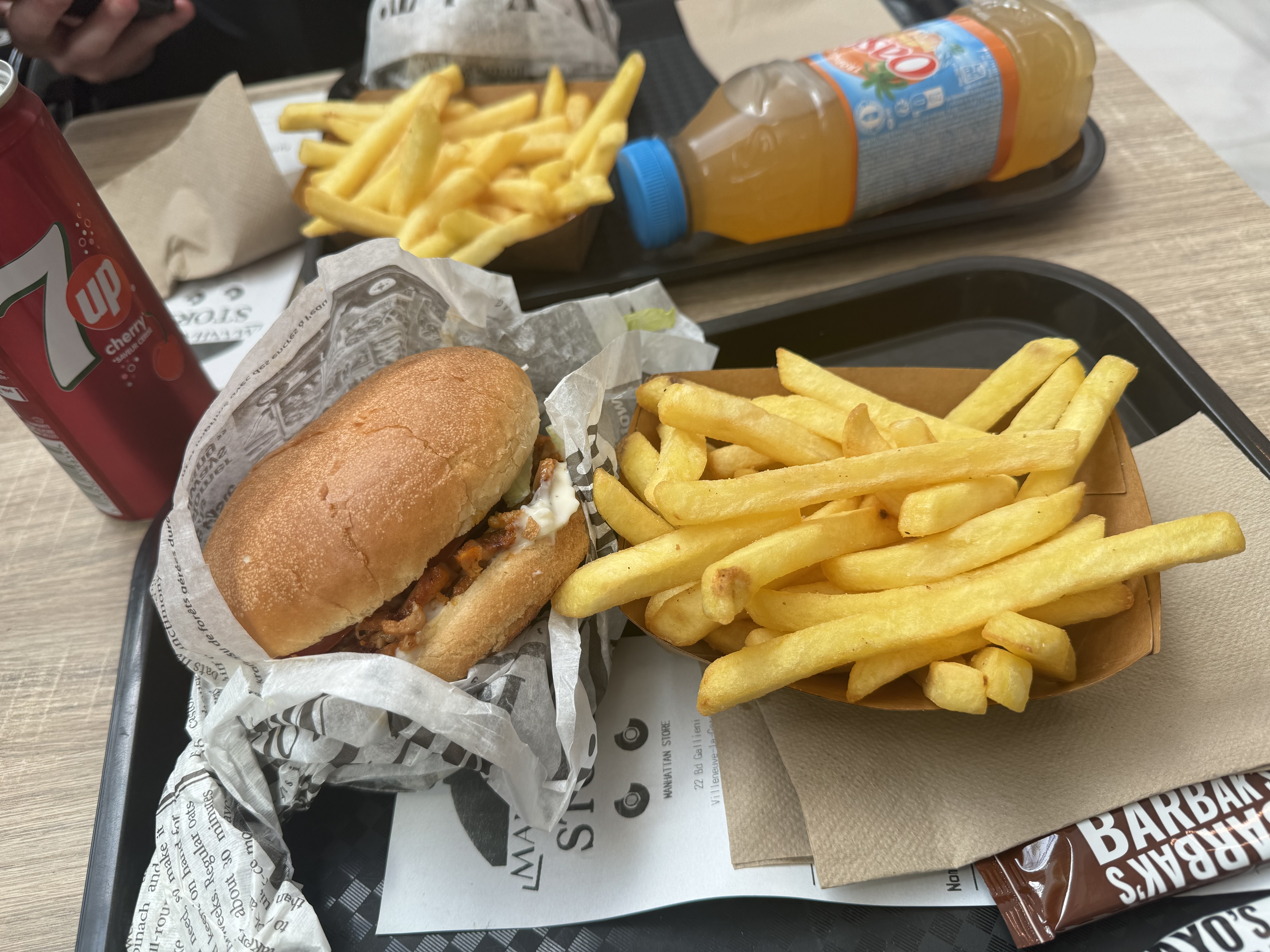 Ne faites pas comme nous en vous arrêtant au premier fast-food, il y en a d’autres qui semblent bien meilleurs juste à côté. Personnel pas accueillant, burger cramé, frites surgelés.. je recommande pas surtout vu le prix