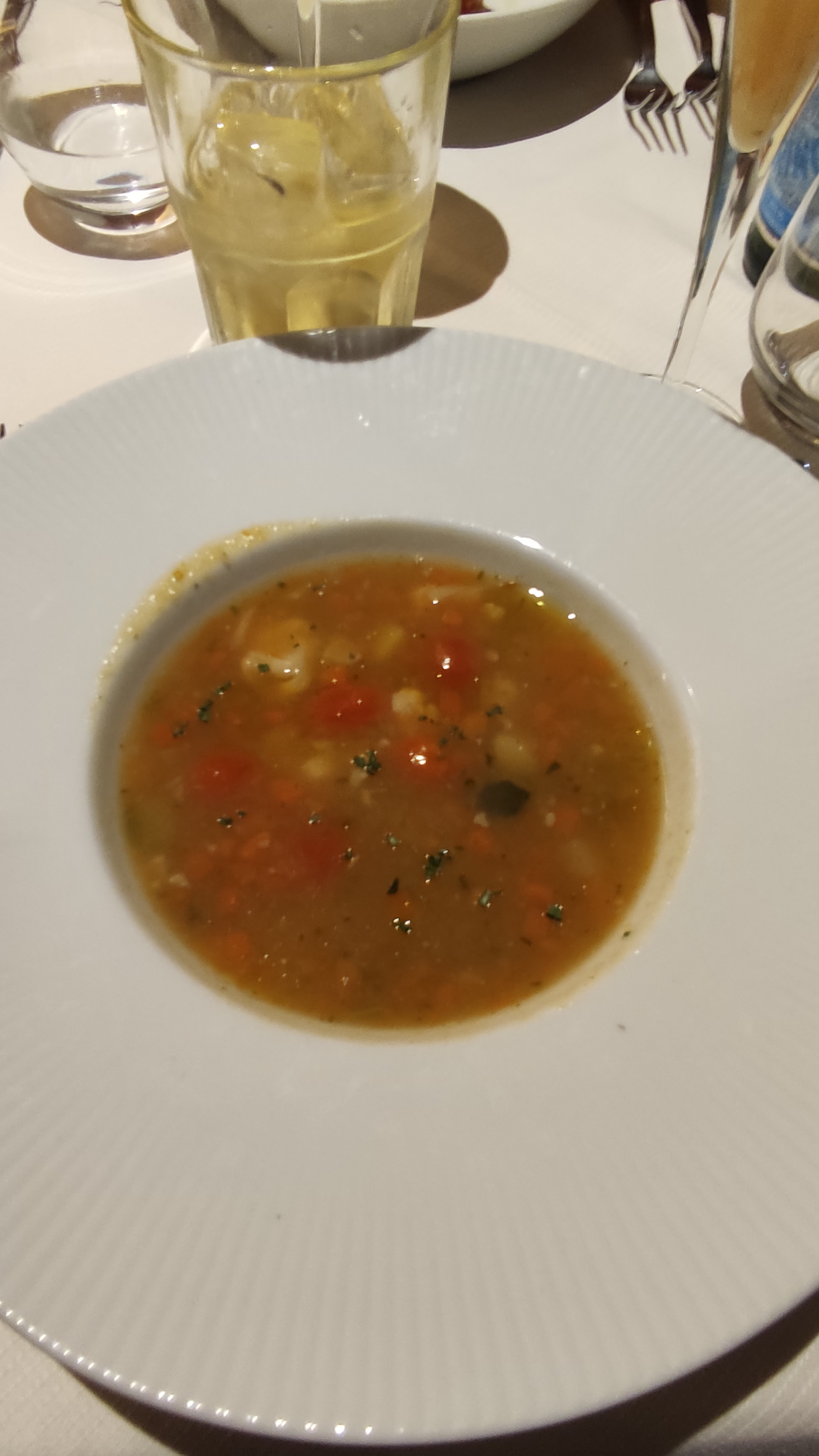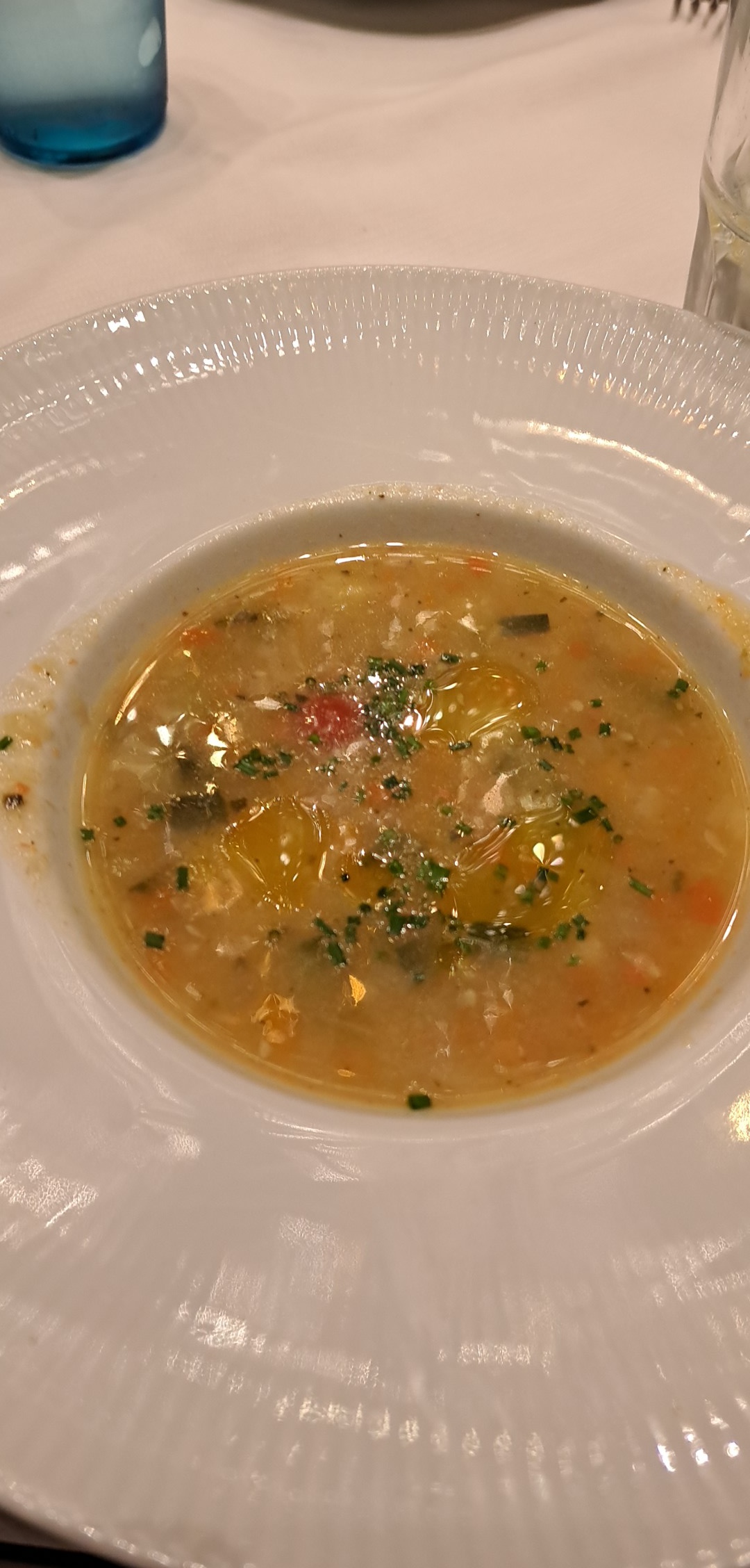Pour le prix, je m'attendais à des plats plus savoureux et plus frais et à un peu plus de quantité. Mon minestrone contenait des légumes en conserve et/ou surgelés et était servi à peine chaud. Une si petite portion de seulement 9 cuillerées environ. La salade d'accompagnement était fanée et aussi chaude que la soupe. Encore une fois, pour le prix, je m'attends à une salade fraîchement préparée. Les plats principaux étaient corrects, rien d'extraordinaire à noter. Taramisu était bon et le point culminant de la nourriture. Le personnel de service/réception avec qui nous avons eu affaire était formidable.